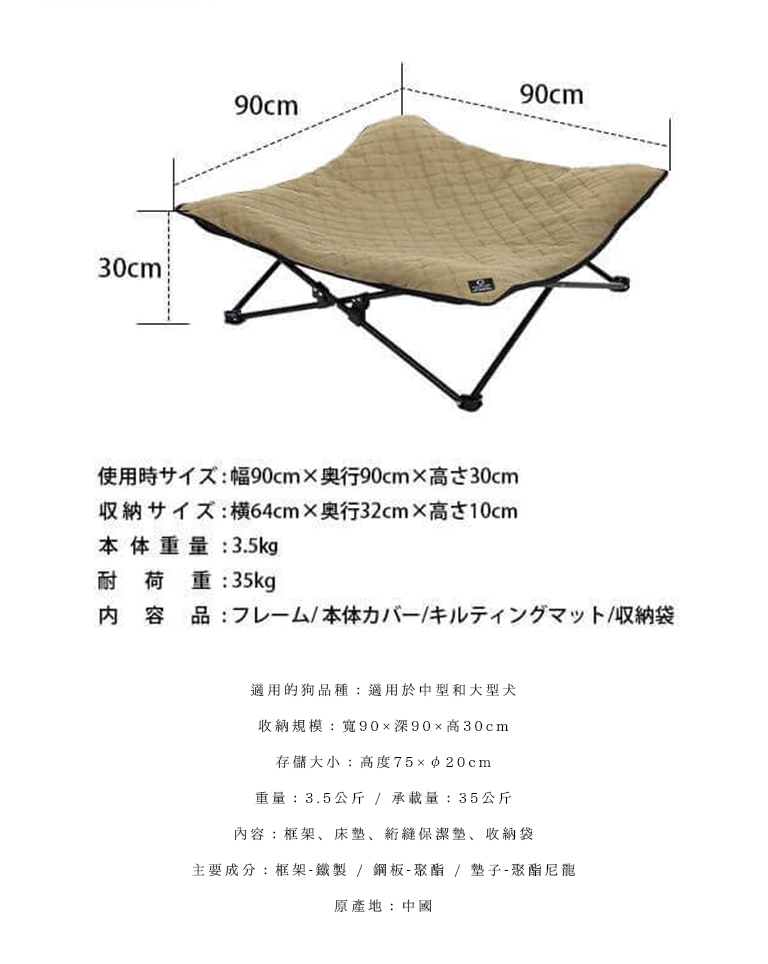 QC-DC90 大型狗 飛行床 DOGCOT