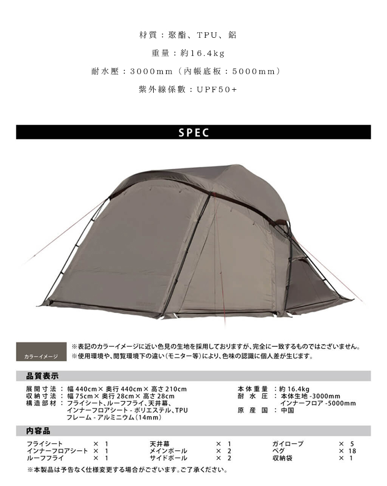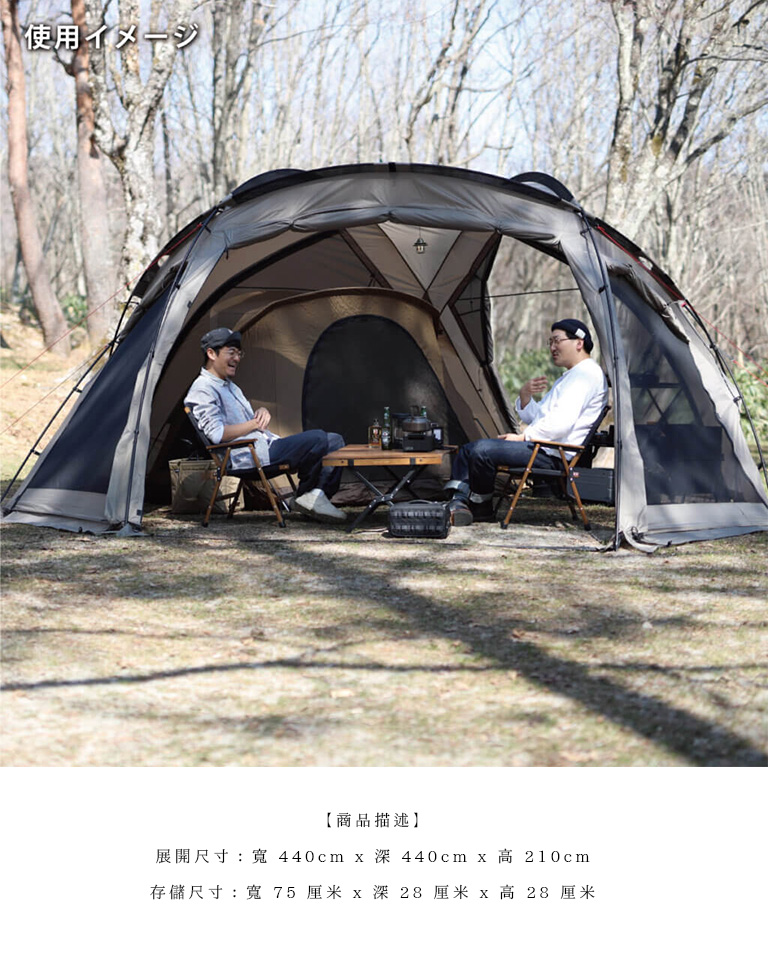 展開尺寸:寬 440cm x 深 440cm x 高 210cm