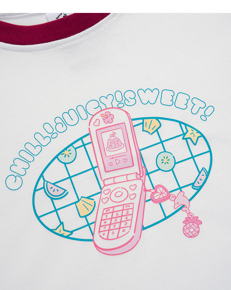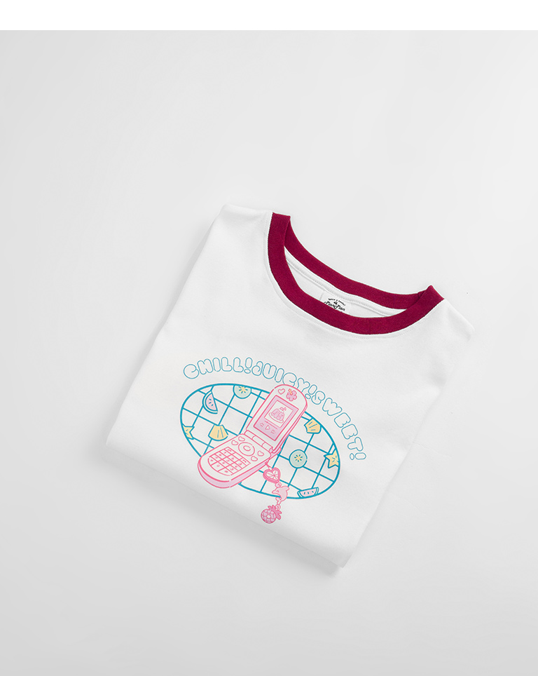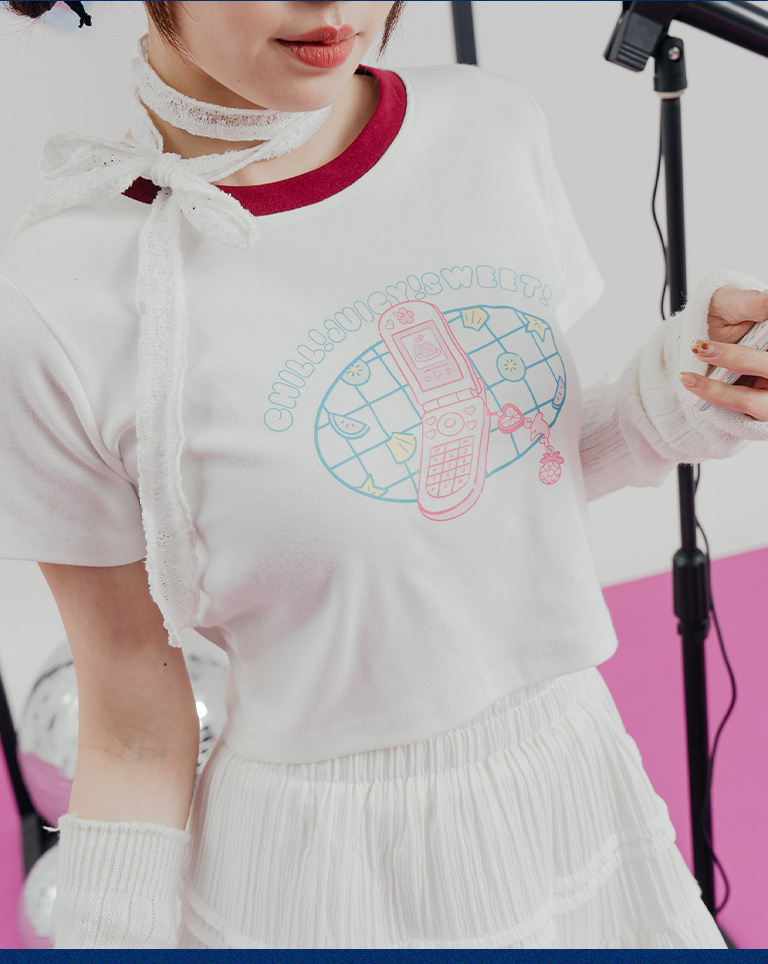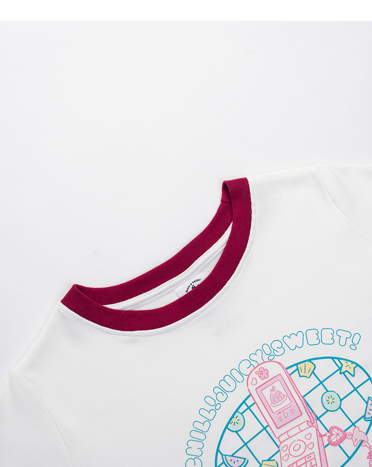 MIT 寬片片 領邊撞色手機印圖短版上衣