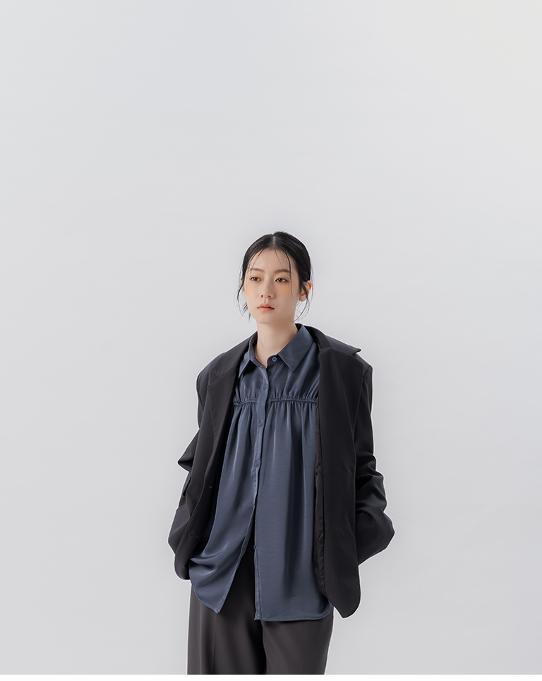 S~L身形實測!分尺寸皺皺木耳邊透膚高領長袖上衣