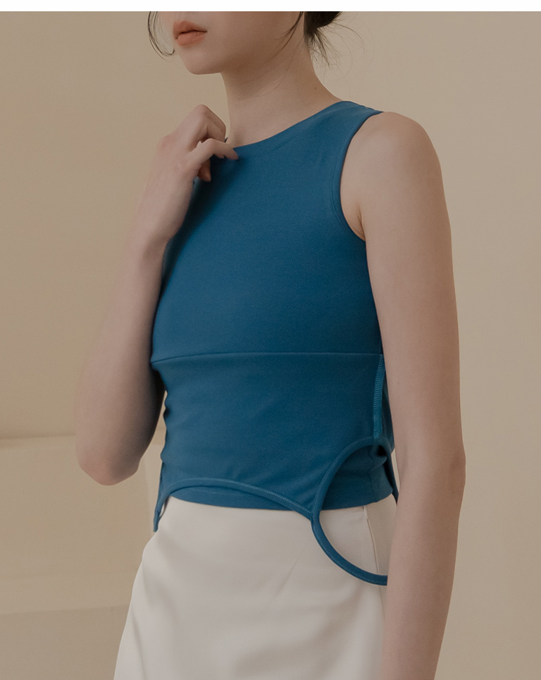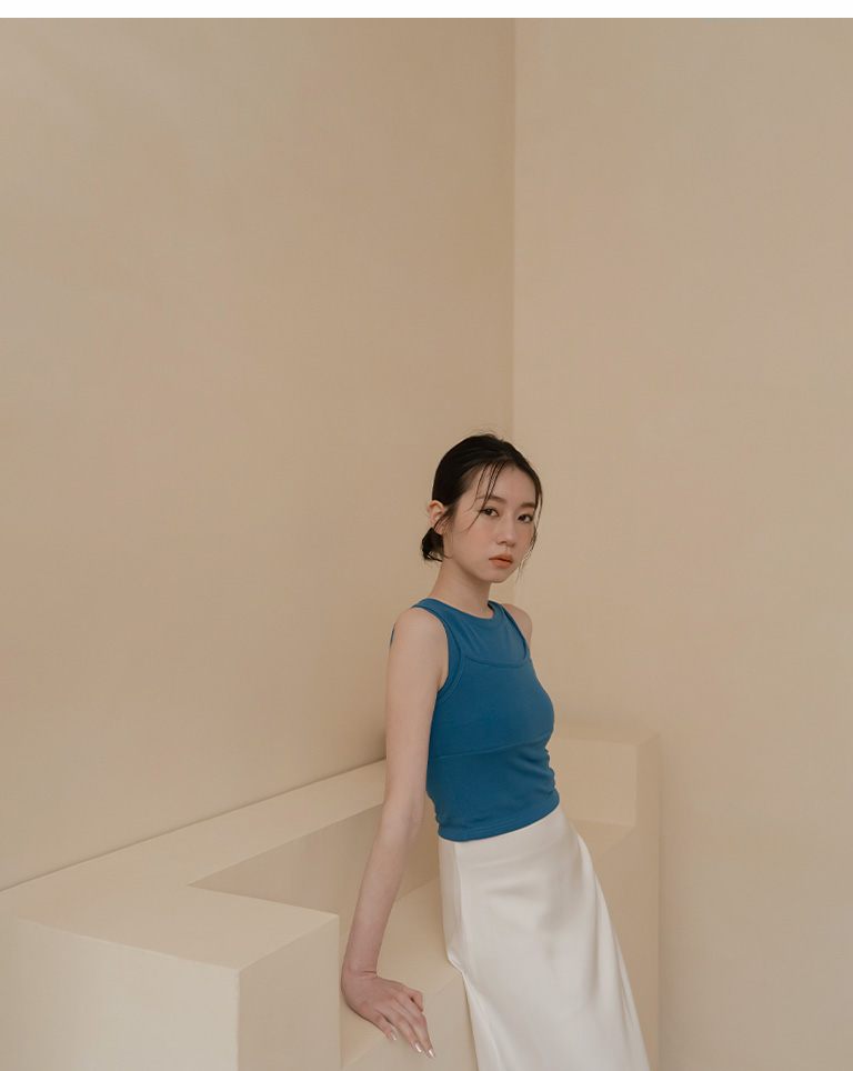 質感假兩件削肩Bra Top背心-藍