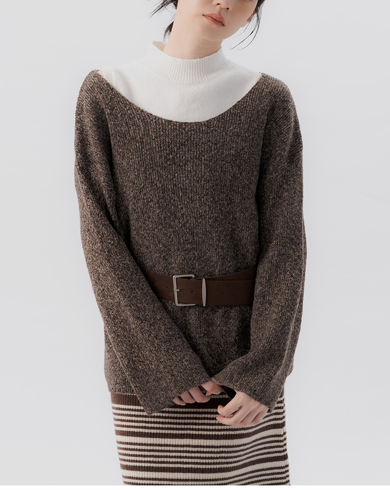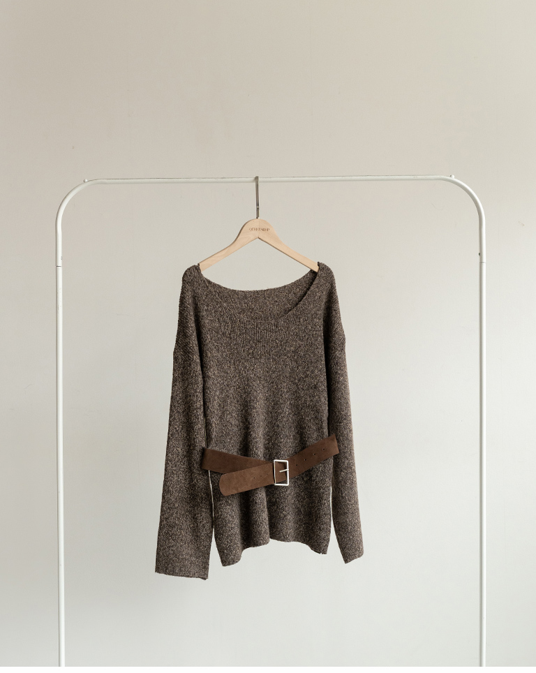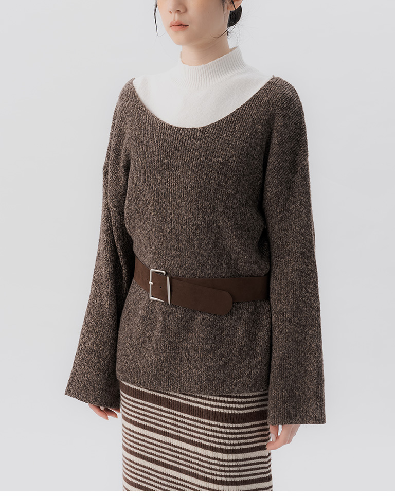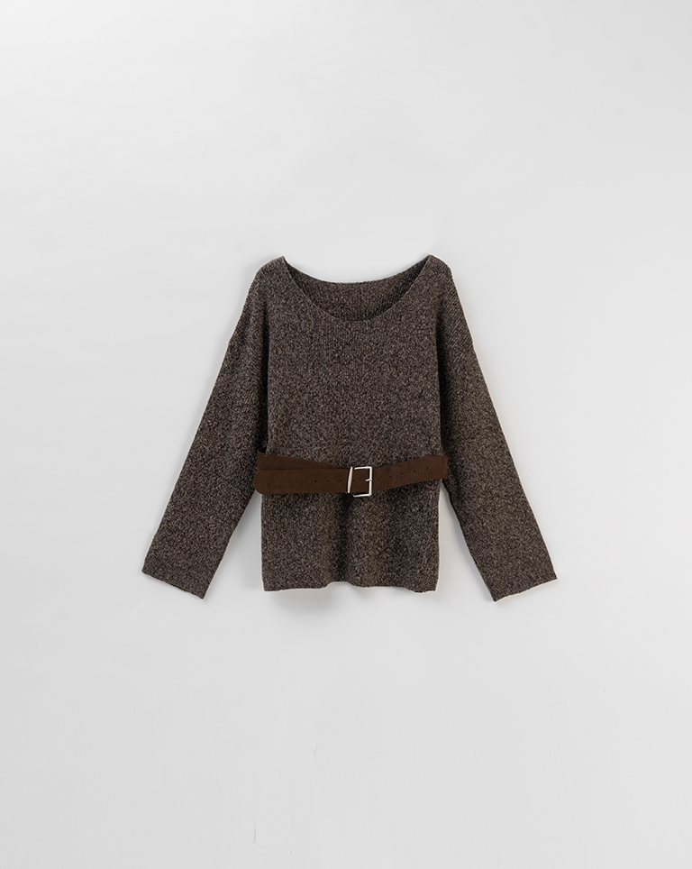 花紗U領附腰帶針織毛衣