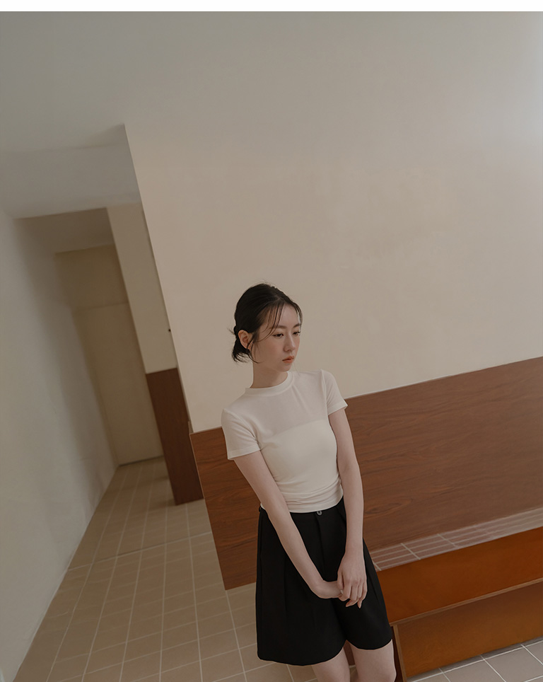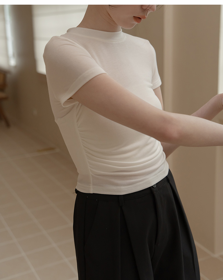 S~L身形實測!分尺寸皺皺木耳邊透膚高領長袖上衣