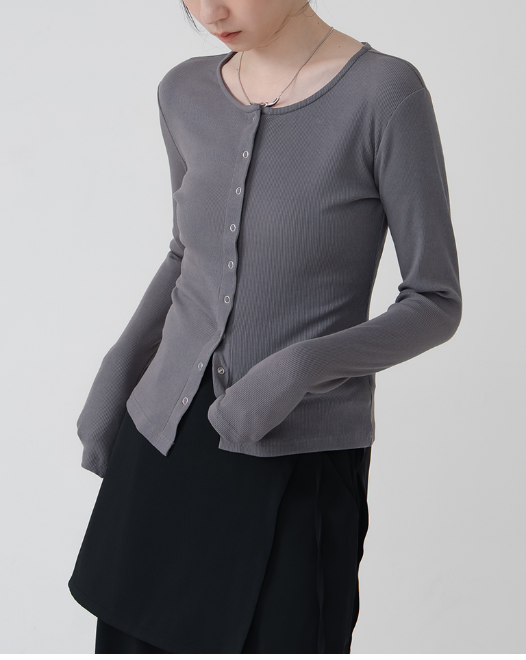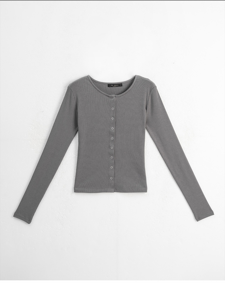 簡約圓領坑條排釦針織上衣-灰 S/M