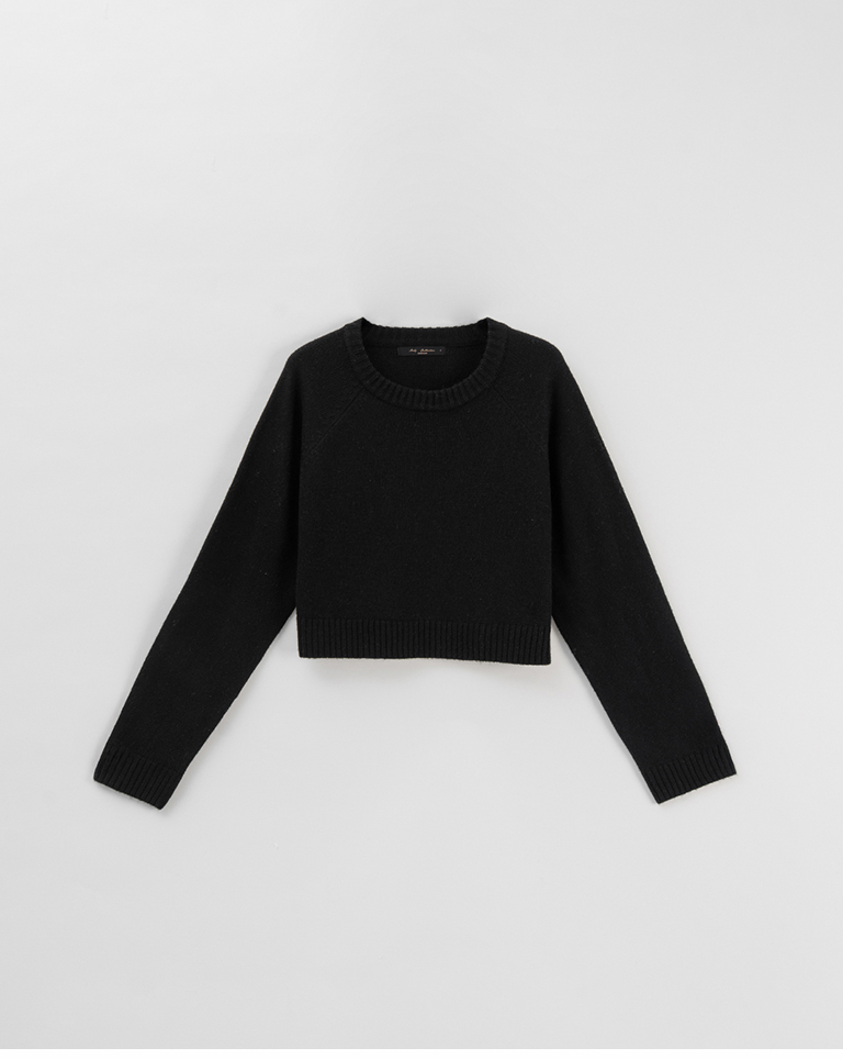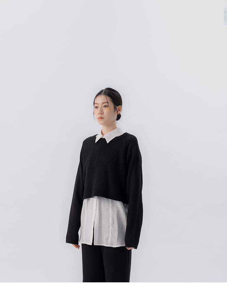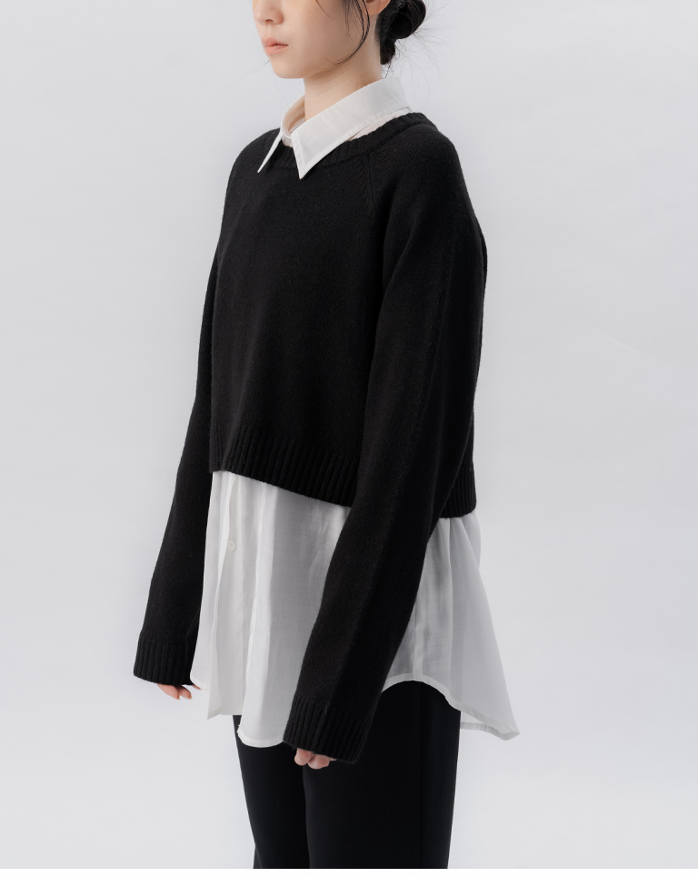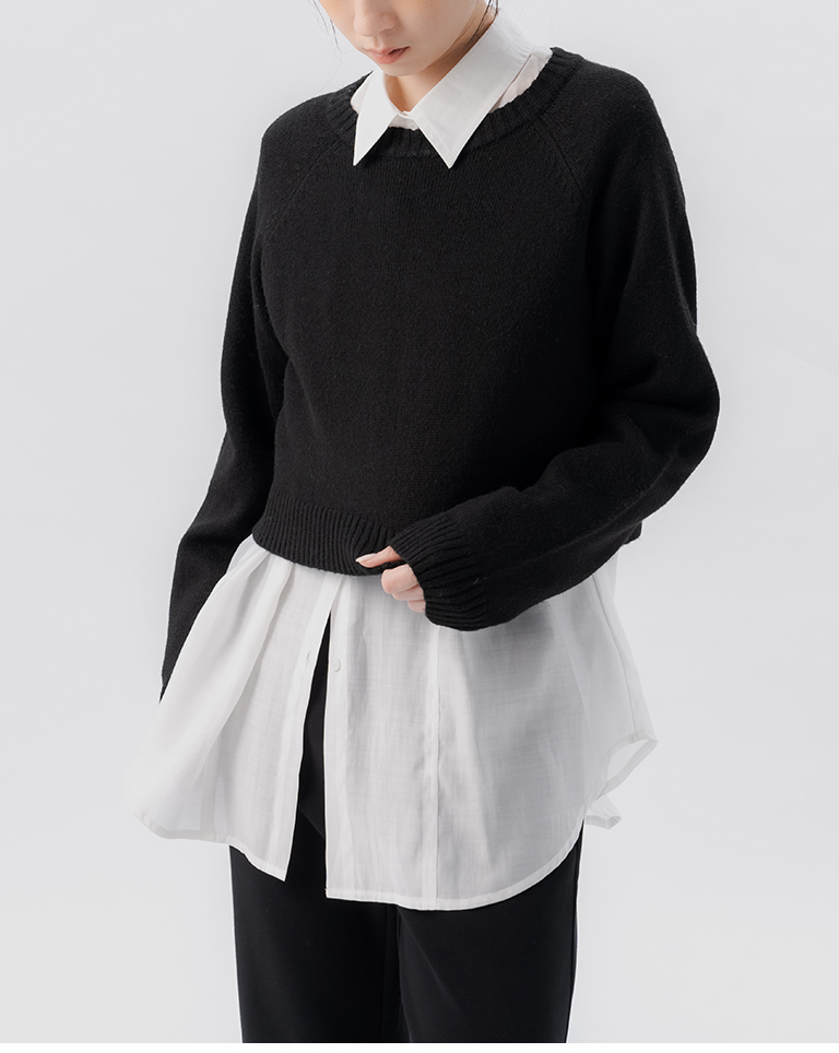 質感花紗設計短版針織毛衣-黑