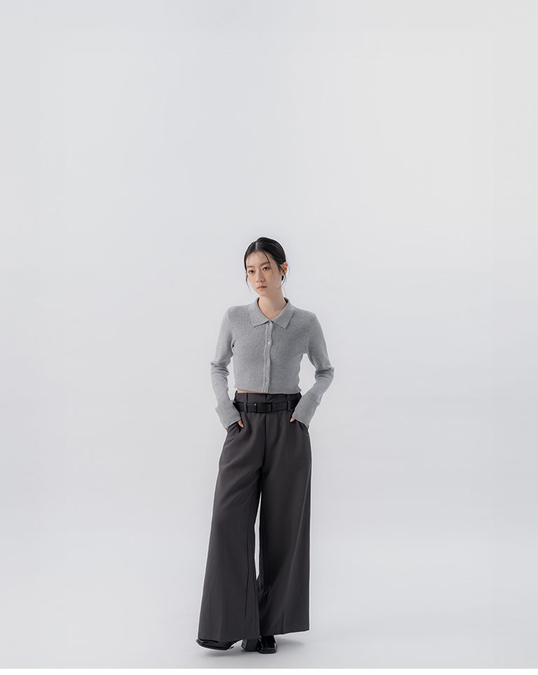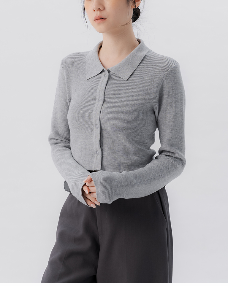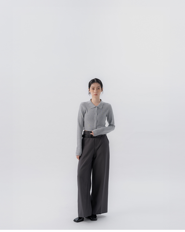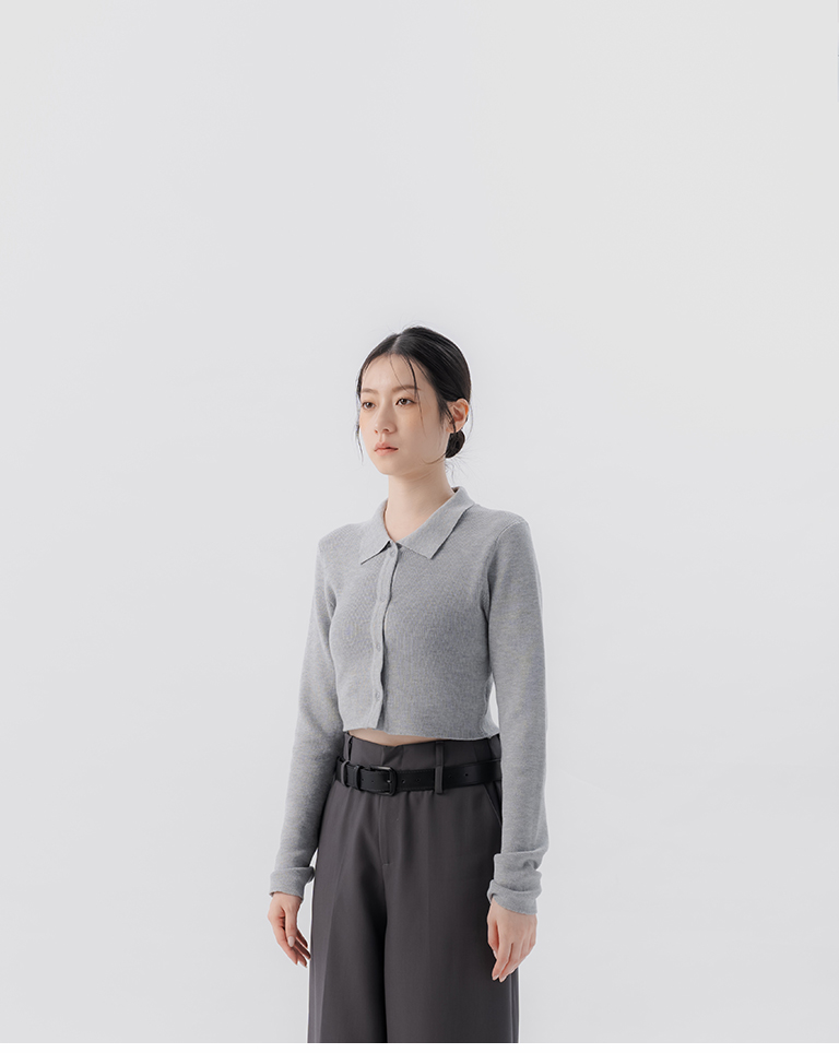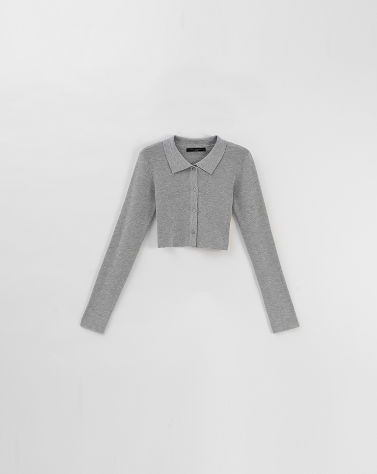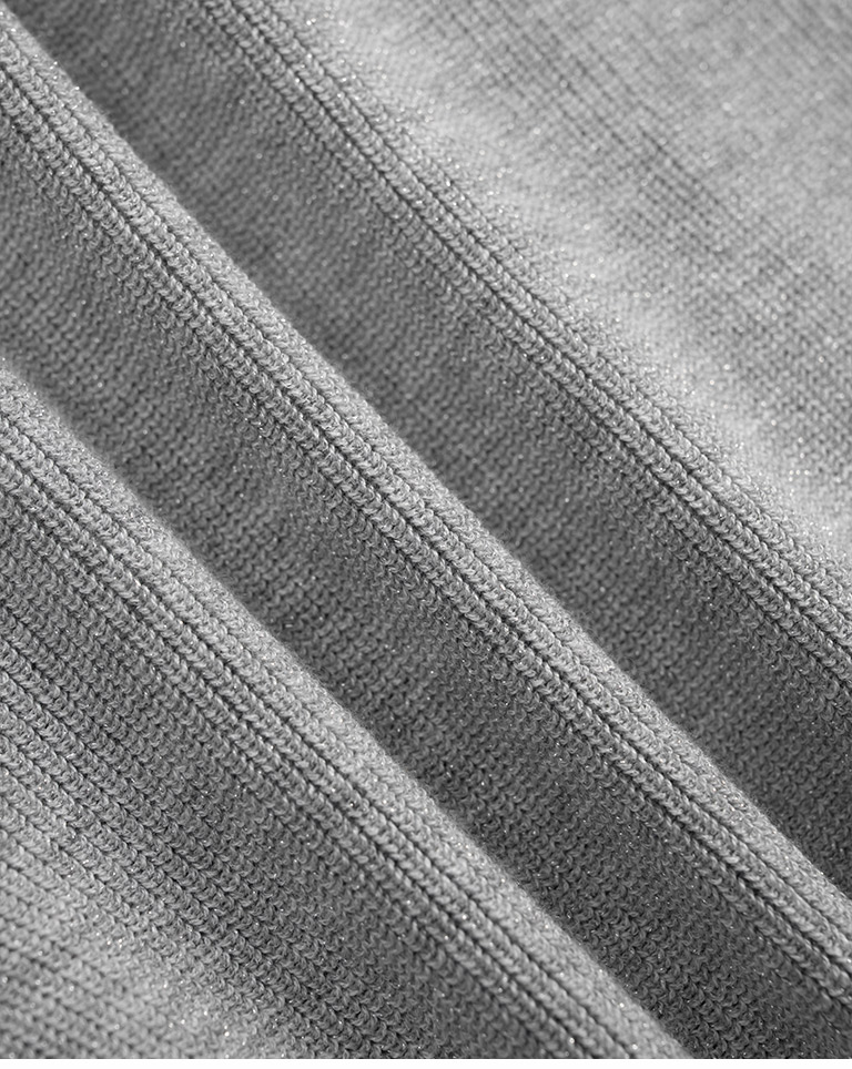 金蔥坑條合身短版針織上衣-淺灰 S/M