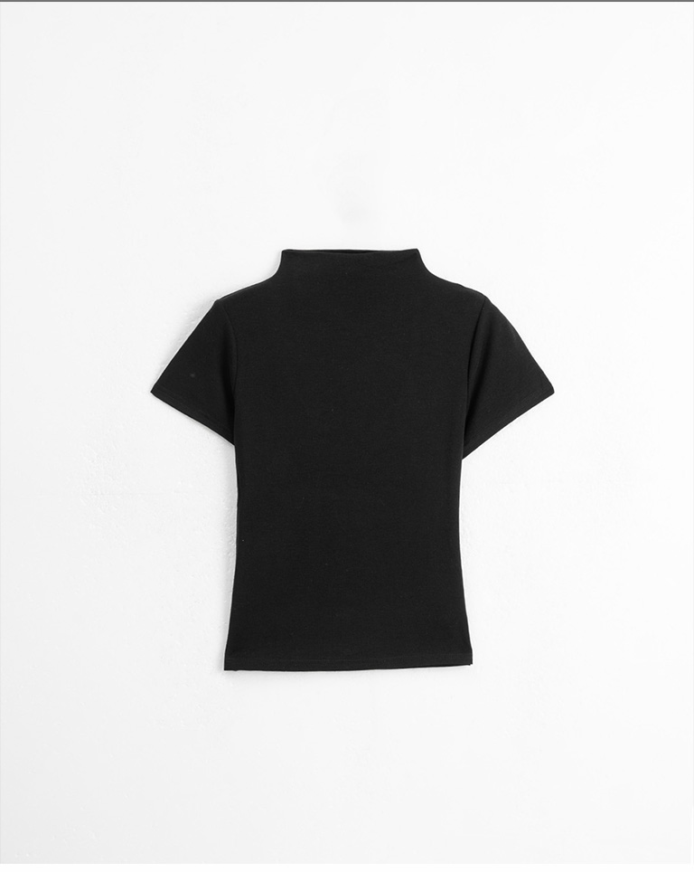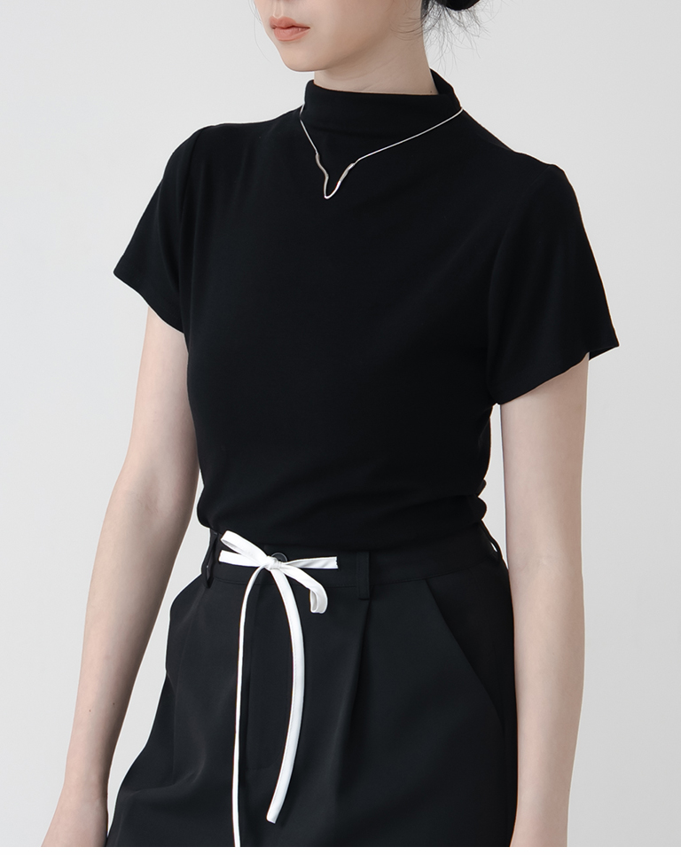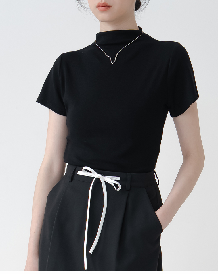 S~L身形實測!分尺寸皺皺木耳邊透膚高領長袖上衣