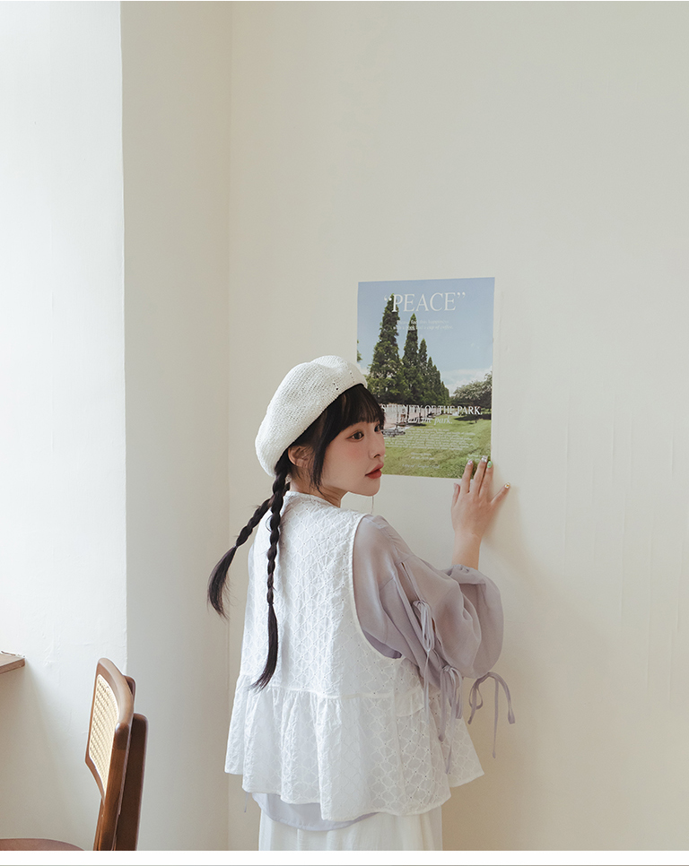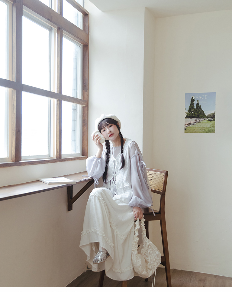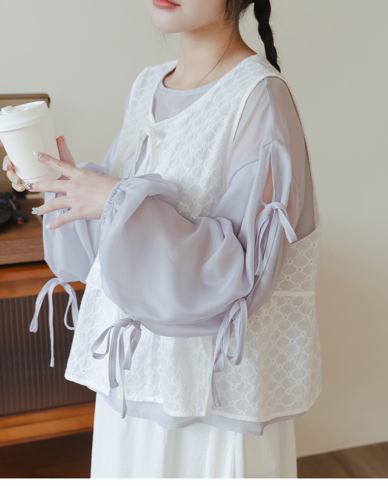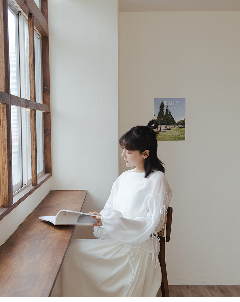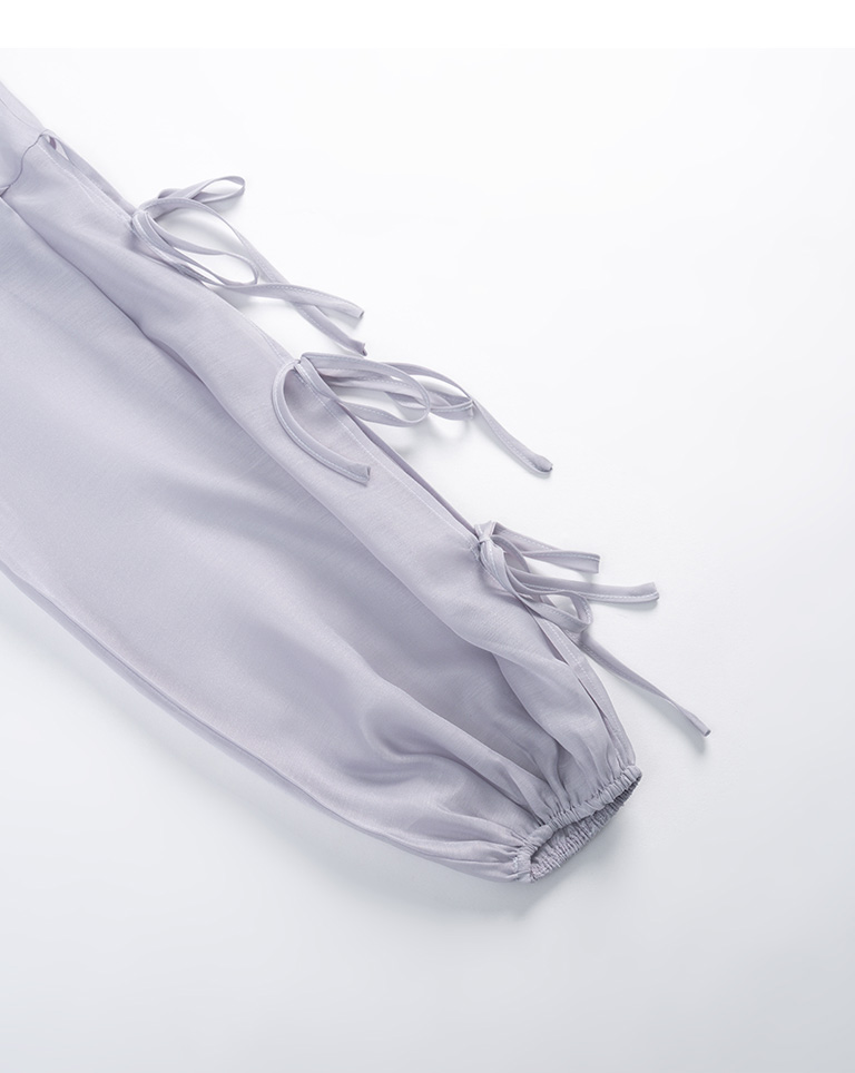 微光澤袖綁帶造型透膚上衣