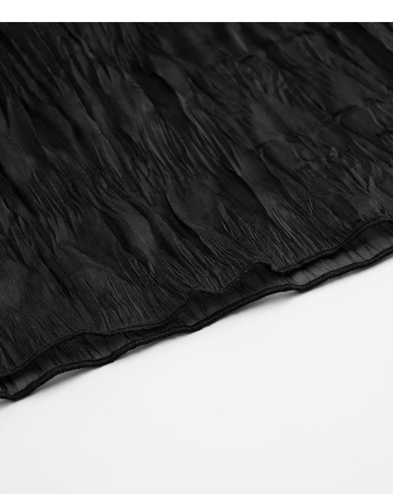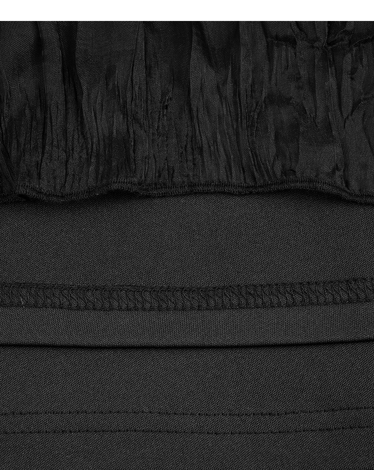 S~L身形實測!分尺寸皺皺木耳邊透膚高領長袖上衣