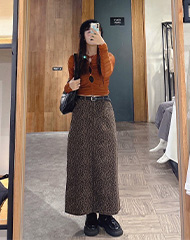 豹紋設計直筒長裙附皮帶 S/M/L
