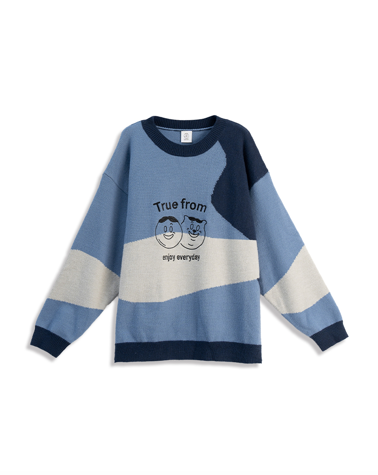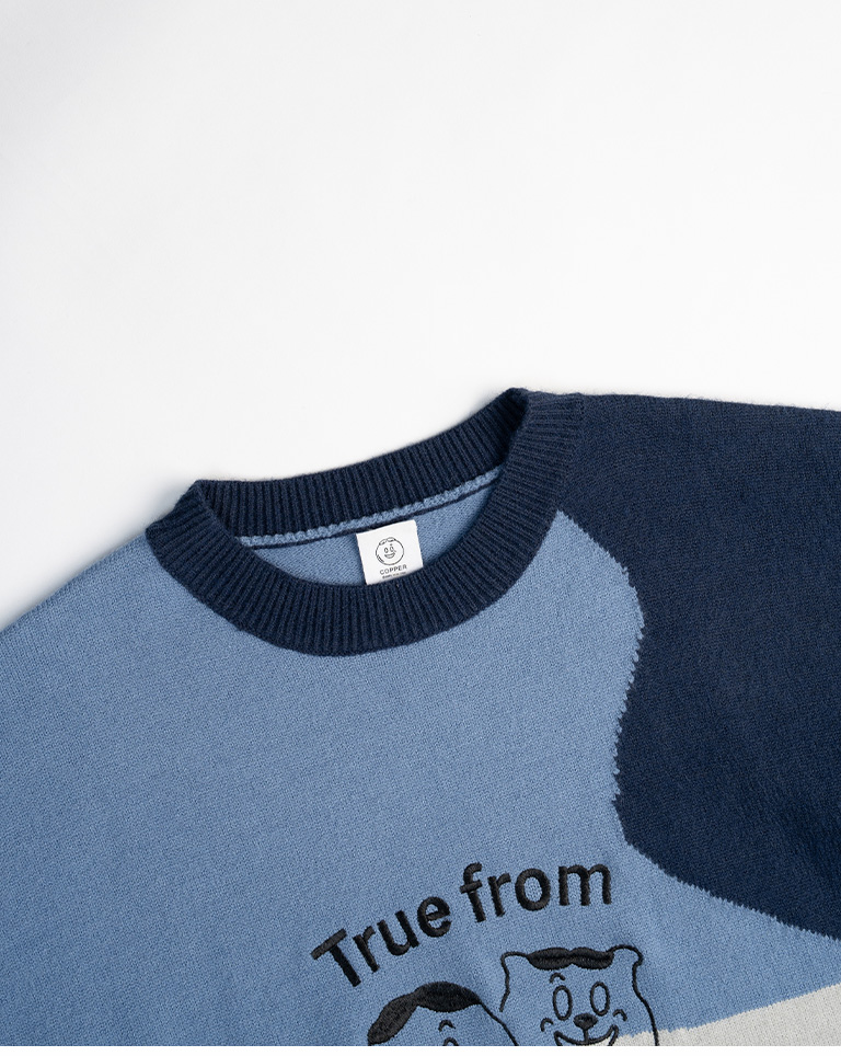 中分哥 餅乾貓咪碰撞刺繡色塊感毛衣