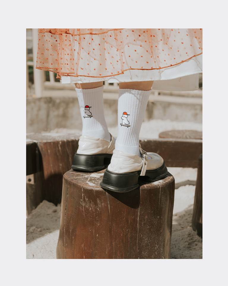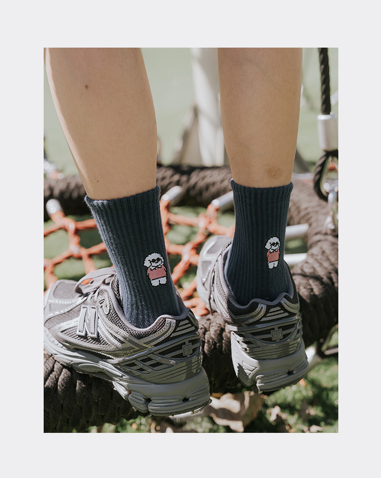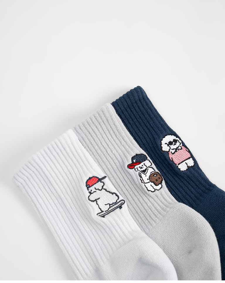 Tombonia 狗狗刺繡厚底中筒襪 三色售