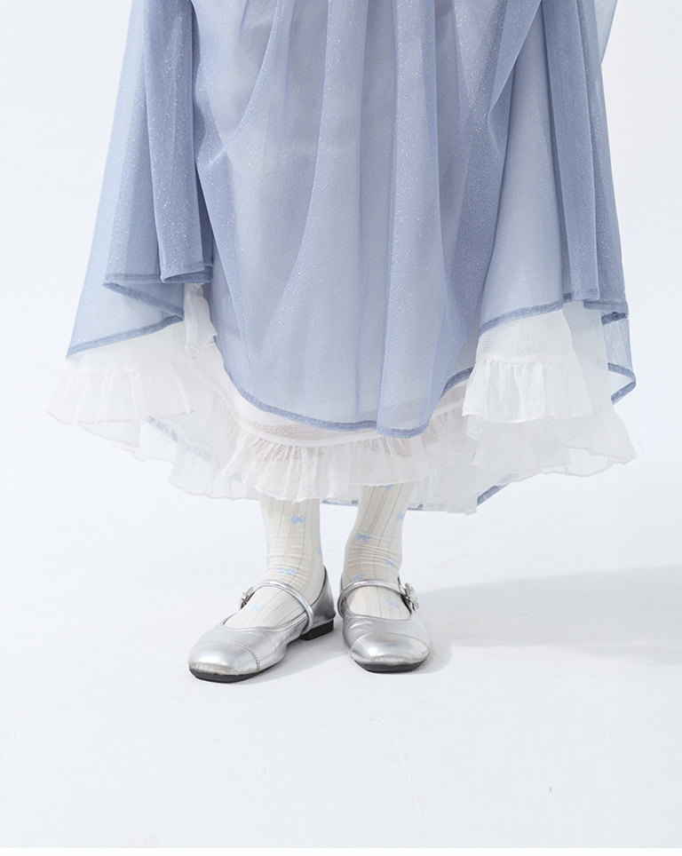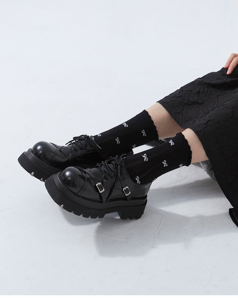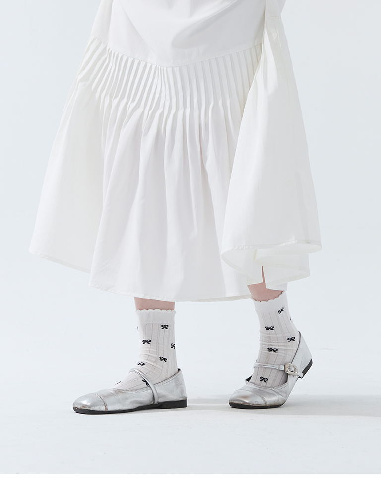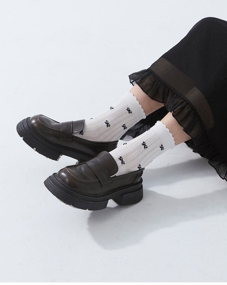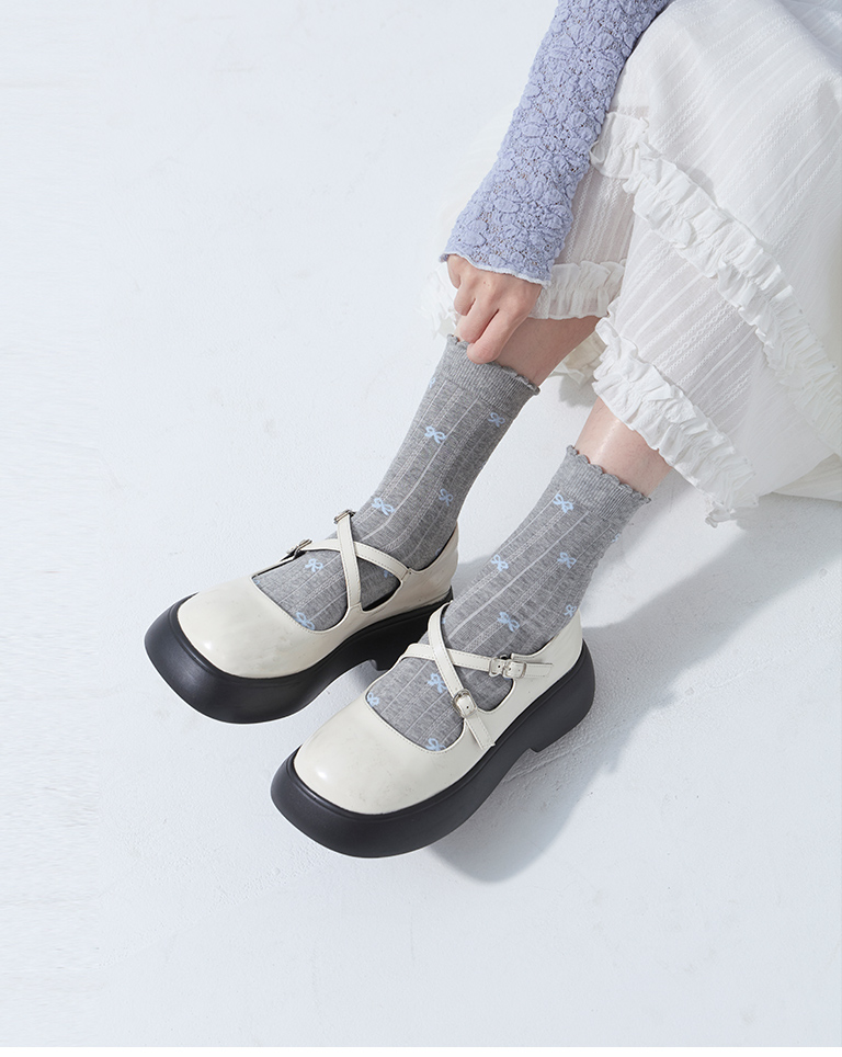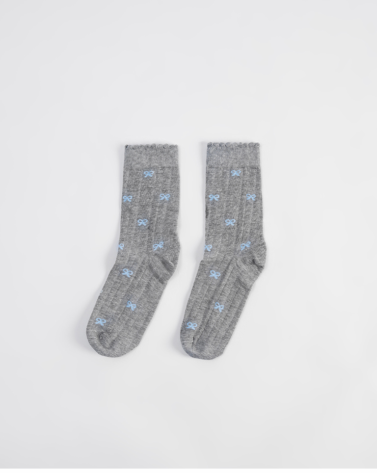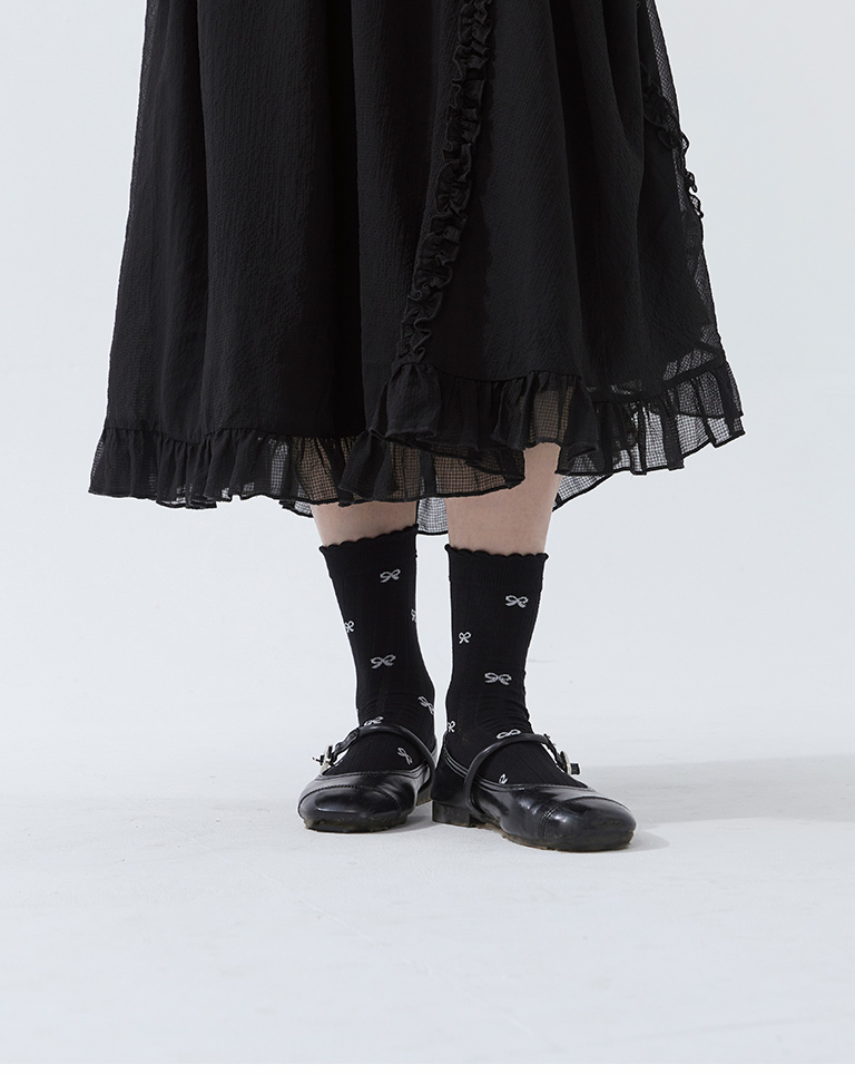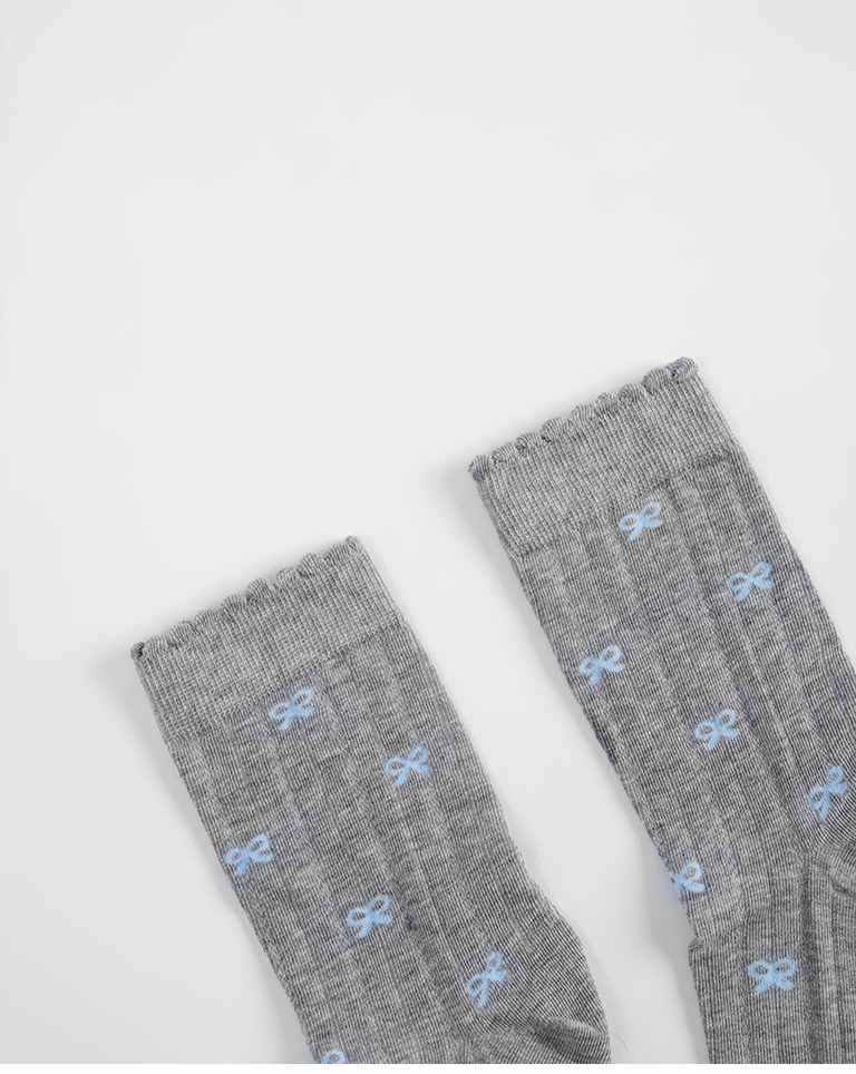 蝴蝶結鏤空直紋花邊中筒襪 四色售 特價