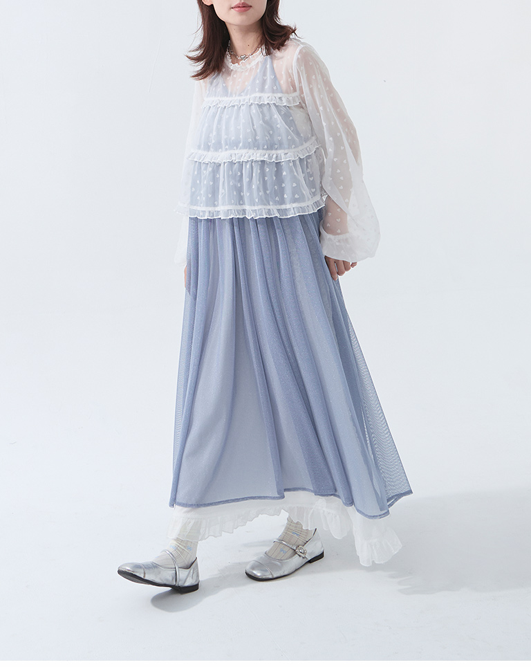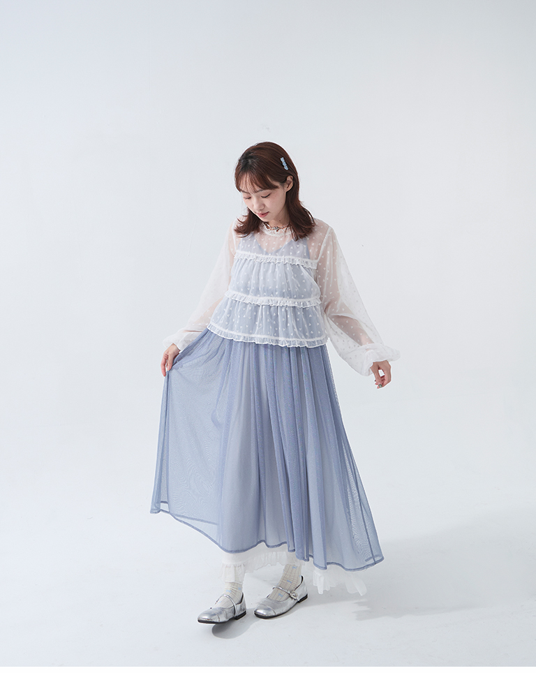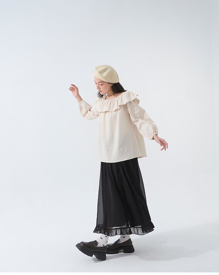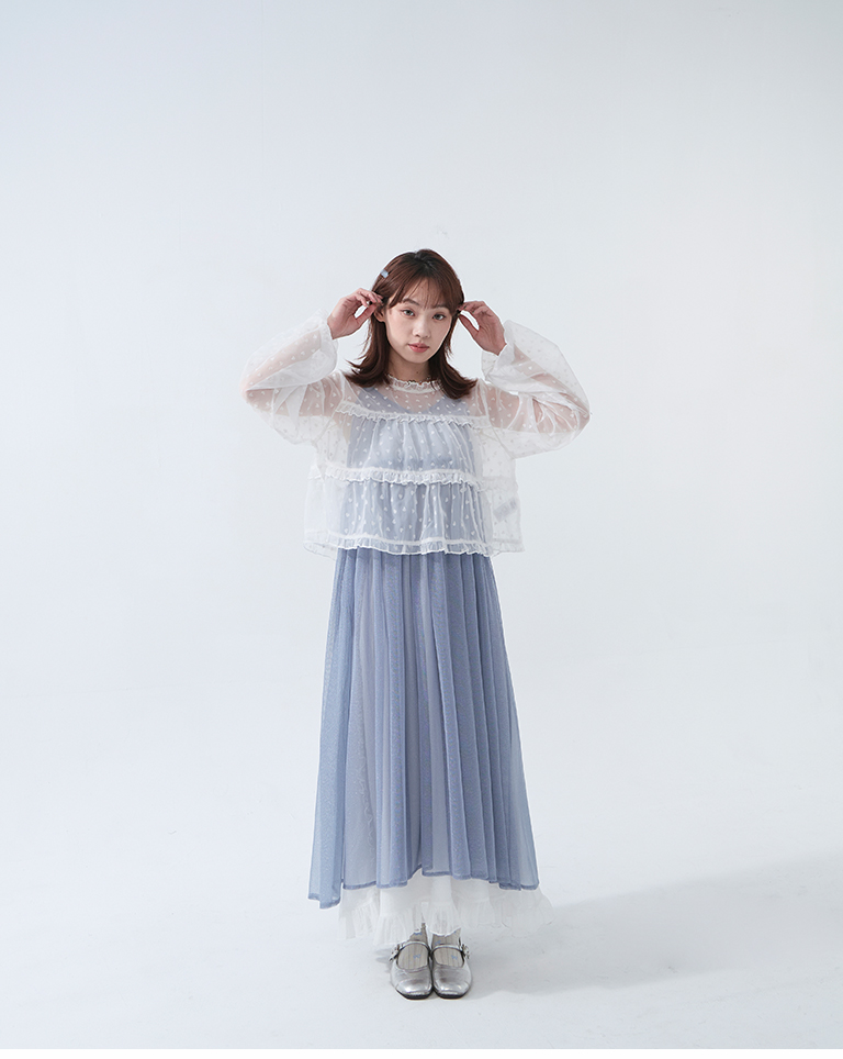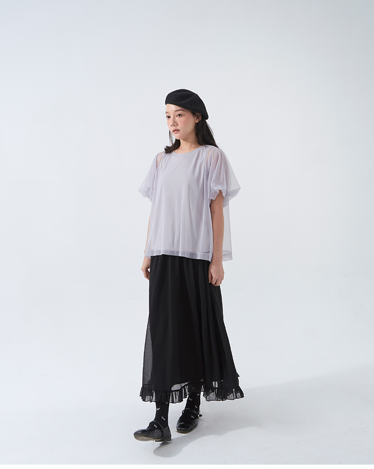 S~L身形實測!分尺寸皺皺木耳邊透膚高領長袖上衣