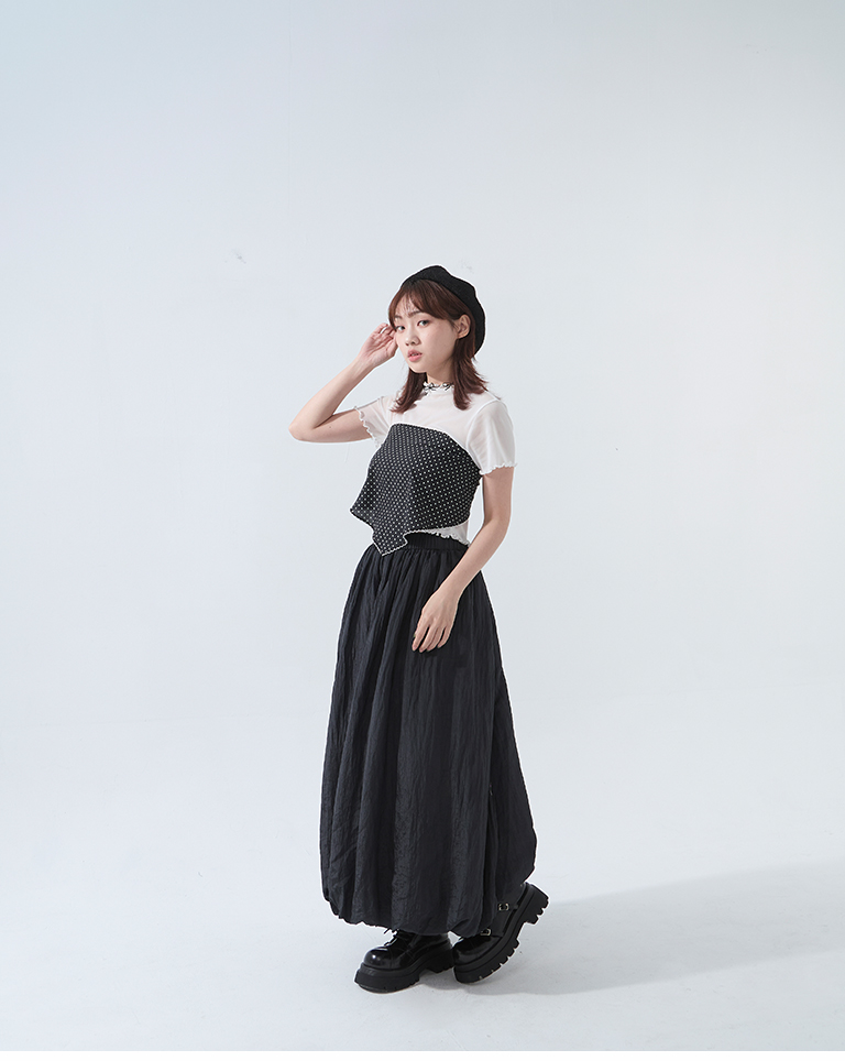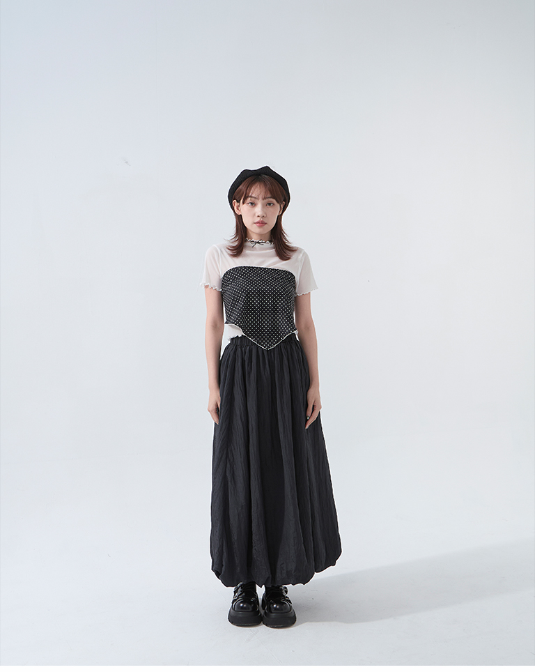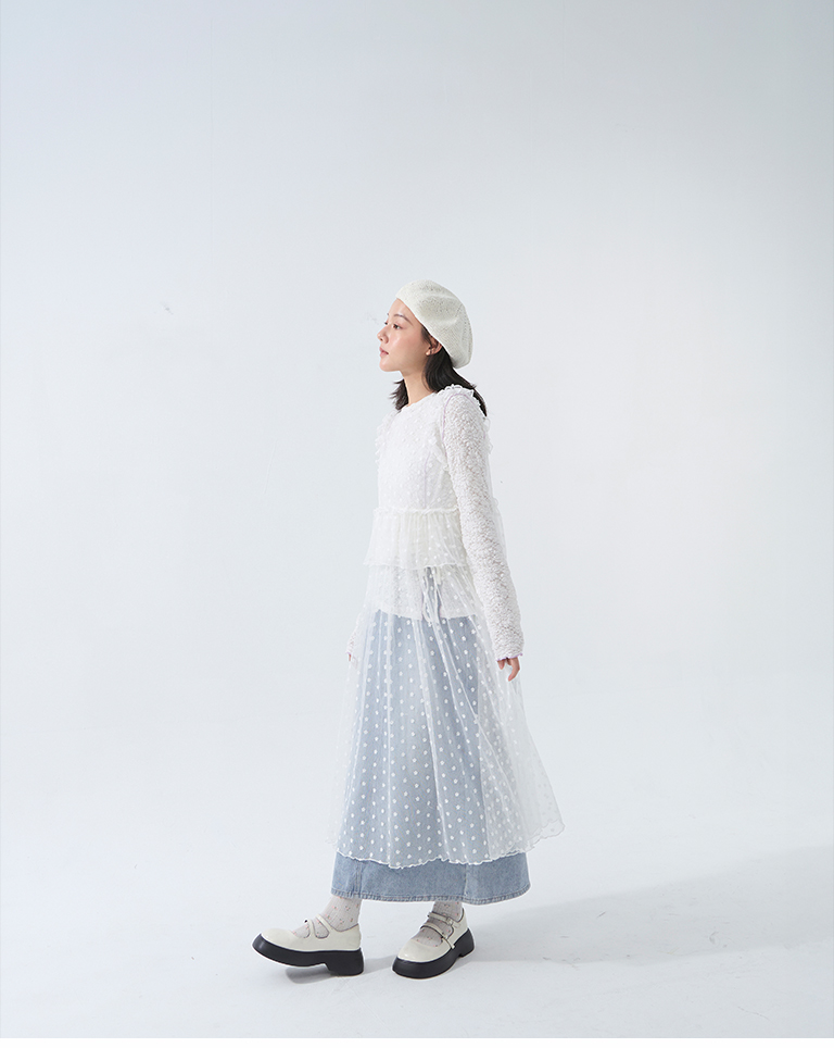S~L身形實測!分尺寸皺皺木耳邊透膚高領長袖上衣