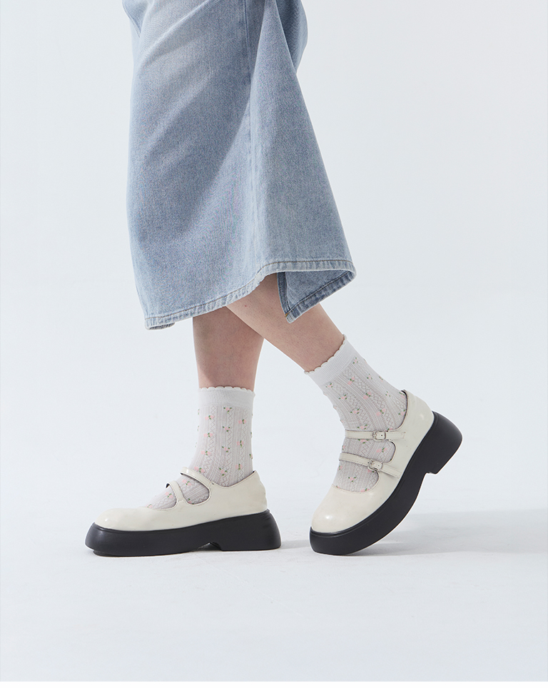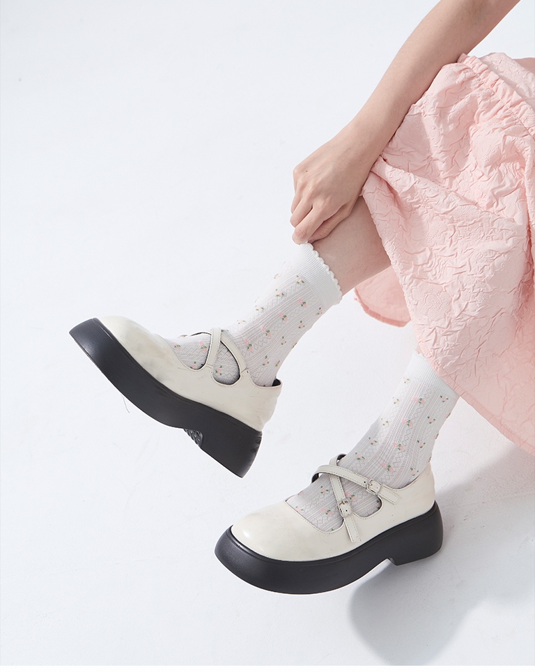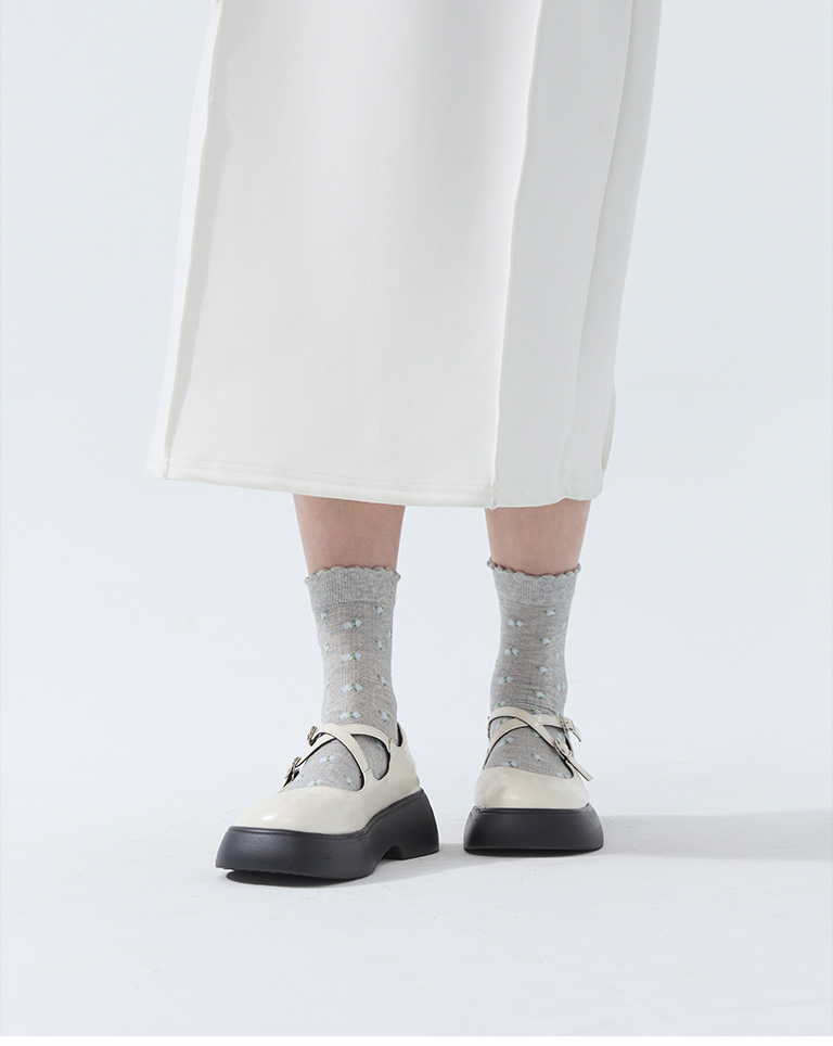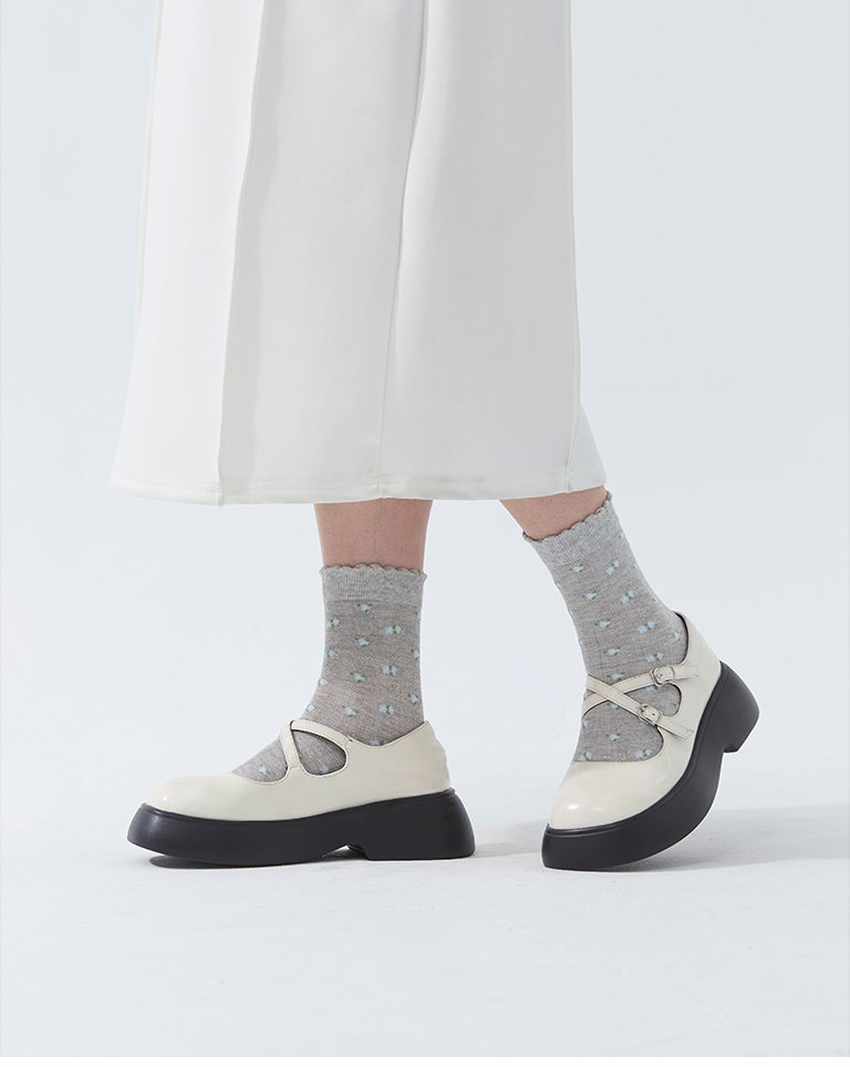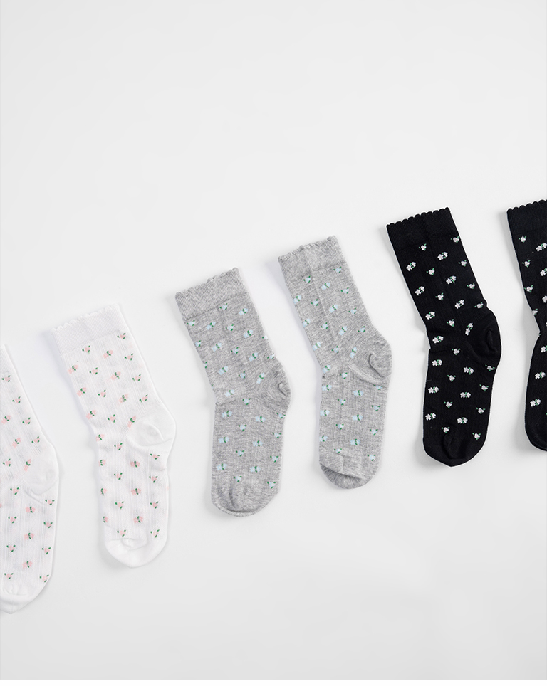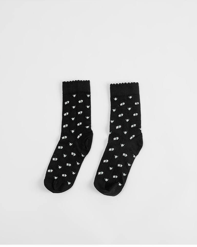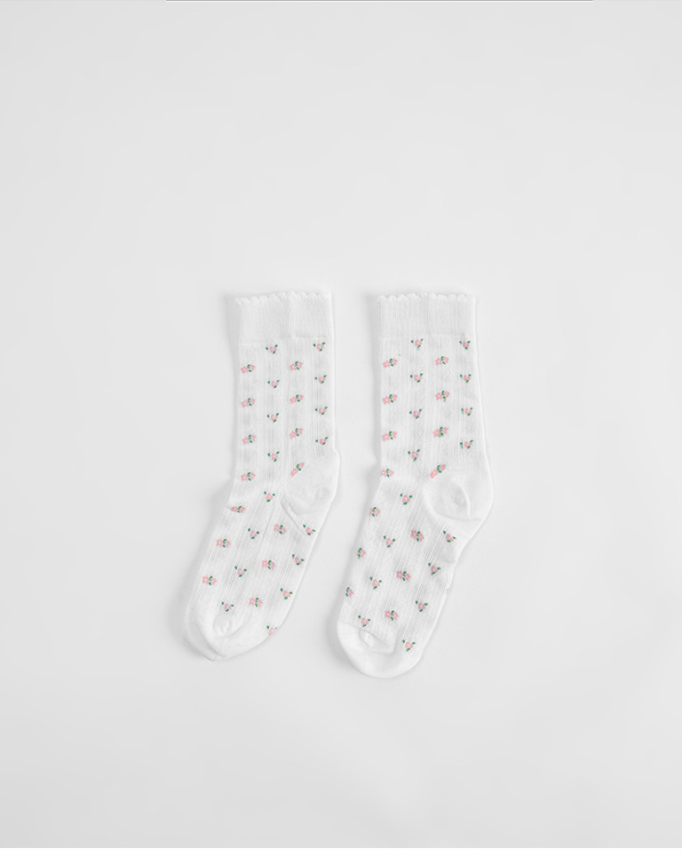 小碎花緹花造型花邊中筒襪 三色售 特價