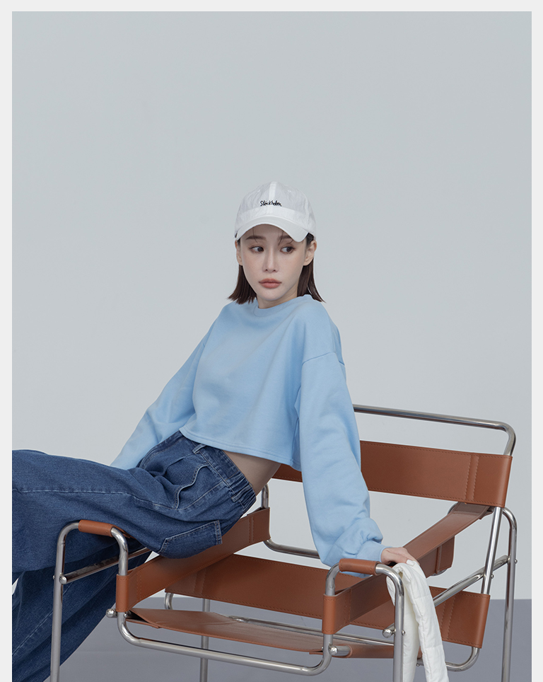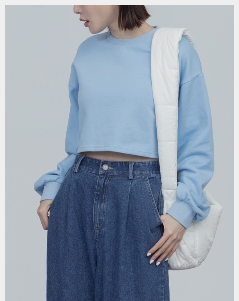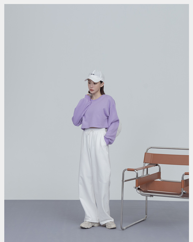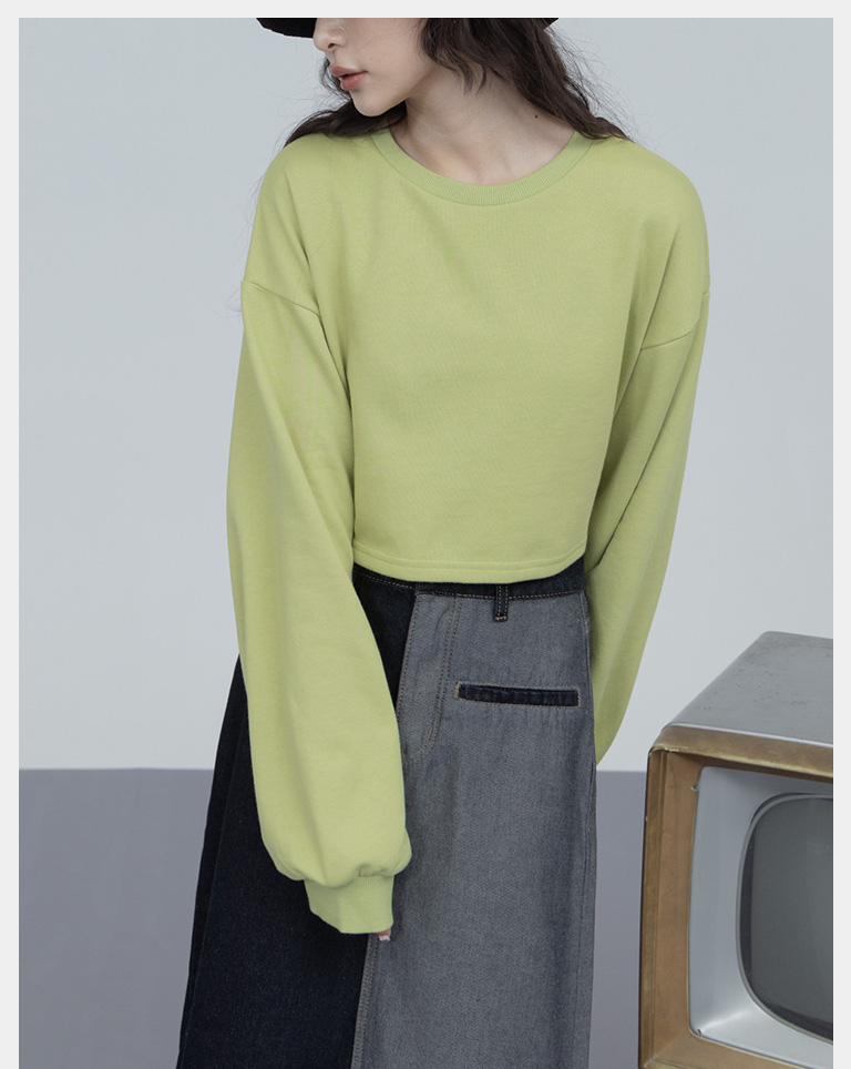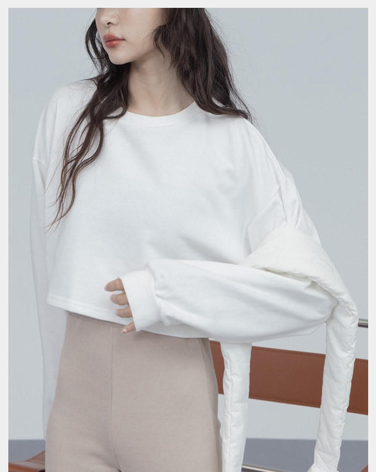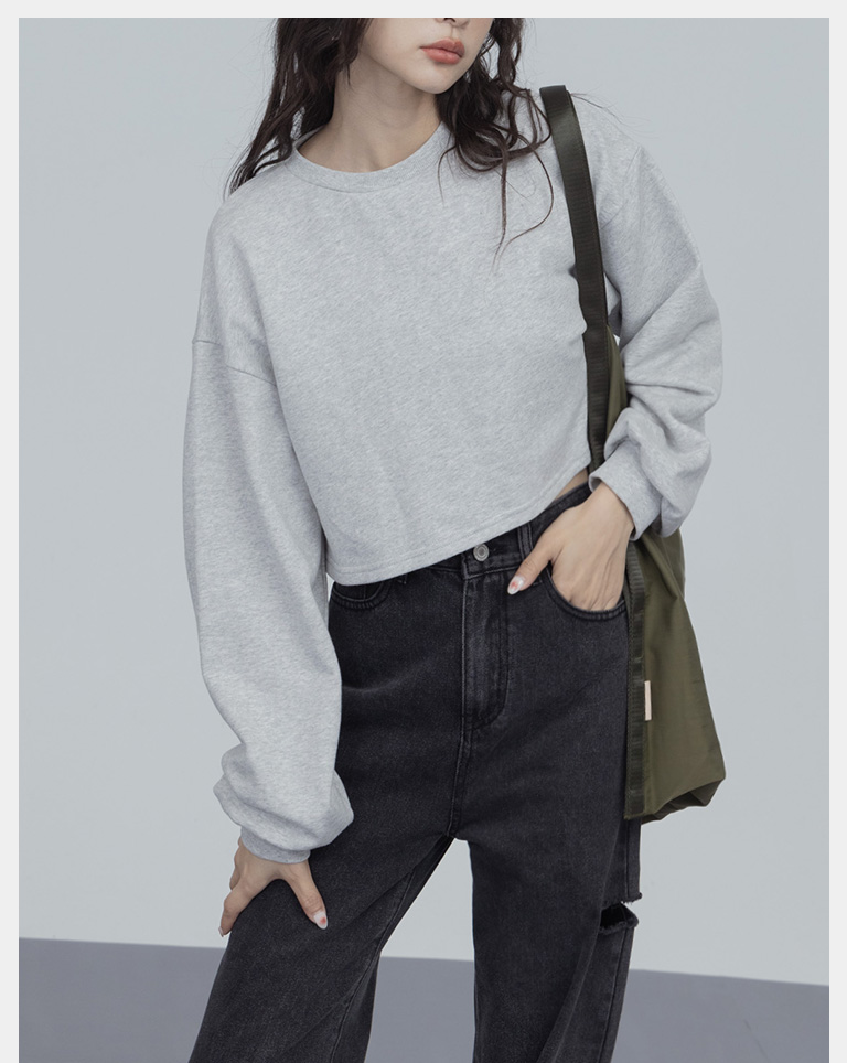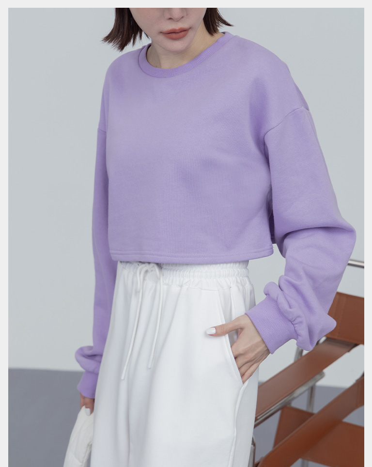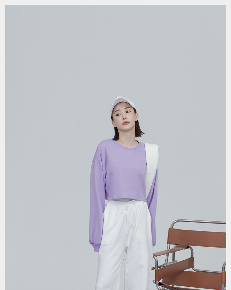 簡約圓領設計素面短版衛衣