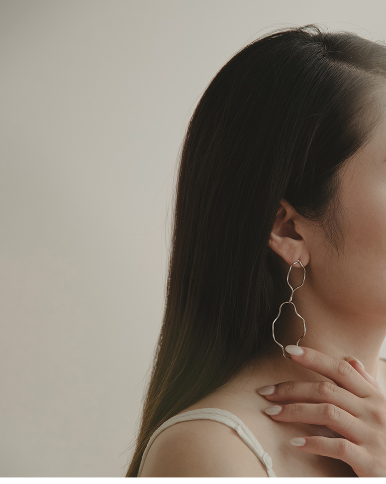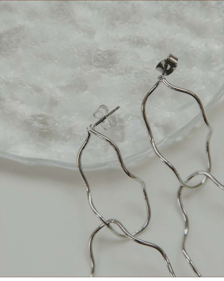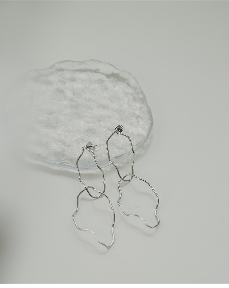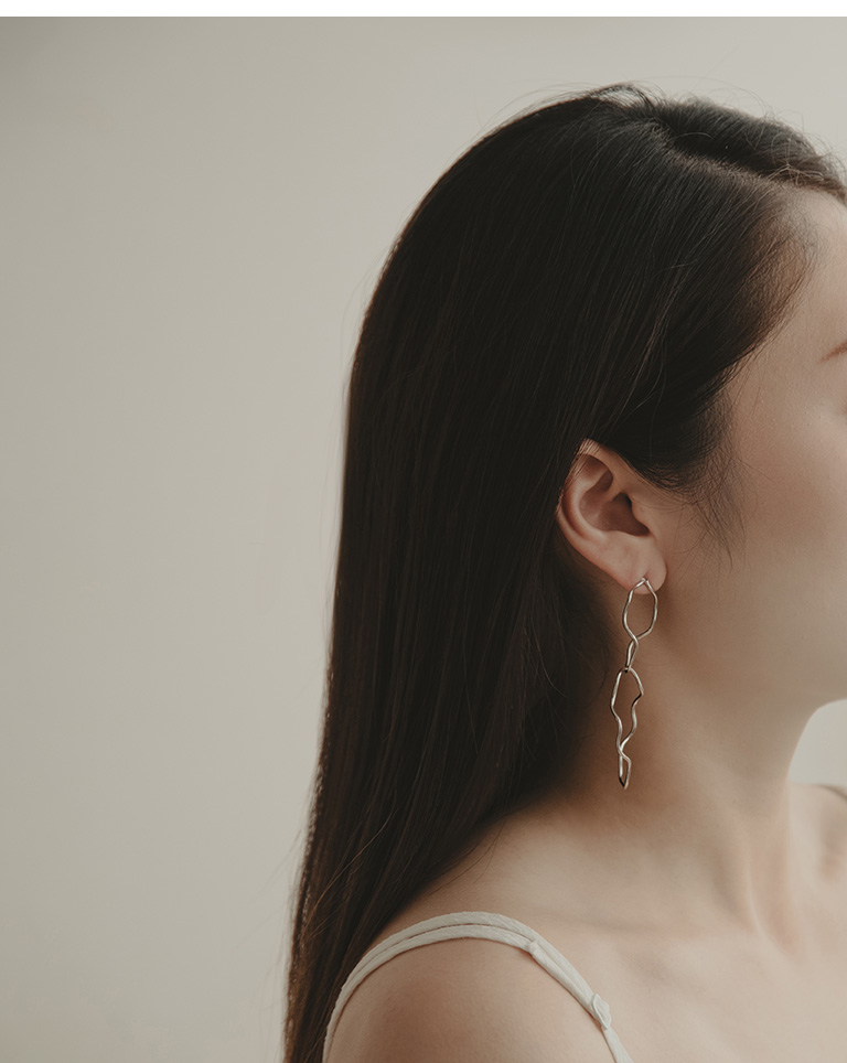 簡約立體垂墜曲線造型耳針式耳環