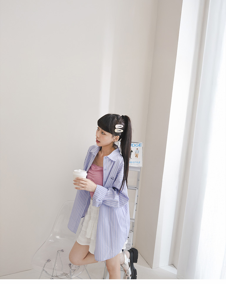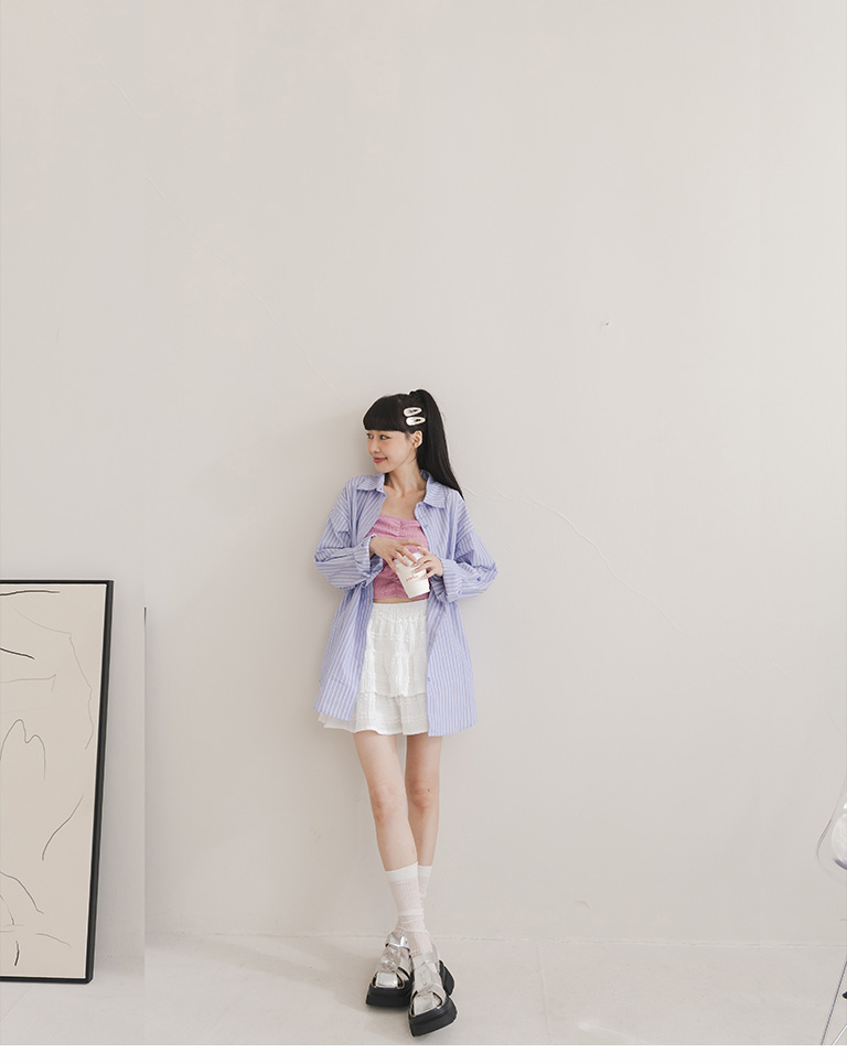 S~L身形實測!分尺寸皺皺木耳邊透膚高領長袖上衣