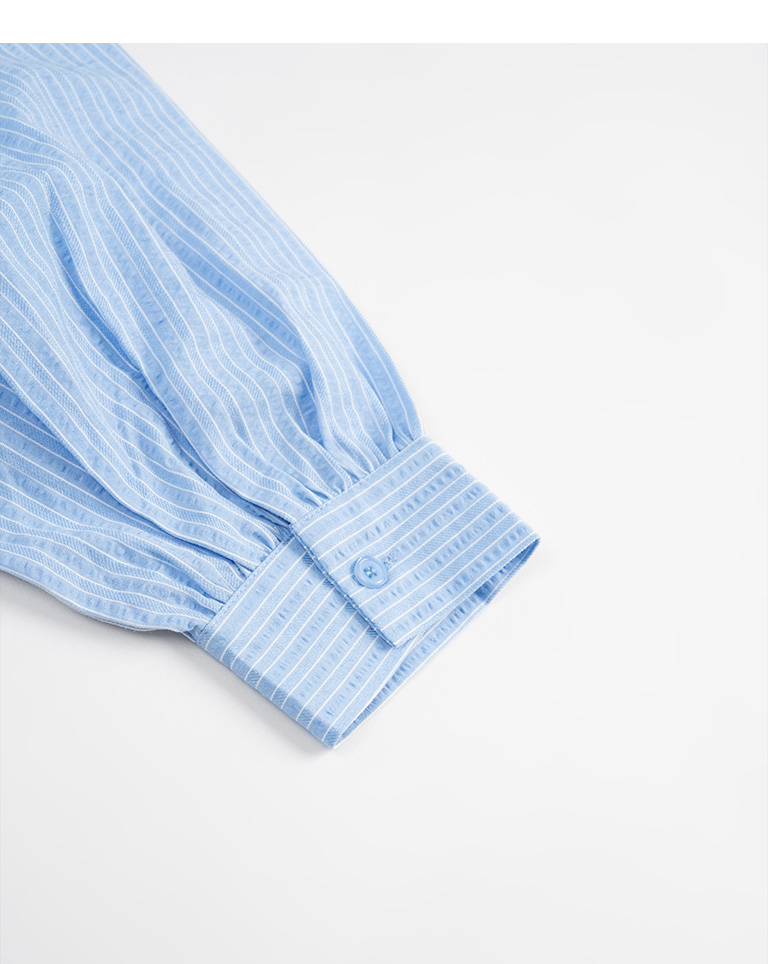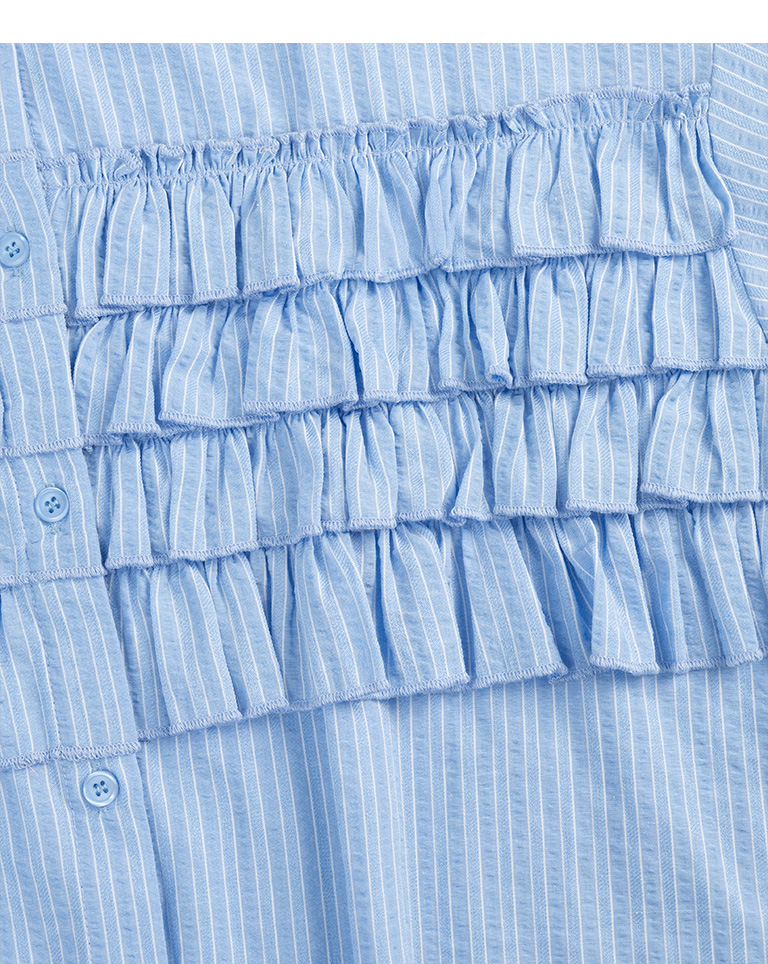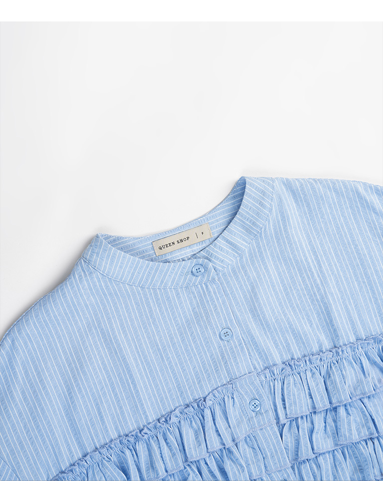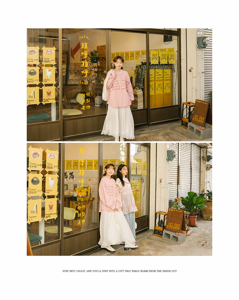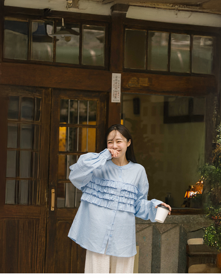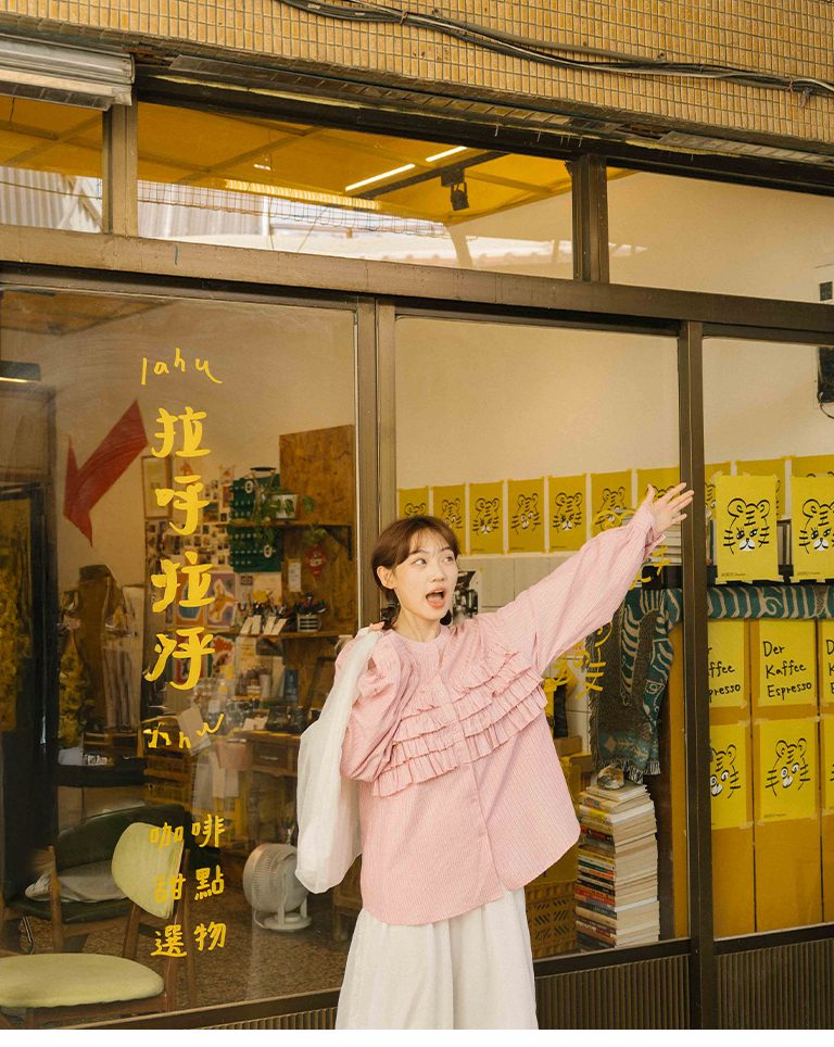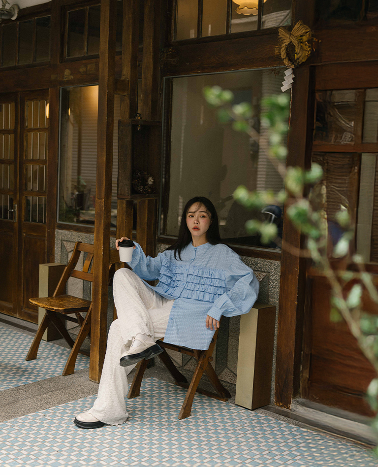 S~L身形實測!分尺寸皺皺木耳邊透膚高領長袖上衣