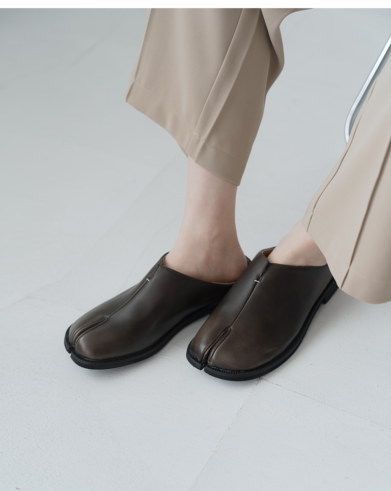 質感皮革分趾設計半拖鞋-咖啡 36-40