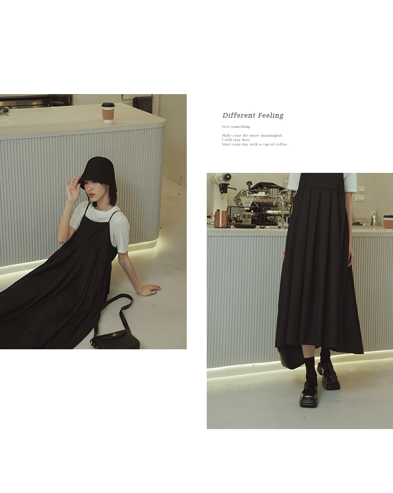 黑色搭,01039317基本圓領素面百搭多色上衣 卡其搭,01150303 基本素面下開衩設計長版背心