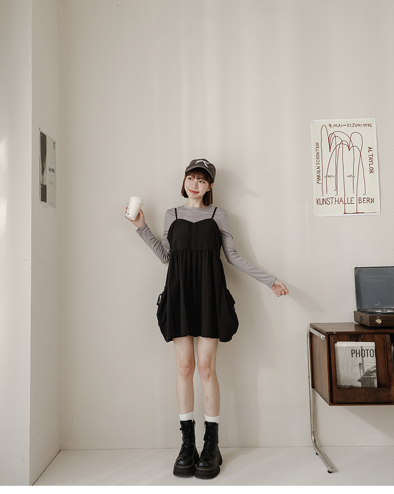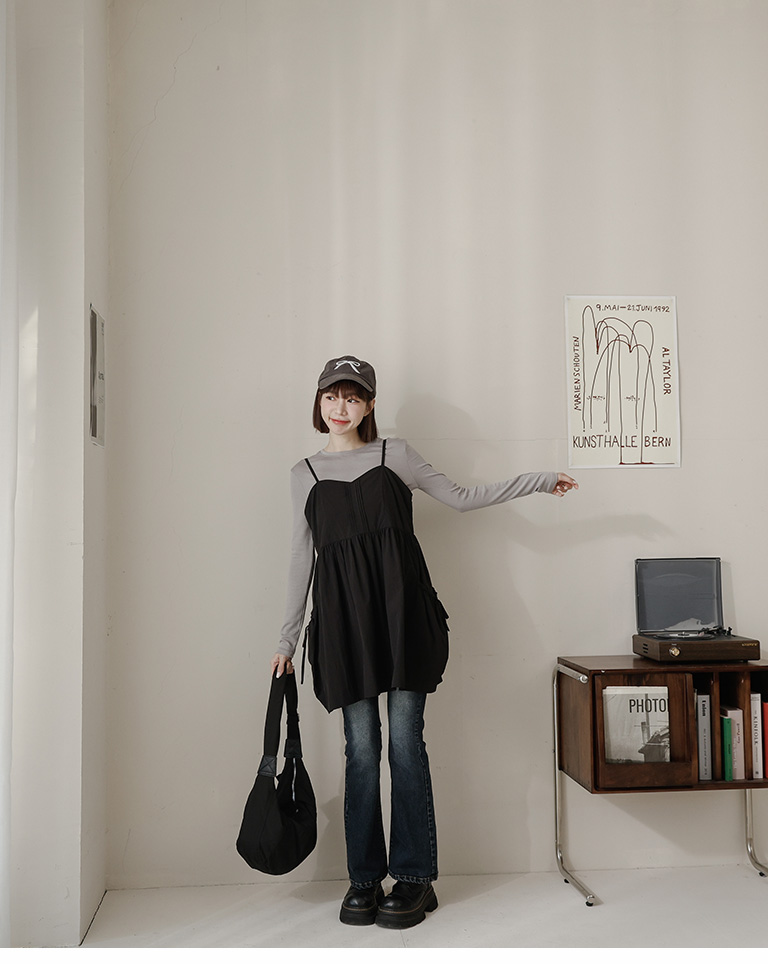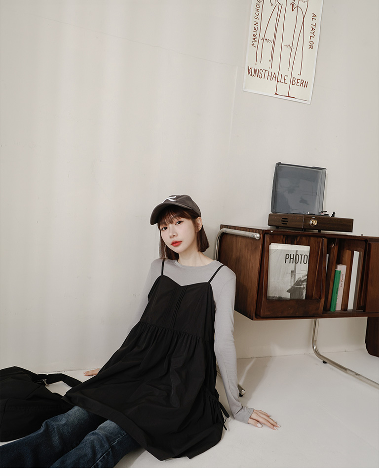此件商品黑色款搭配的灰色長袖為【01098744簡約素面圓領內刷毛發熱衣 四色售S/M/L】提供給您,謝謝。