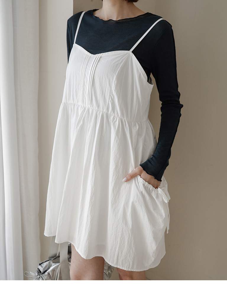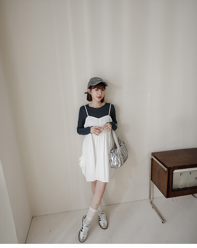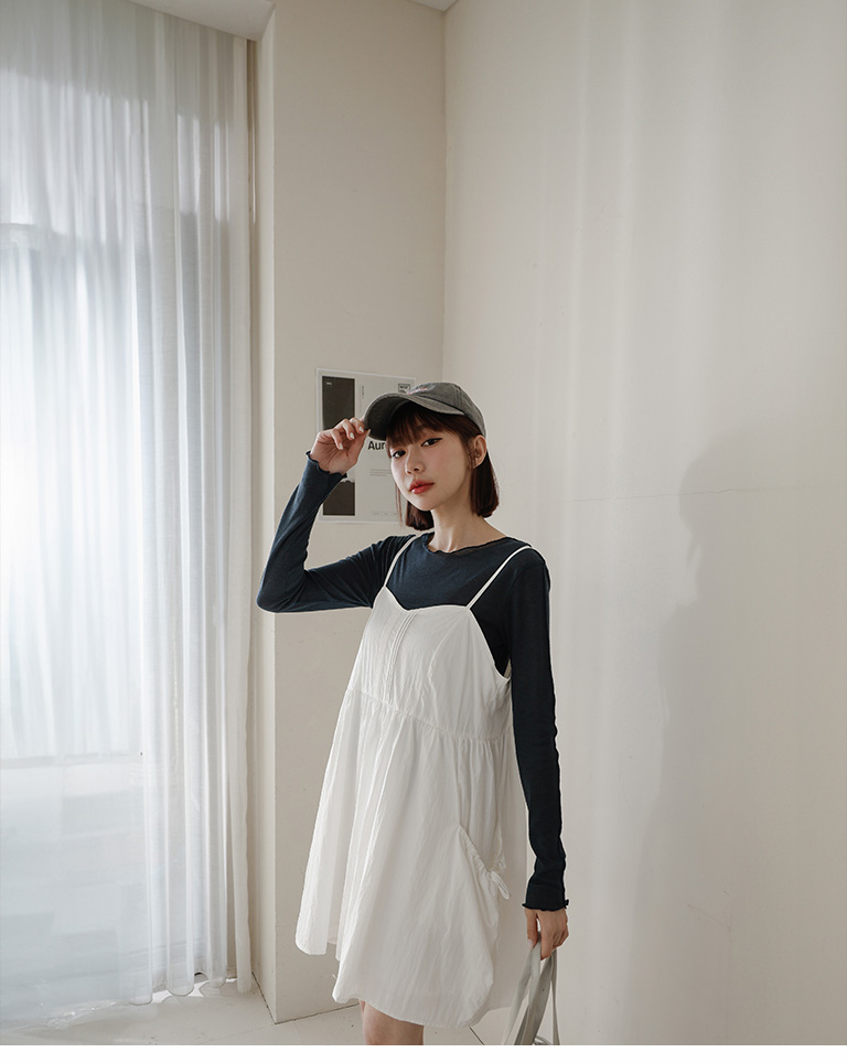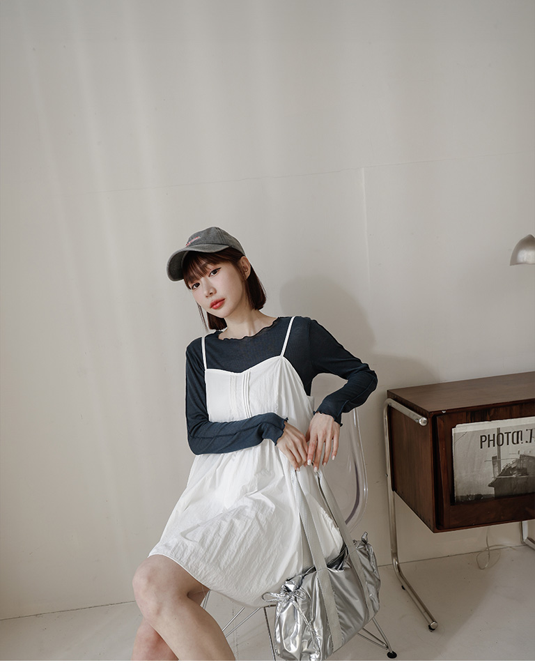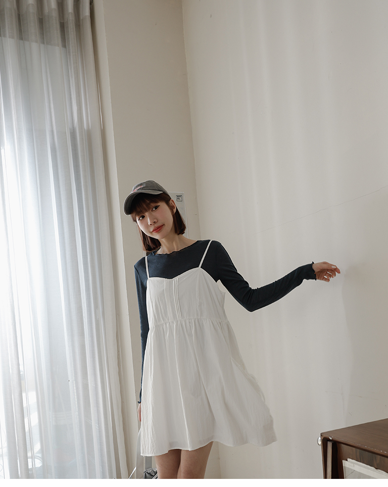 問題 1:您好~想請問模特穿白色裙子裡的藍色內搭是哪一件 謝謝~