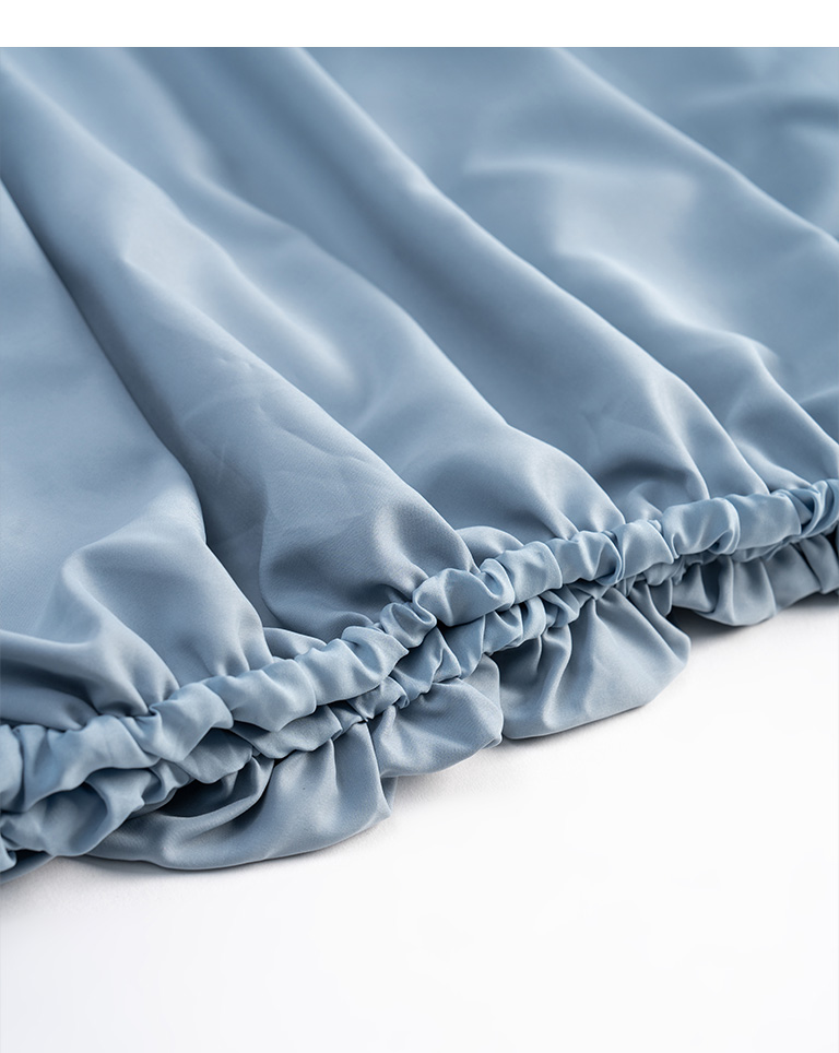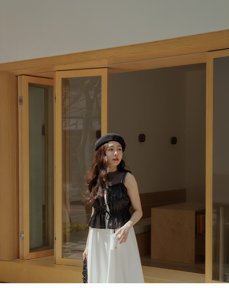 S~L身形實測!分尺寸皺皺木耳邊透膚高領長袖上衣