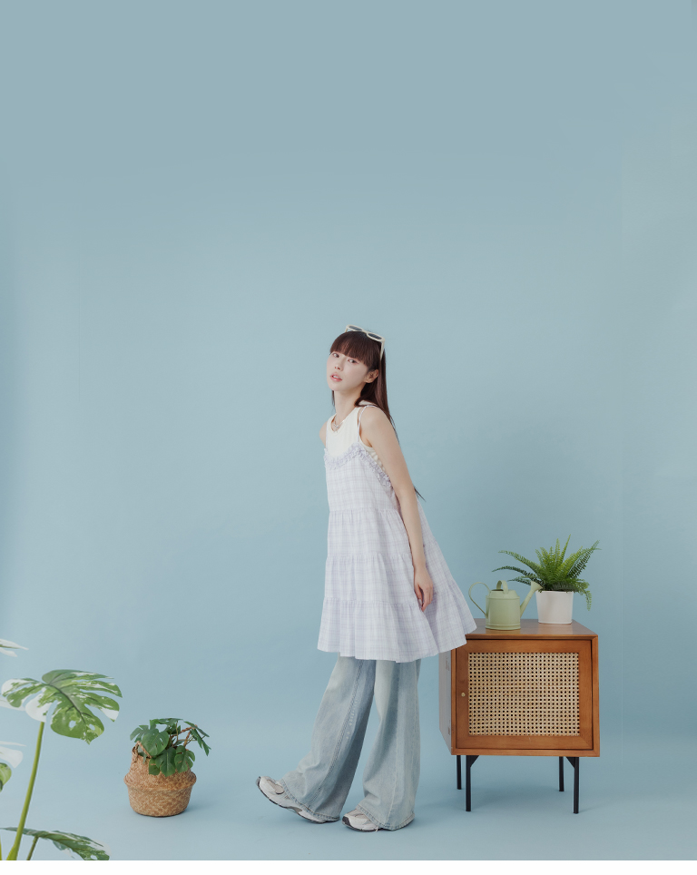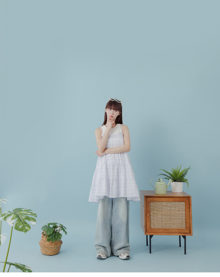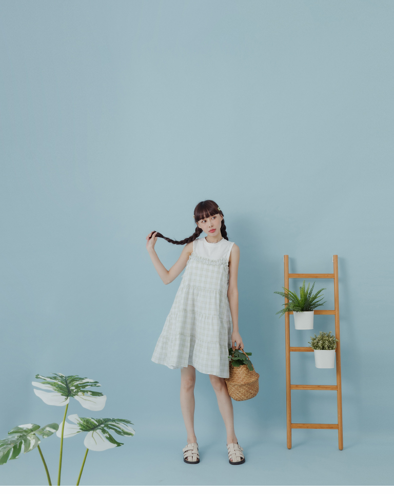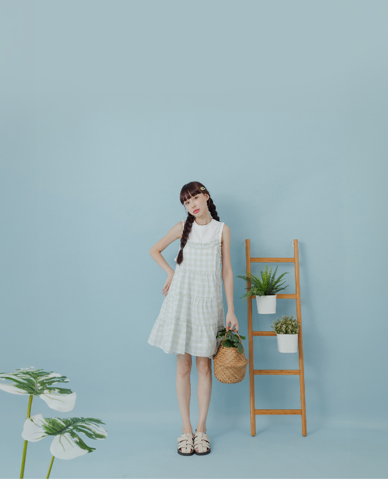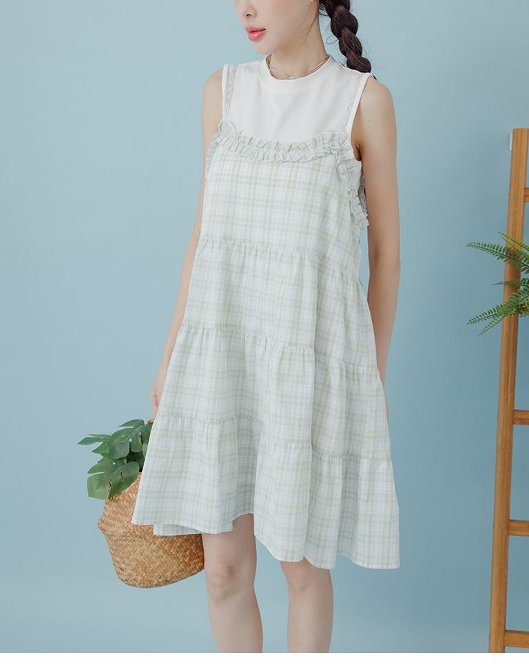 格紋荷葉領細肩蛋糕短洋裝 兩色售