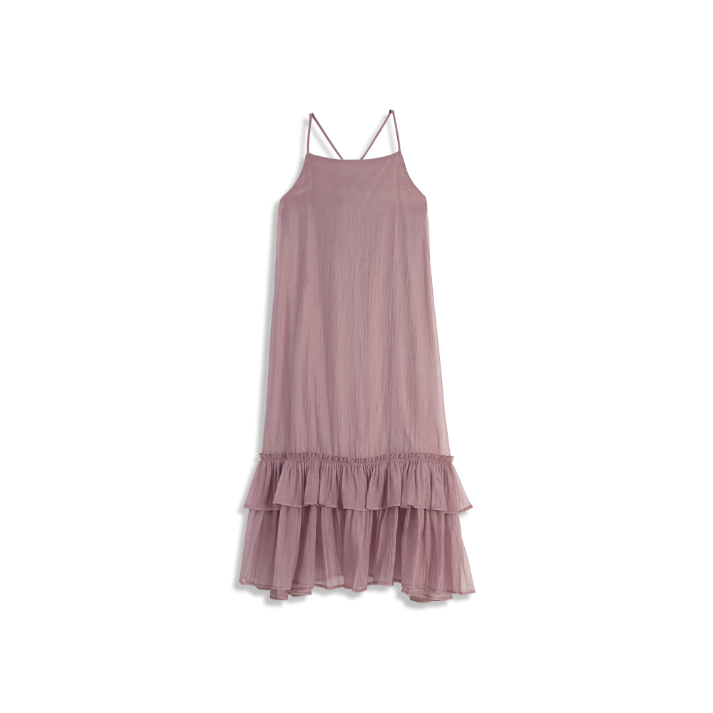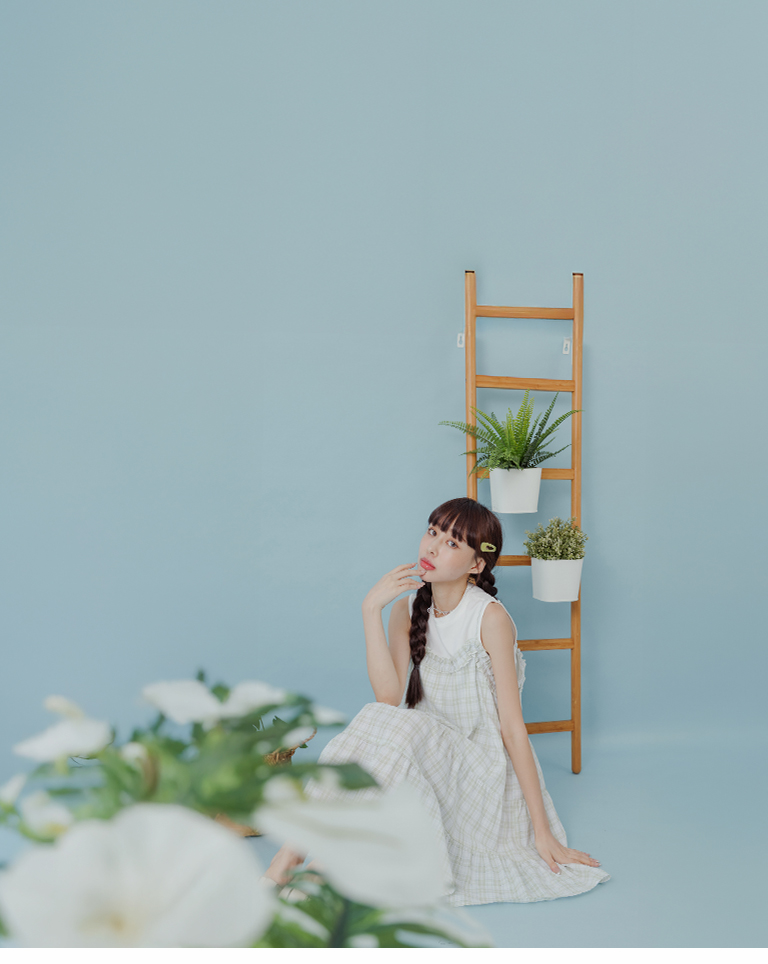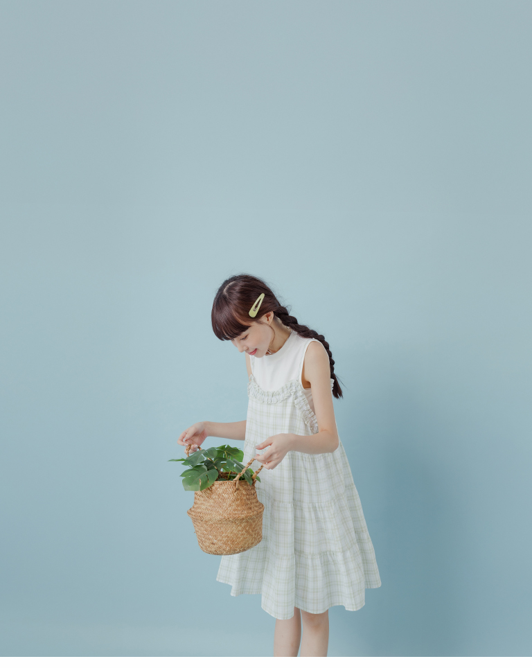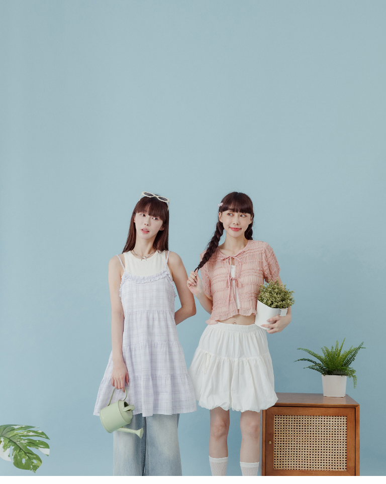 格紋荷葉領細肩蛋糕短洋裝 兩色售