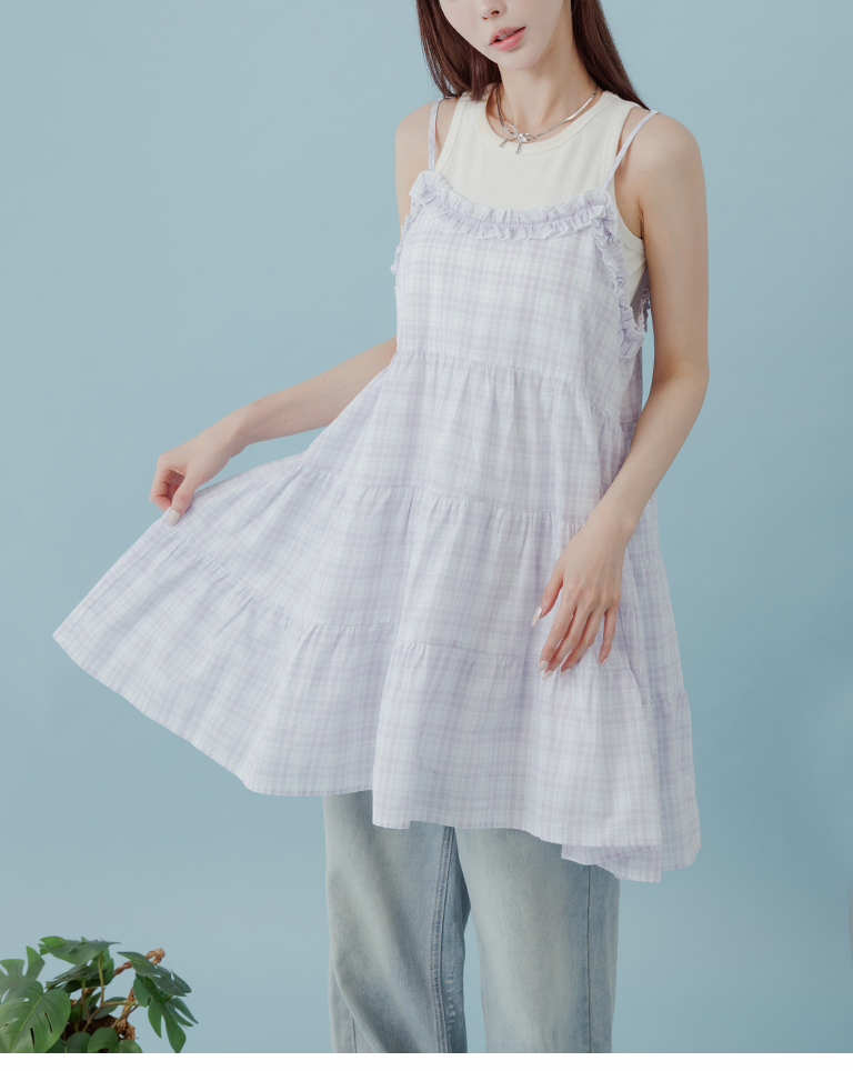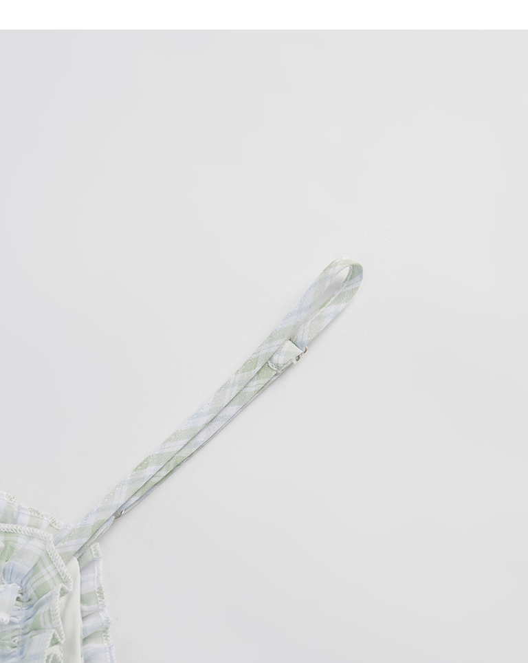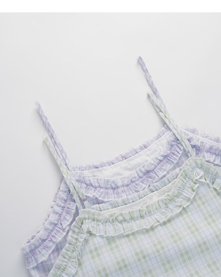 格紋荷葉領細肩蛋糕短洋裝