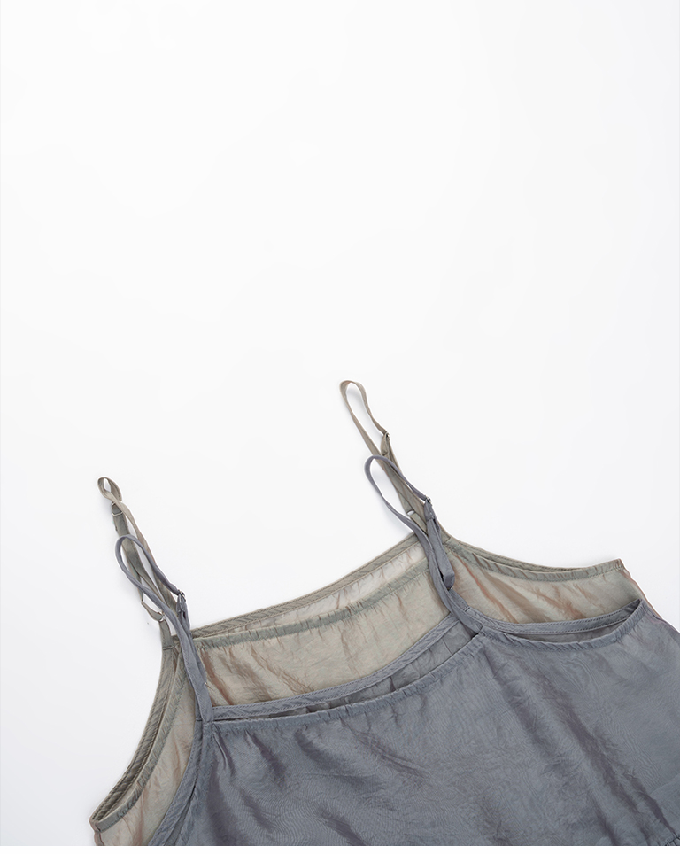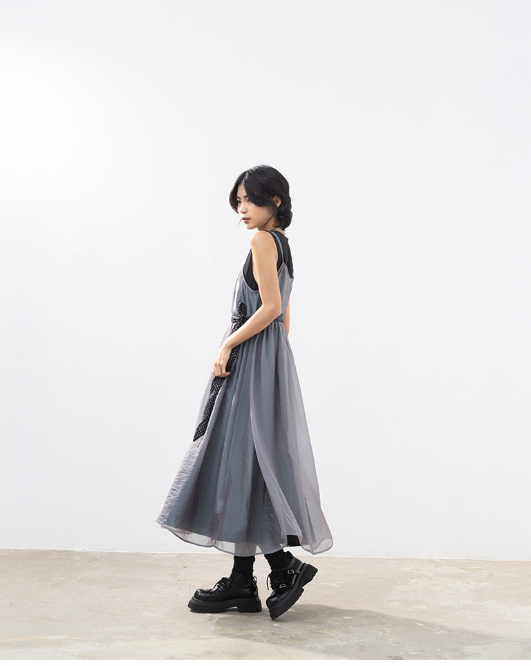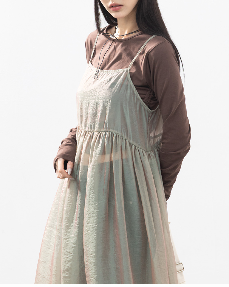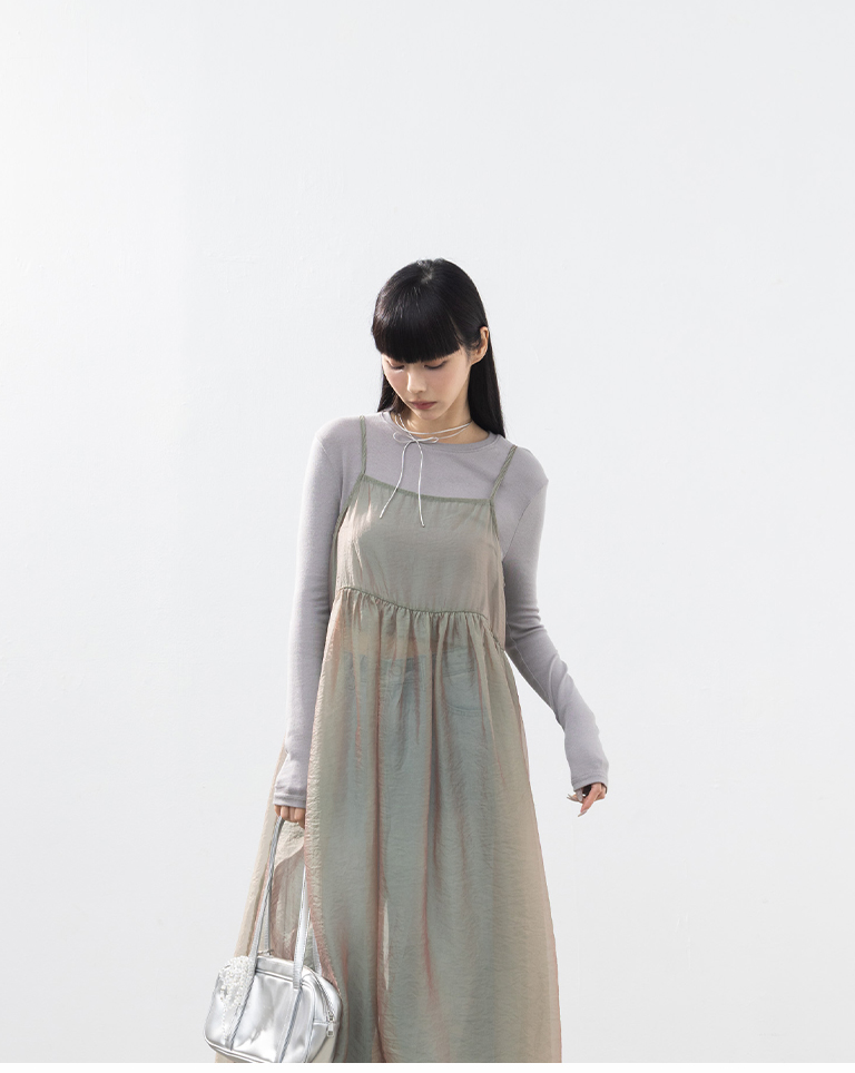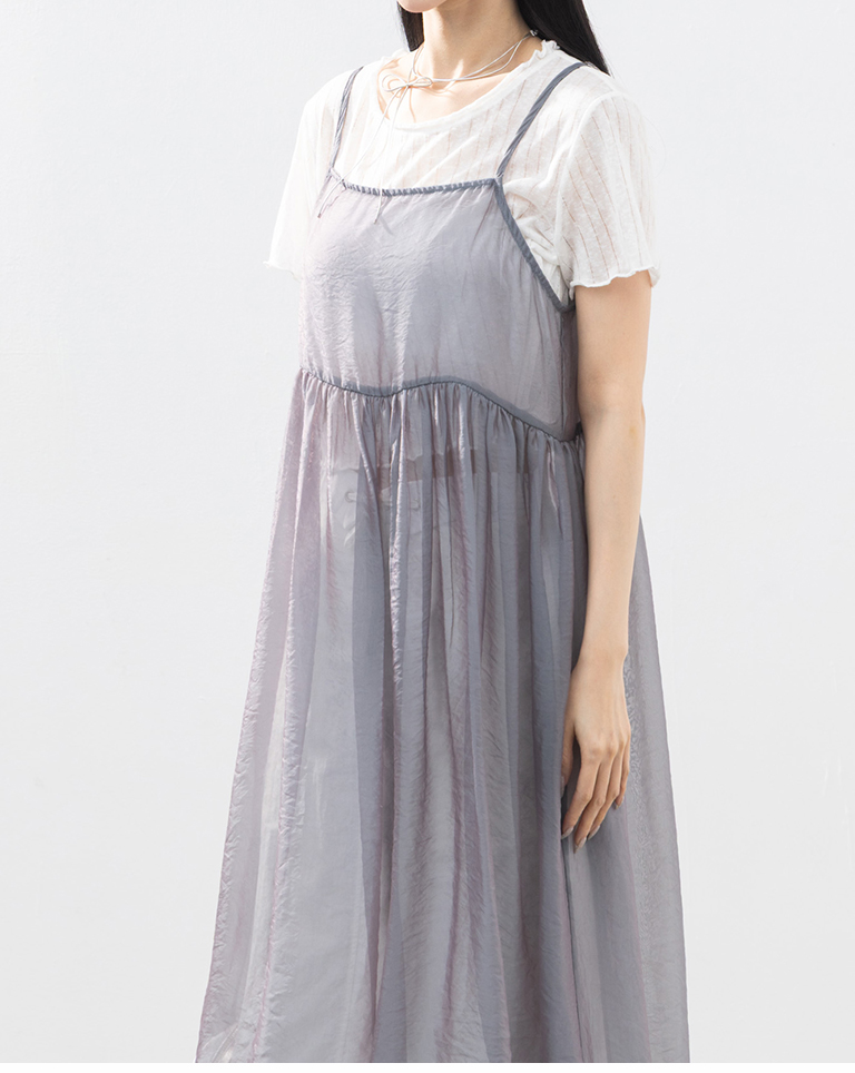 微光澤透膚設計細肩長罩衫洋裝 兩色售
