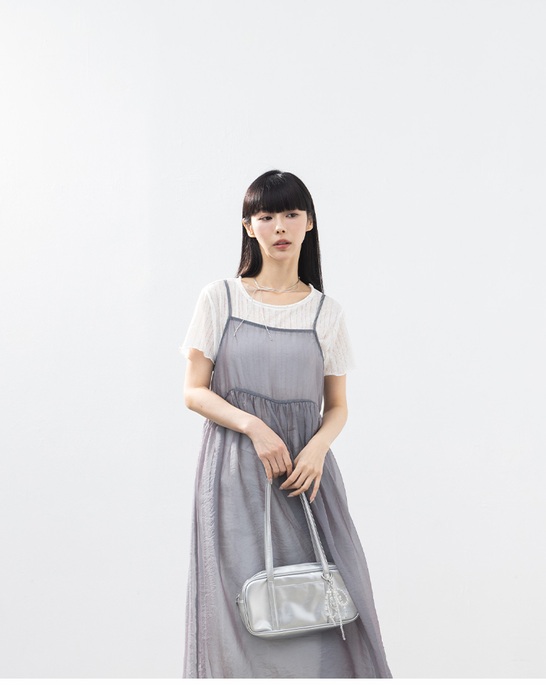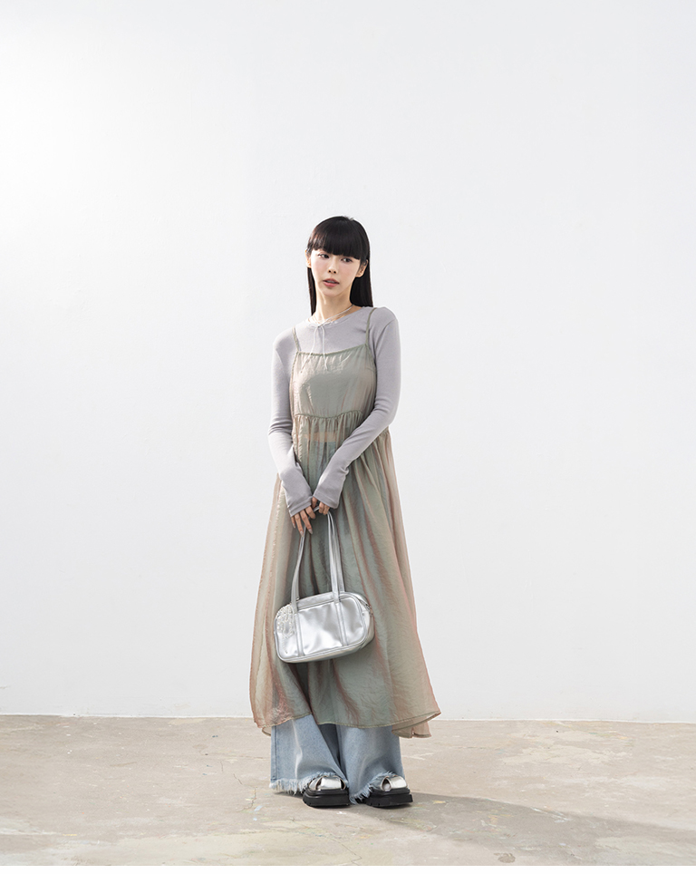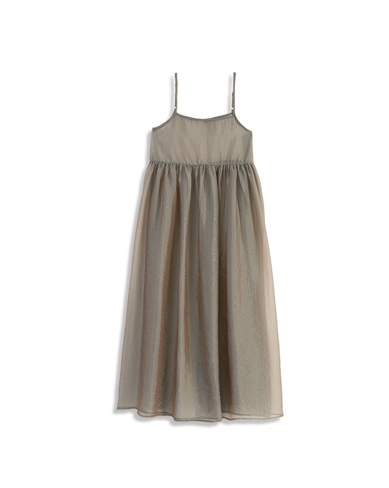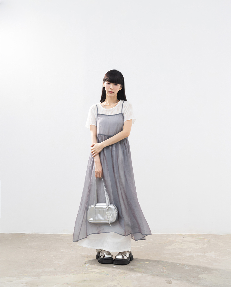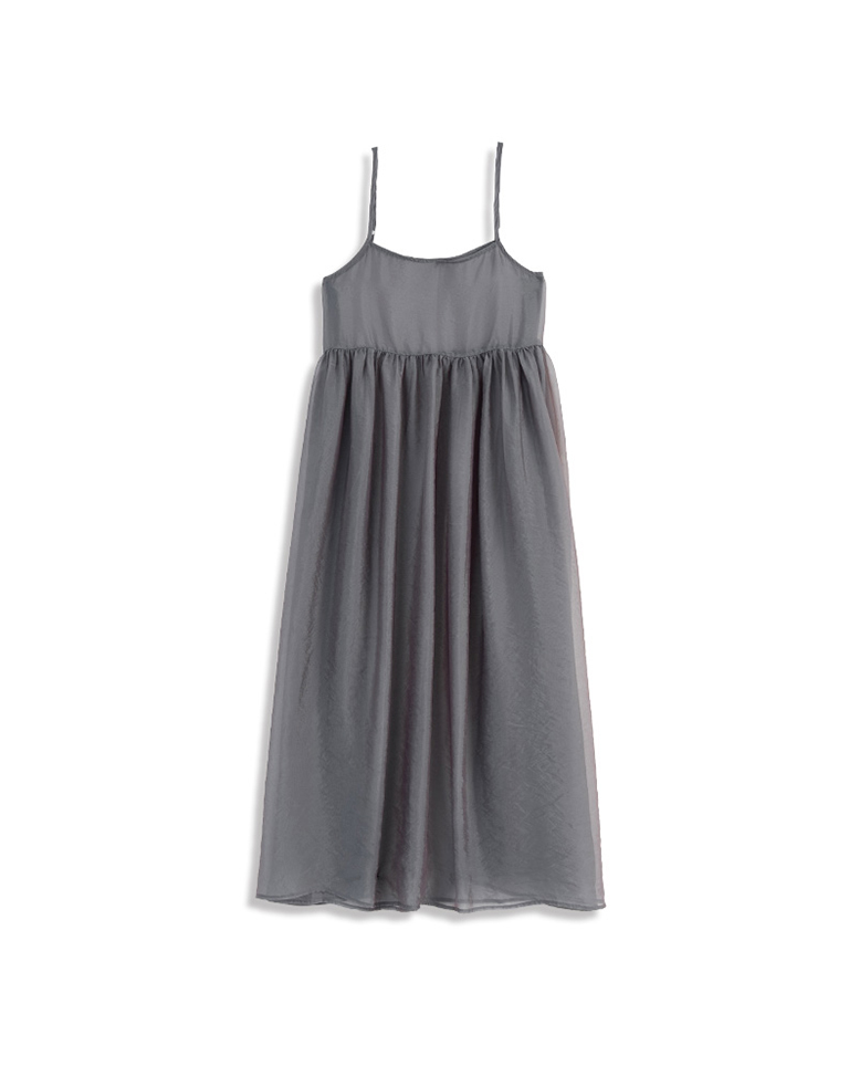 微光澤透膚設計細肩長罩衫洋裝 兩色售