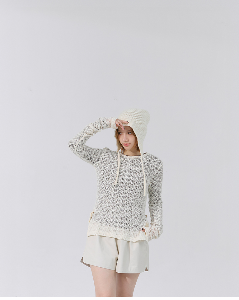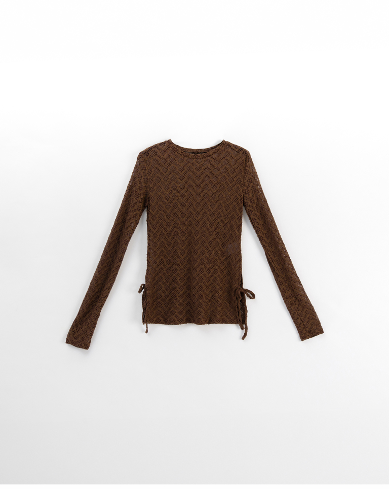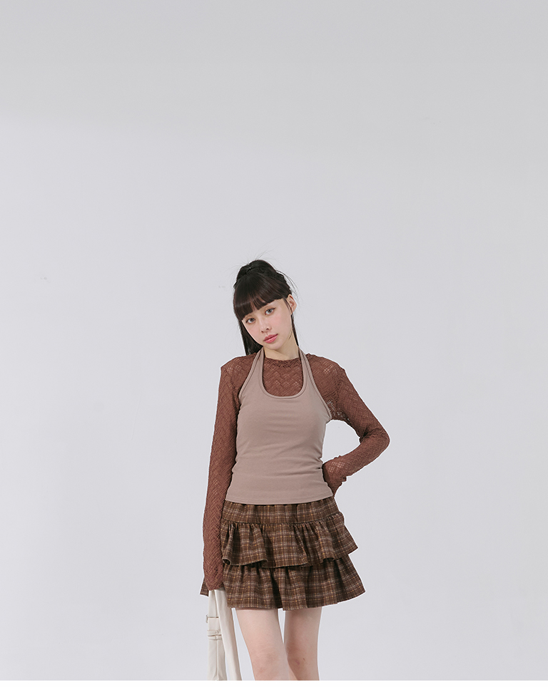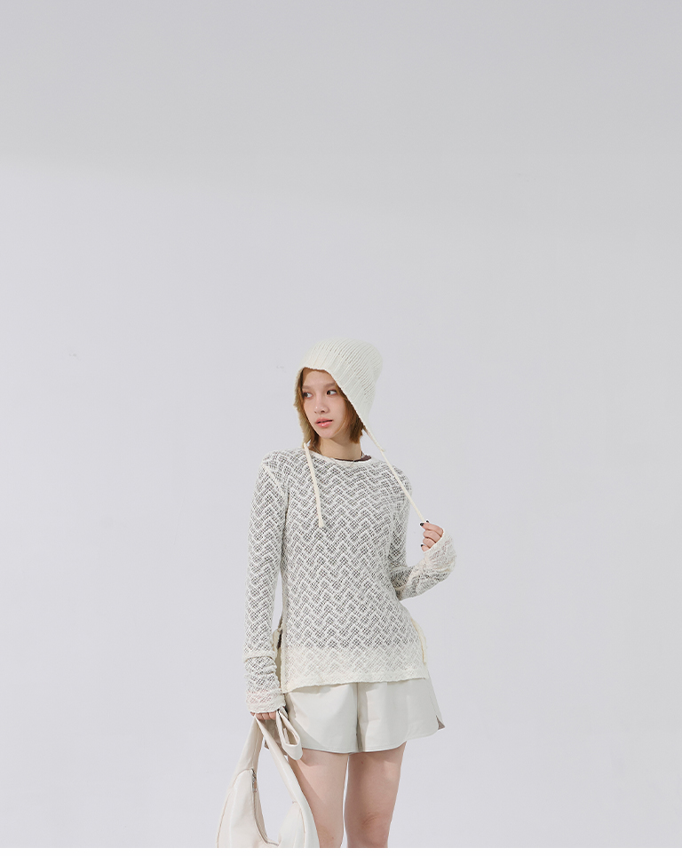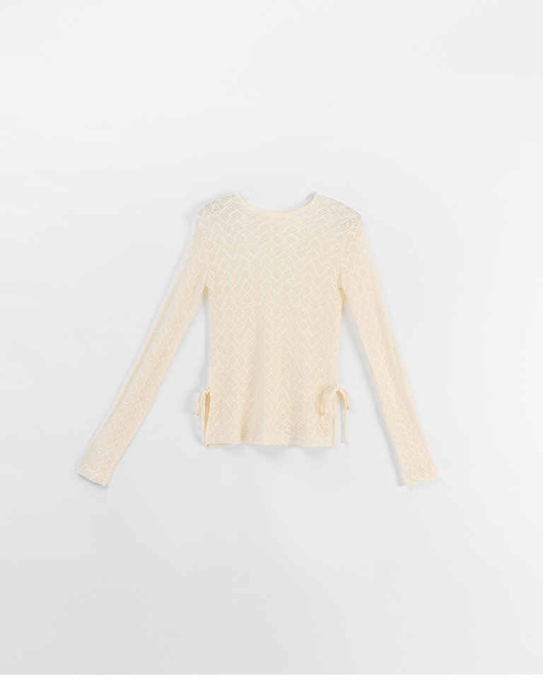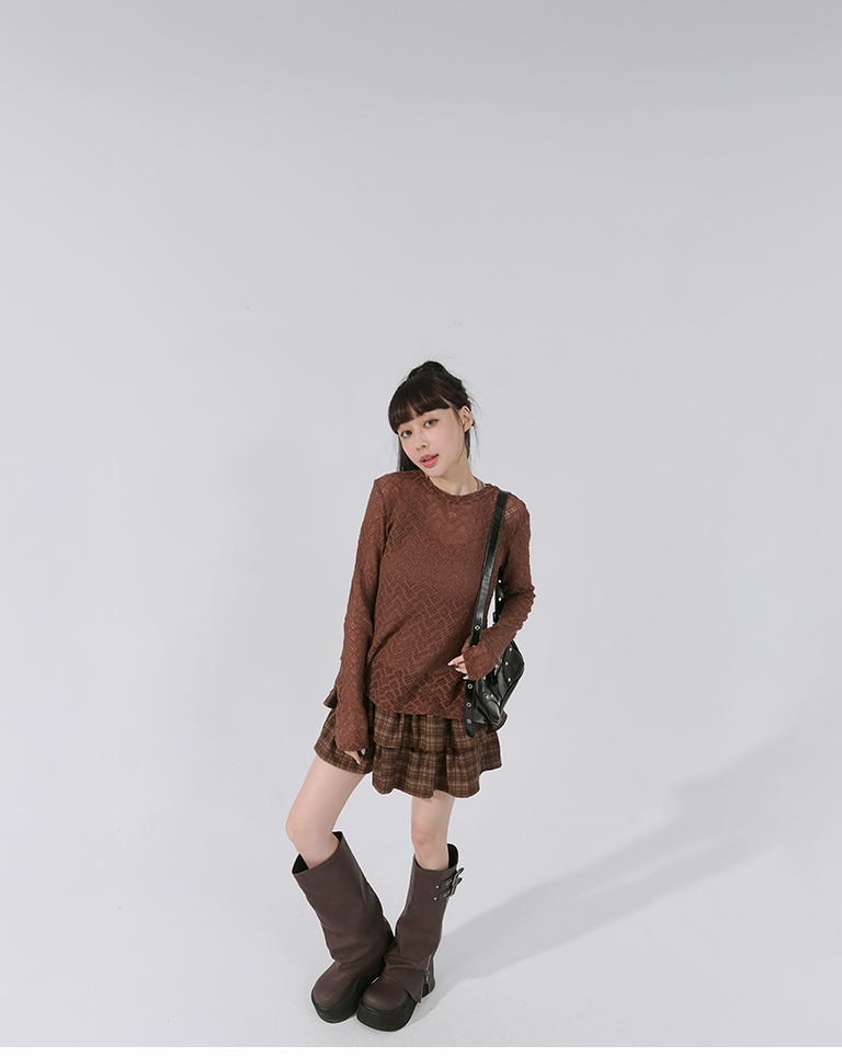 S~L身形實測!分尺寸皺皺木耳邊透膚高領長袖上衣