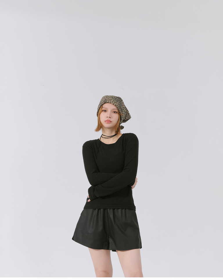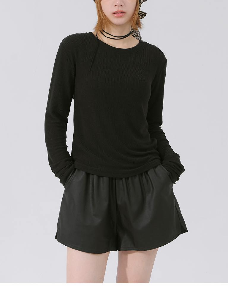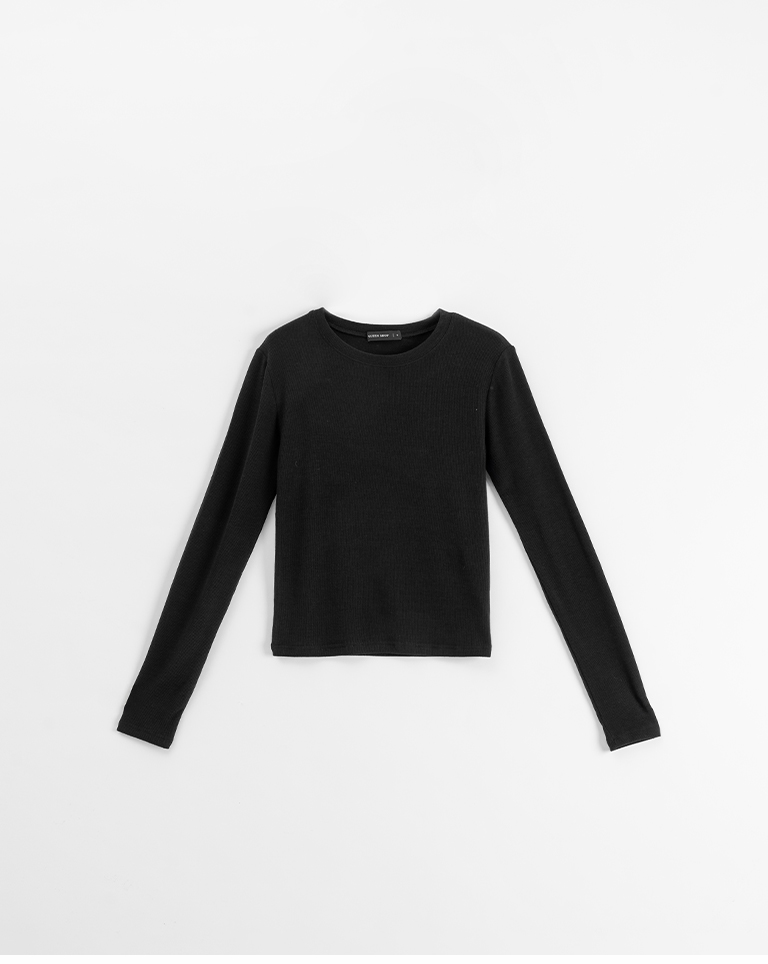 簡約坑條感彈性圓領上衣-黑 S/M/L