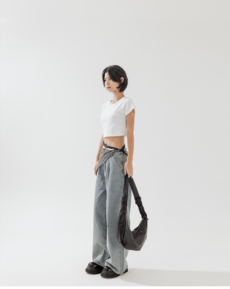 剪裁有型!個性線條錐形牛仔褲