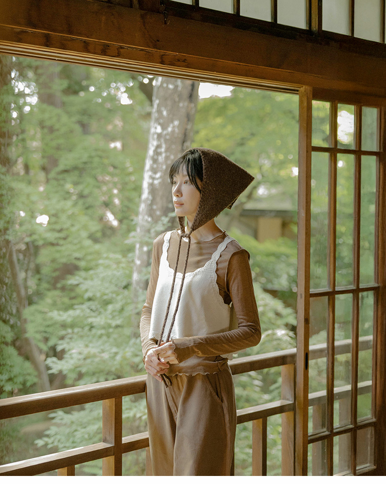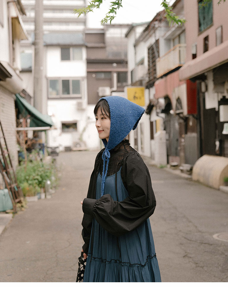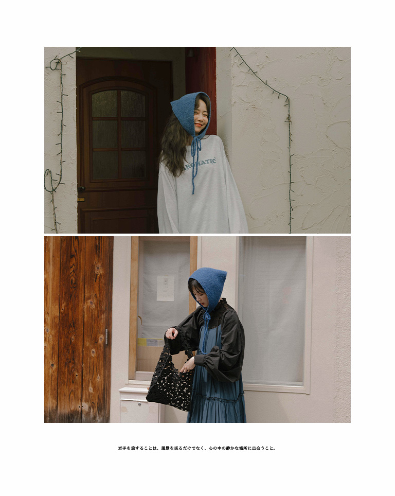 素面針織造型綁帶三角巾