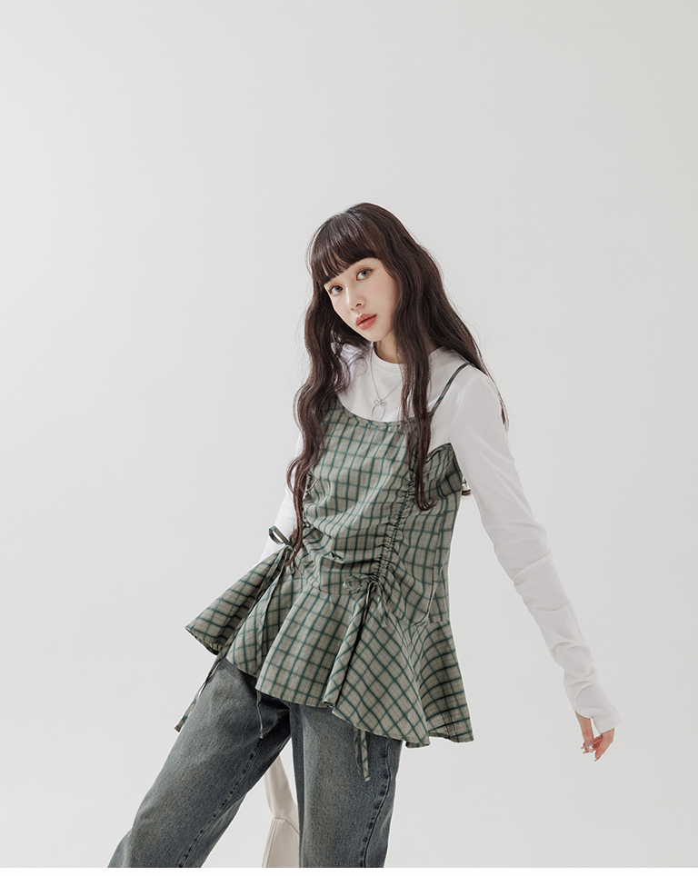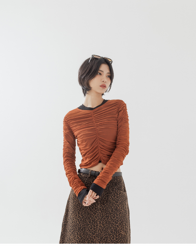 S~L身形實測!分尺寸皺皺木耳邊透膚高領長袖上衣