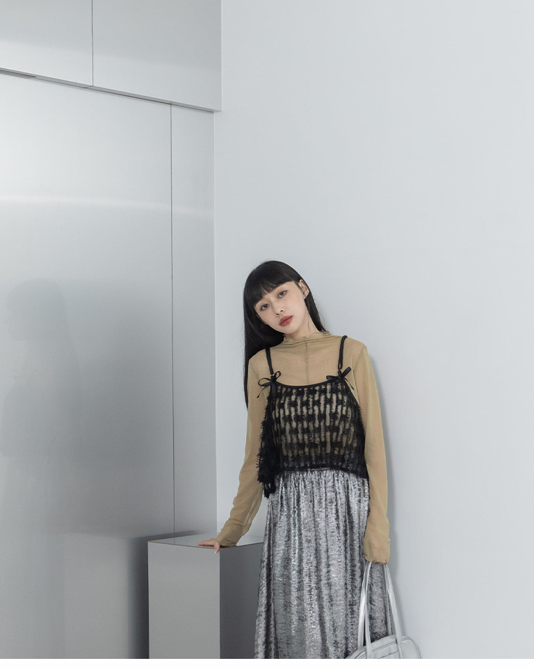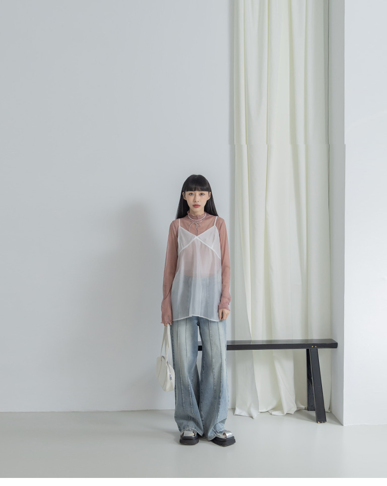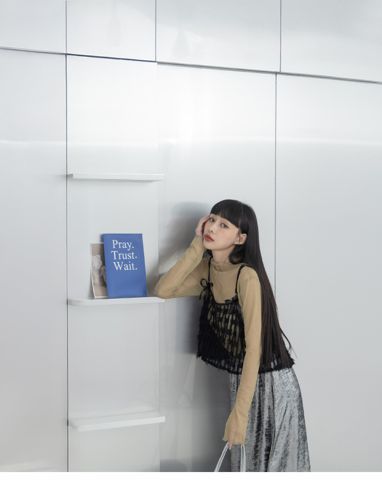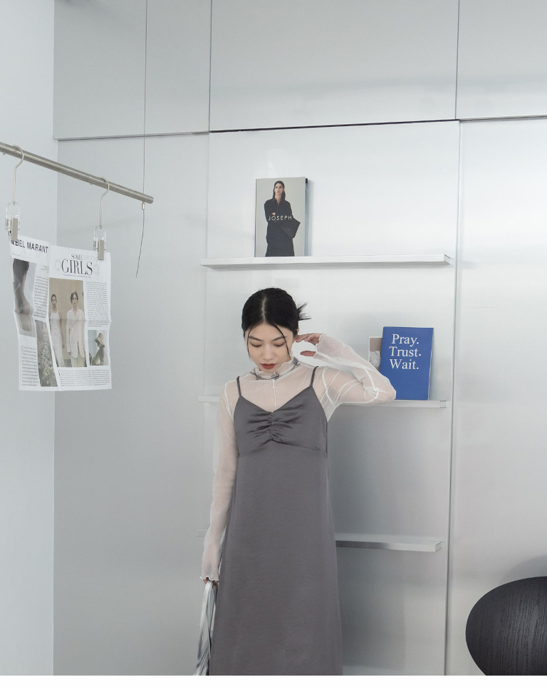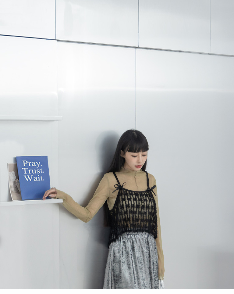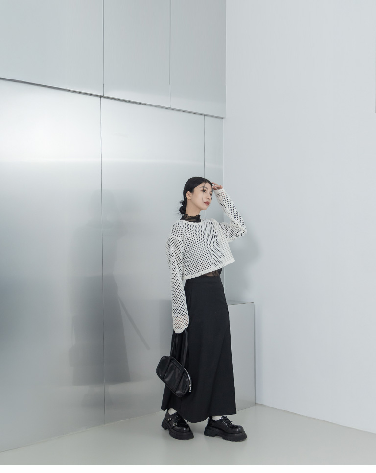 S~L身形實測!分尺寸皺皺木耳邊透膚高領長袖上衣