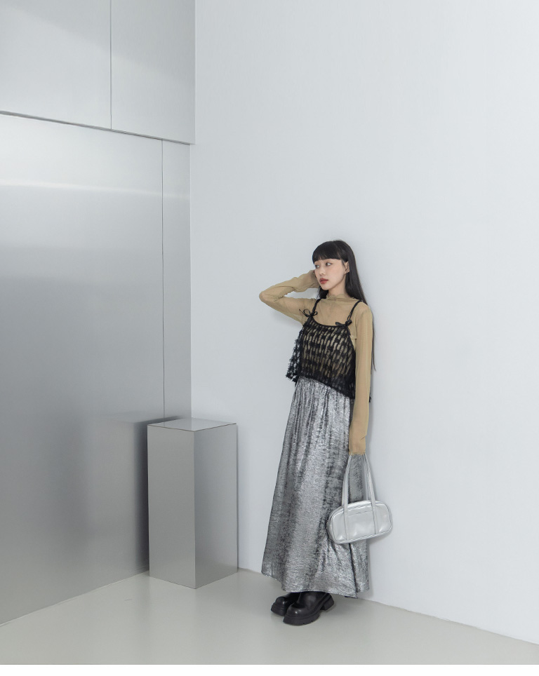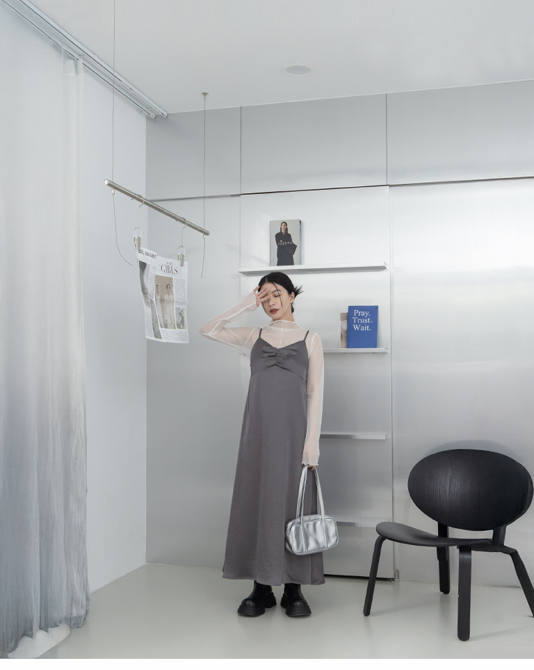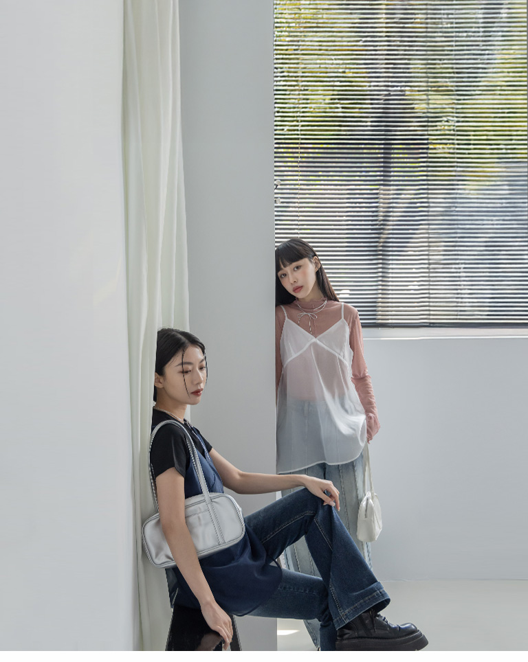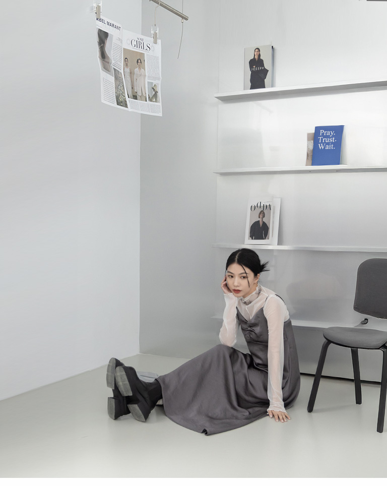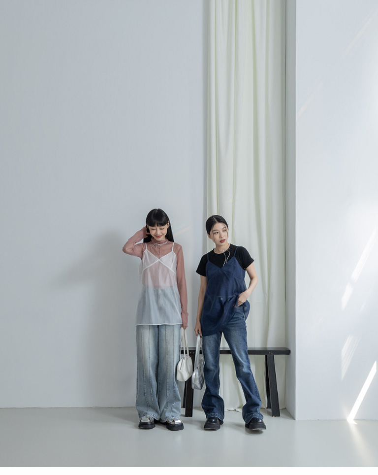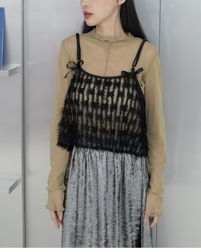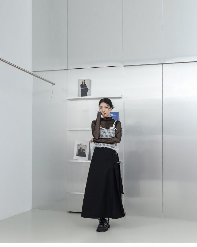 S~L身形實測!分尺寸皺皺木耳邊透膚高領長袖上衣