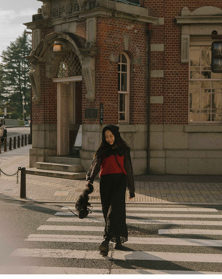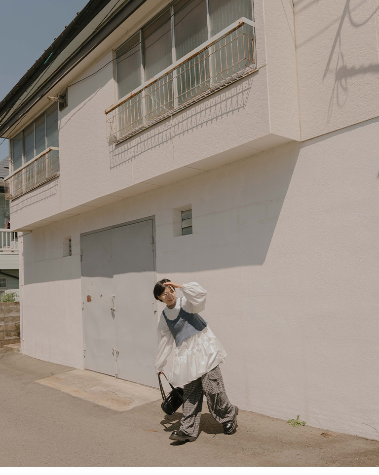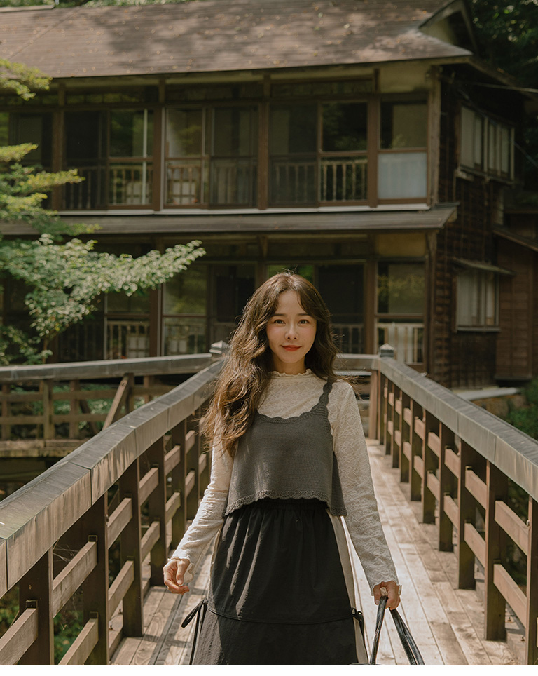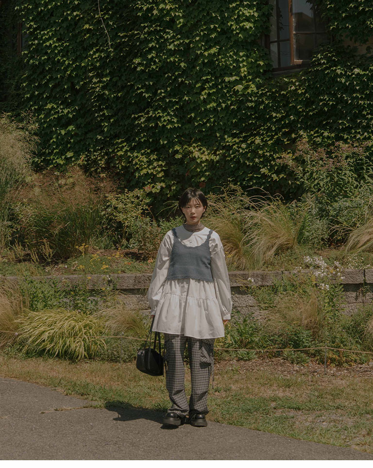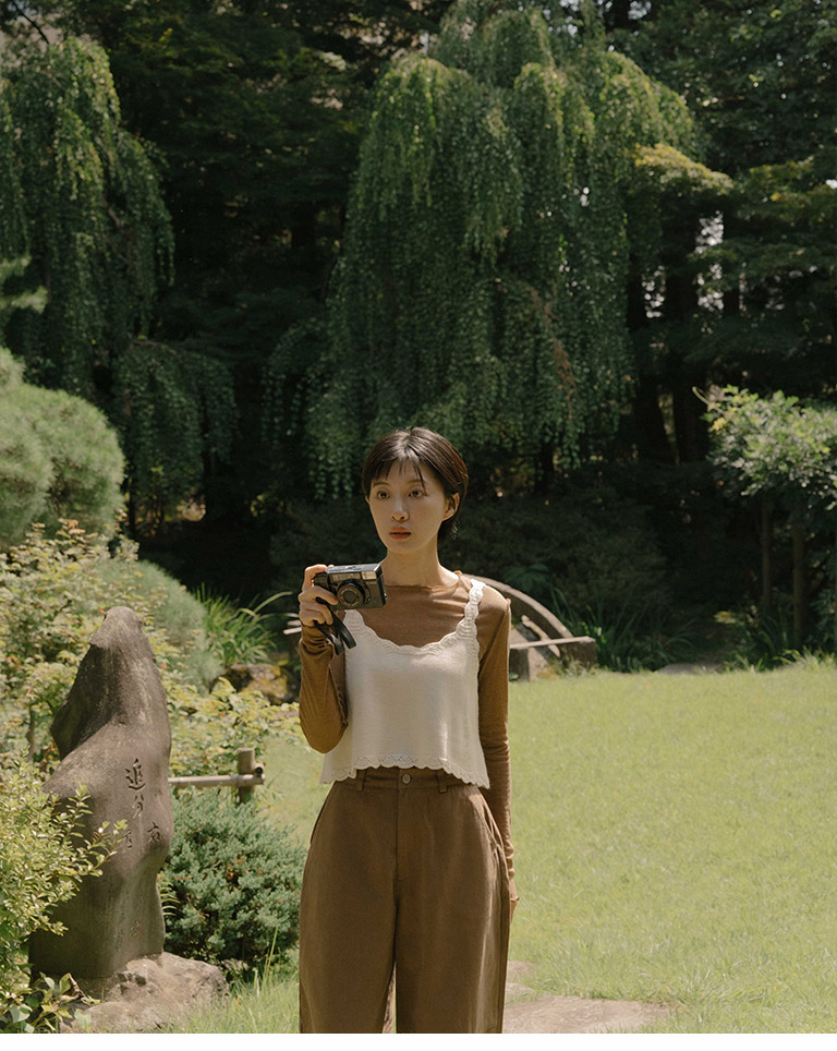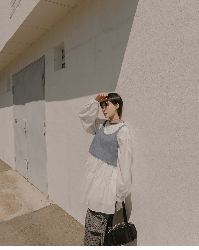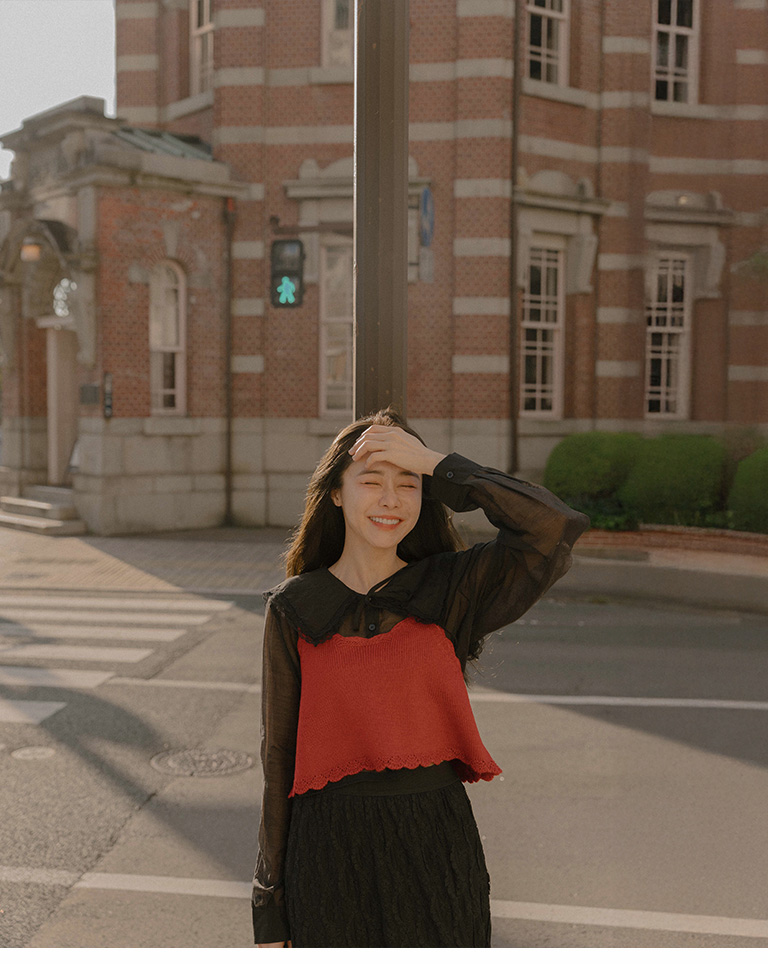 S~L身形實測!分尺寸皺皺木耳邊透膚高領長袖上衣