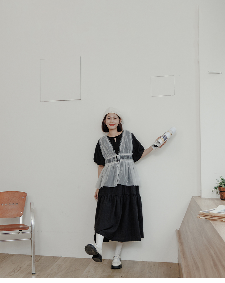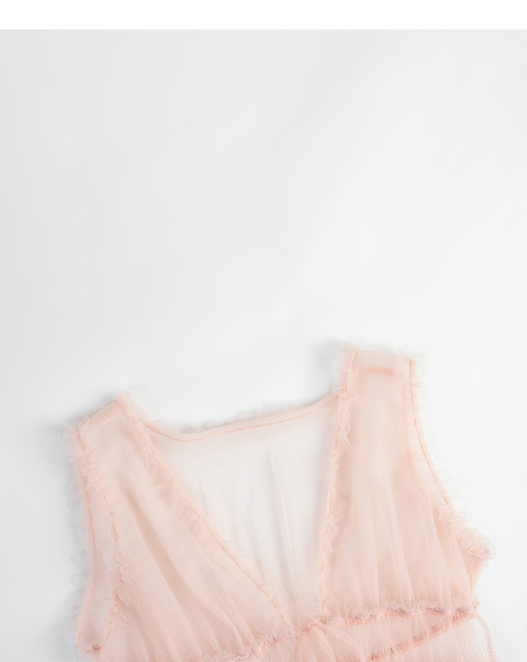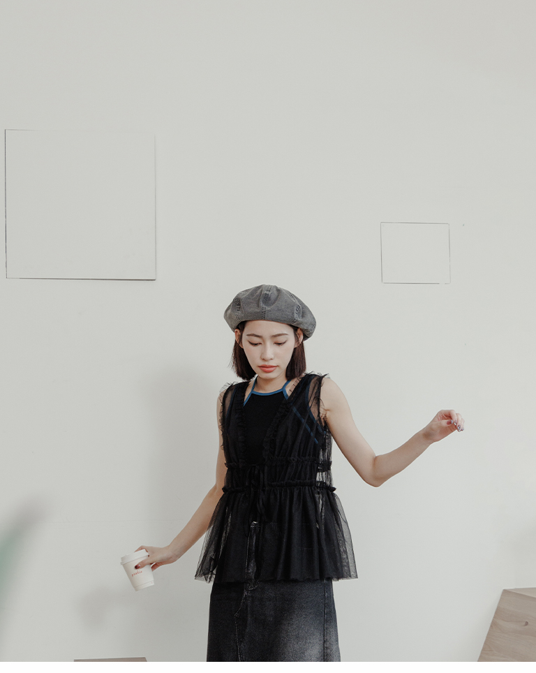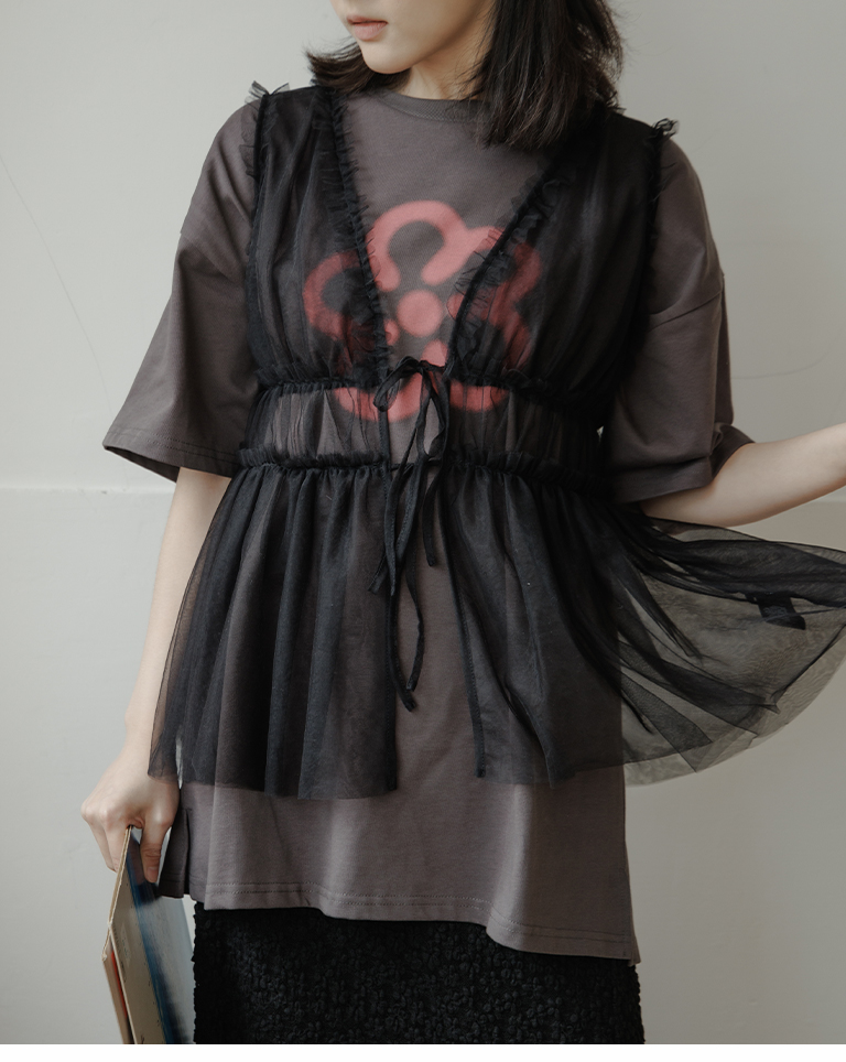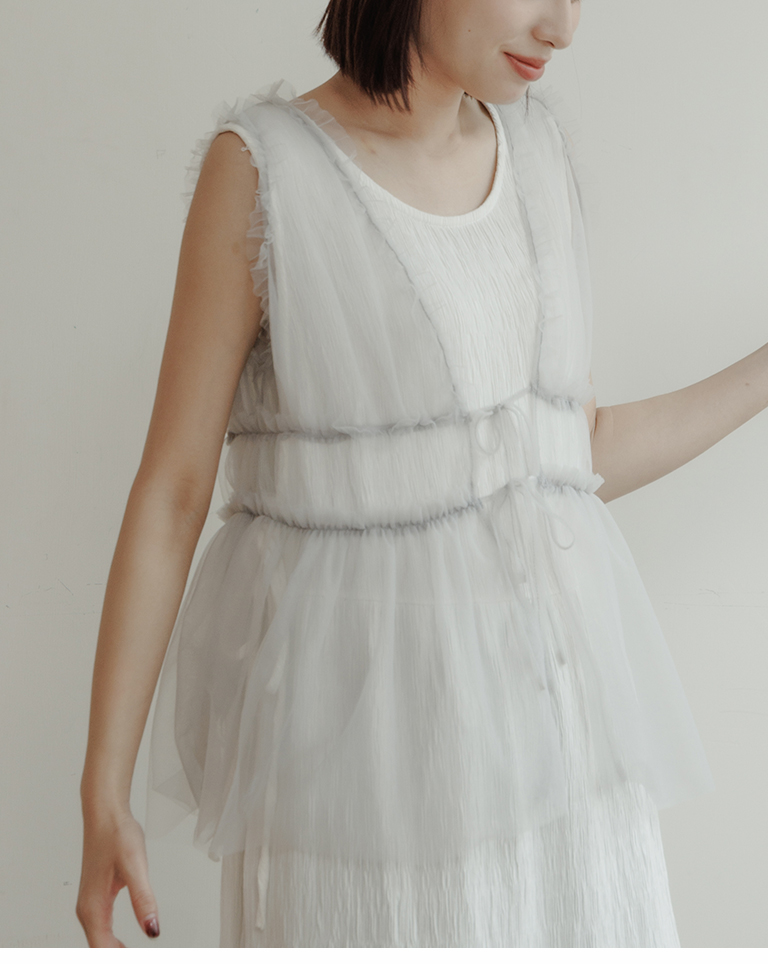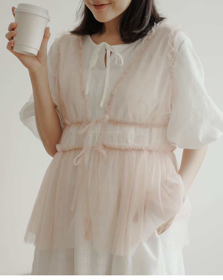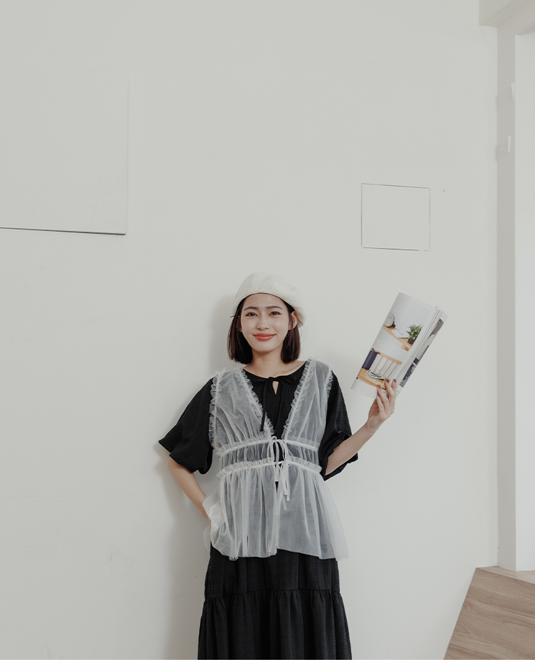 雙綁帶網紗傘襬透膚背心罩衫