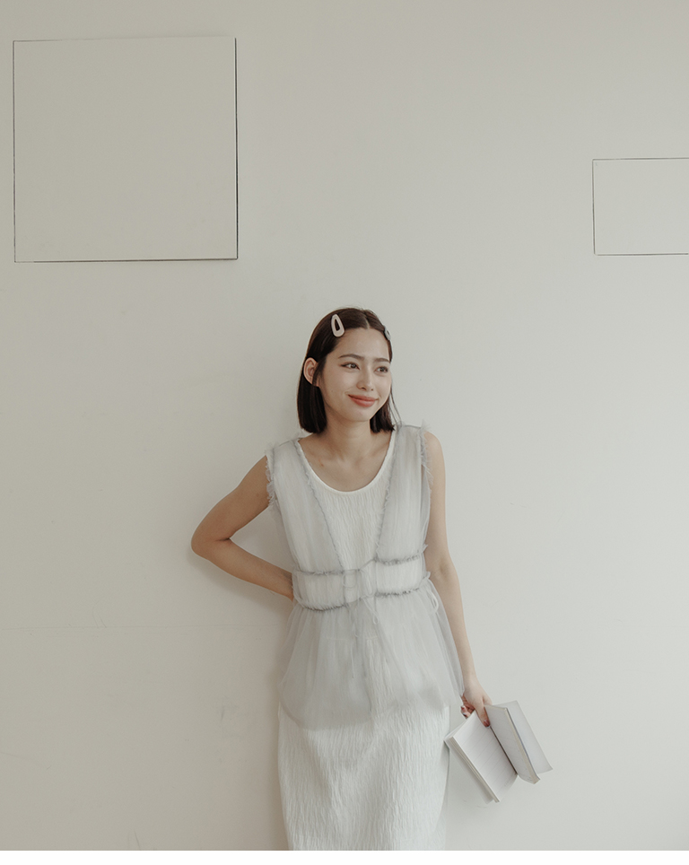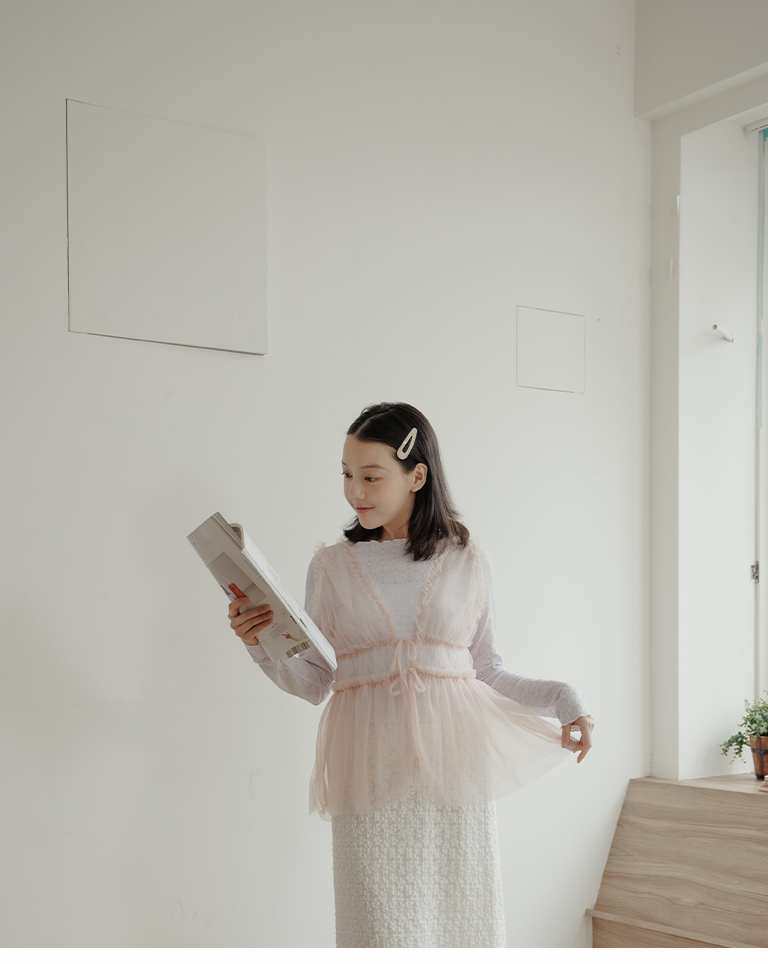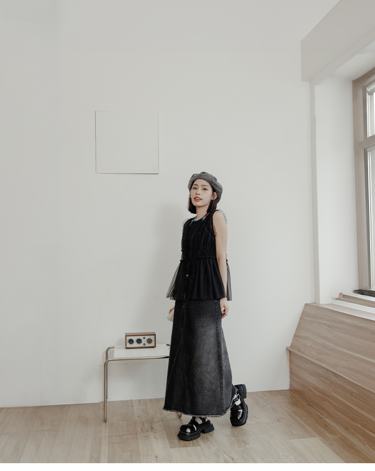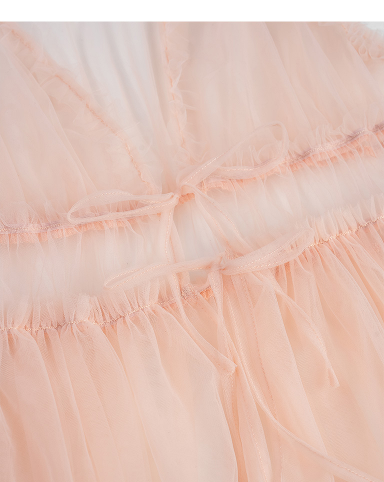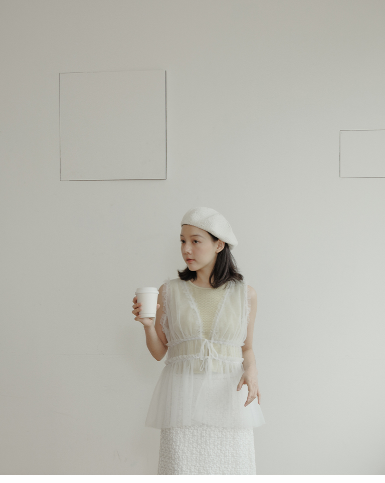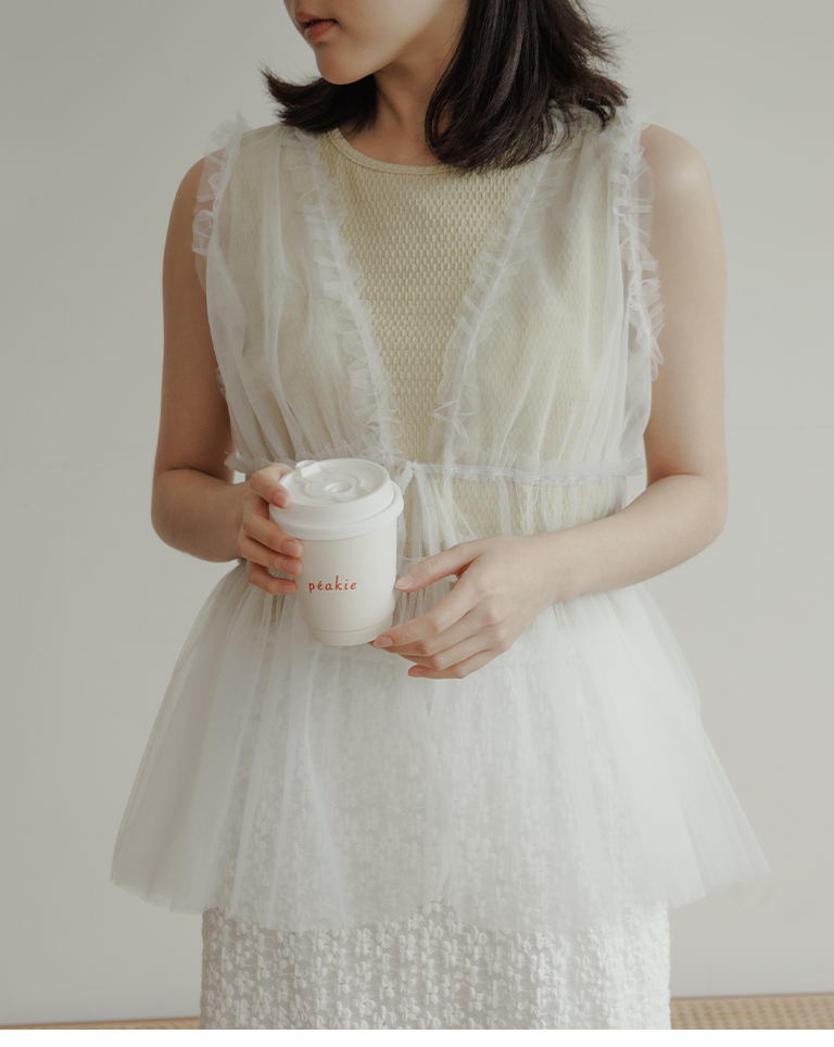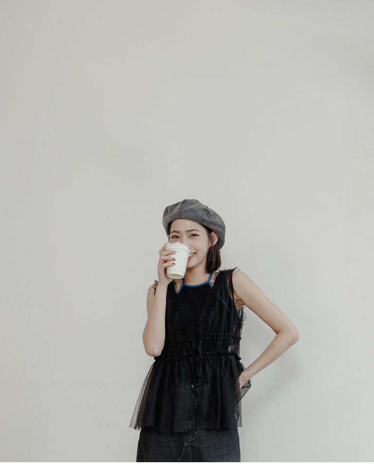 雙綁帶網紗傘襬透膚背心罩衫