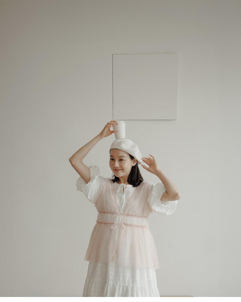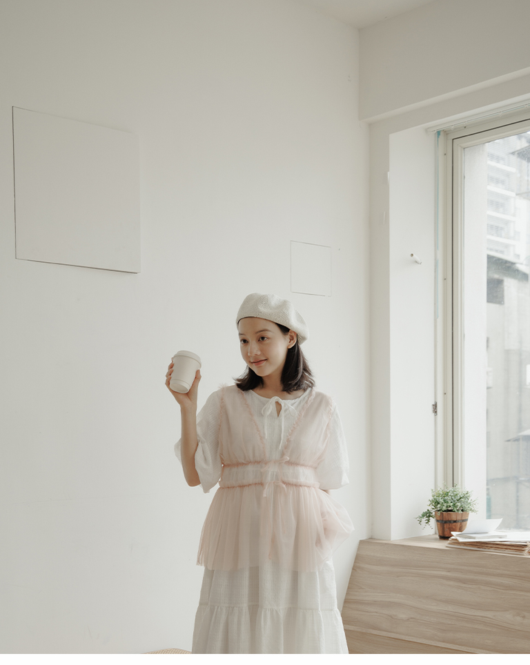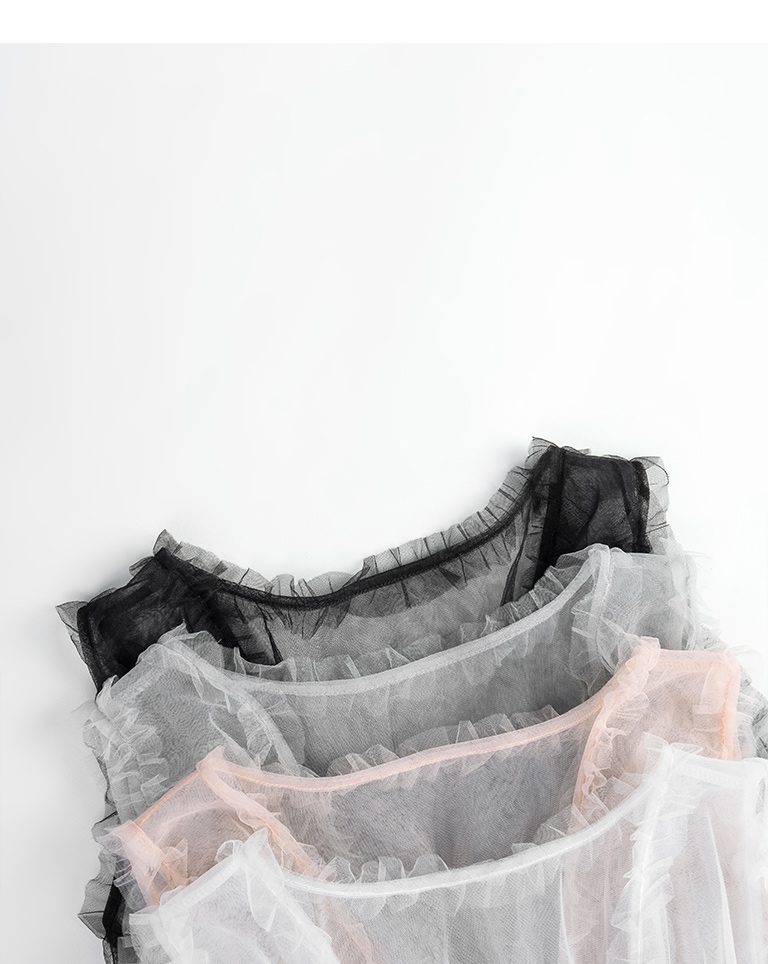 雙綁帶網紗傘襬透膚背心罩衫 四色售