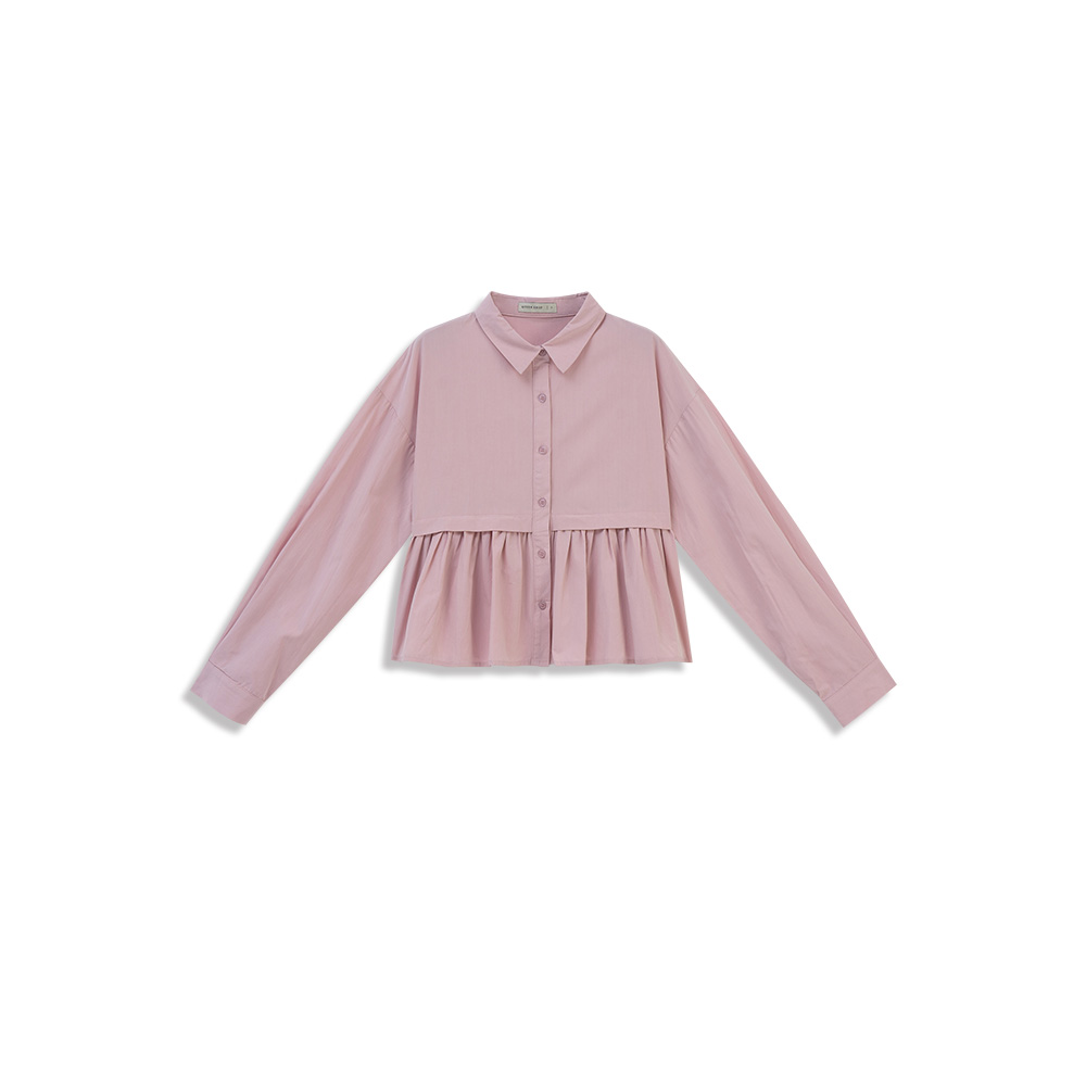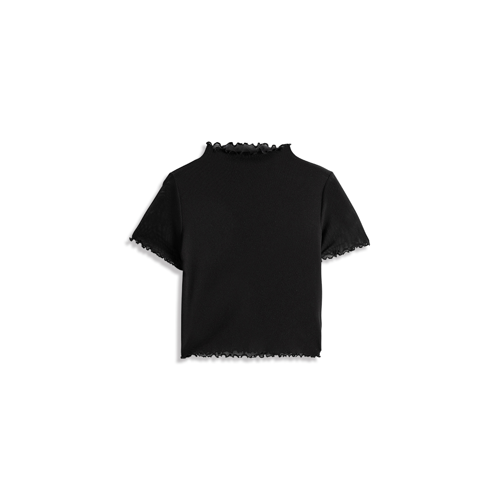 S~L身形實測!分尺寸皺皺木耳邊透膚高領長袖上衣