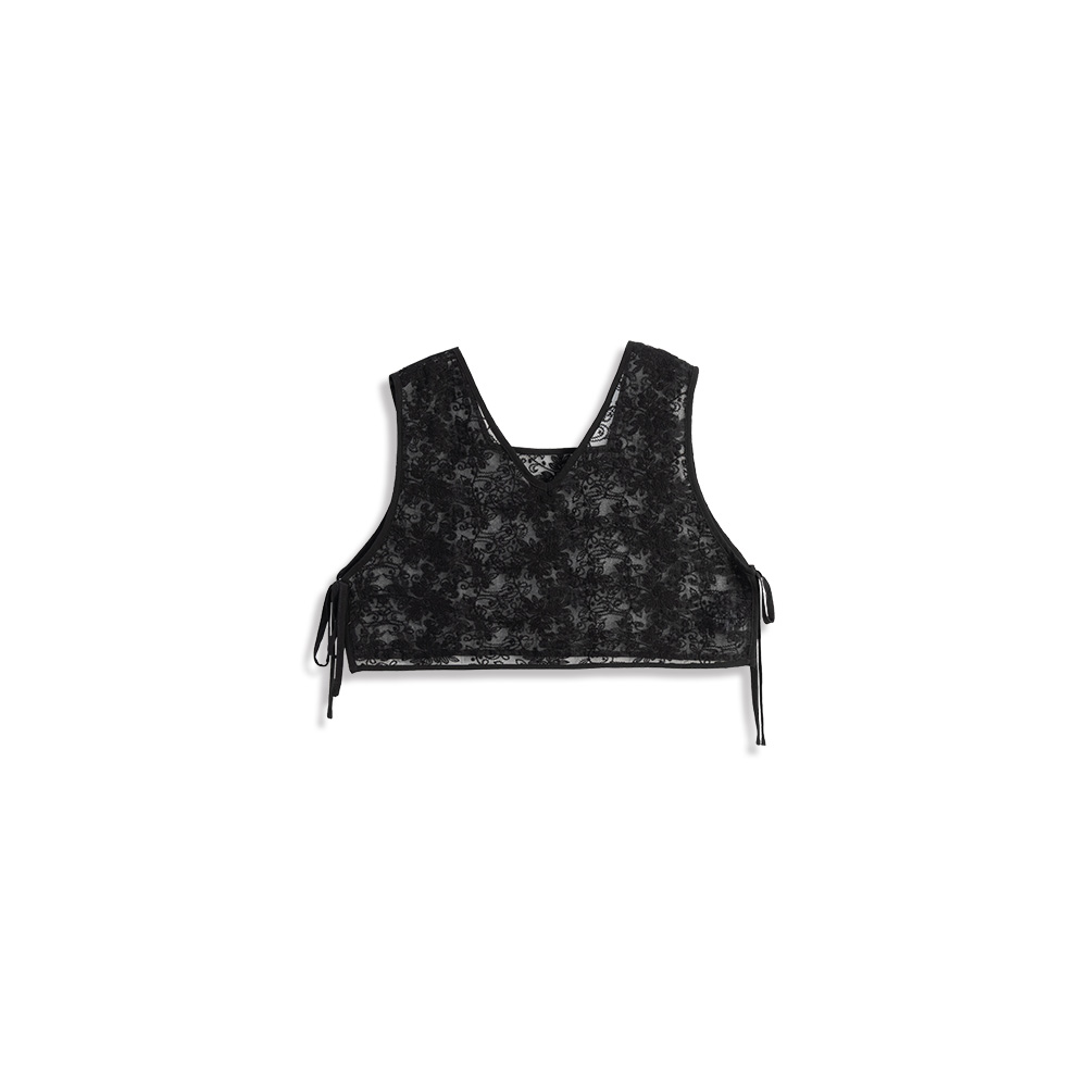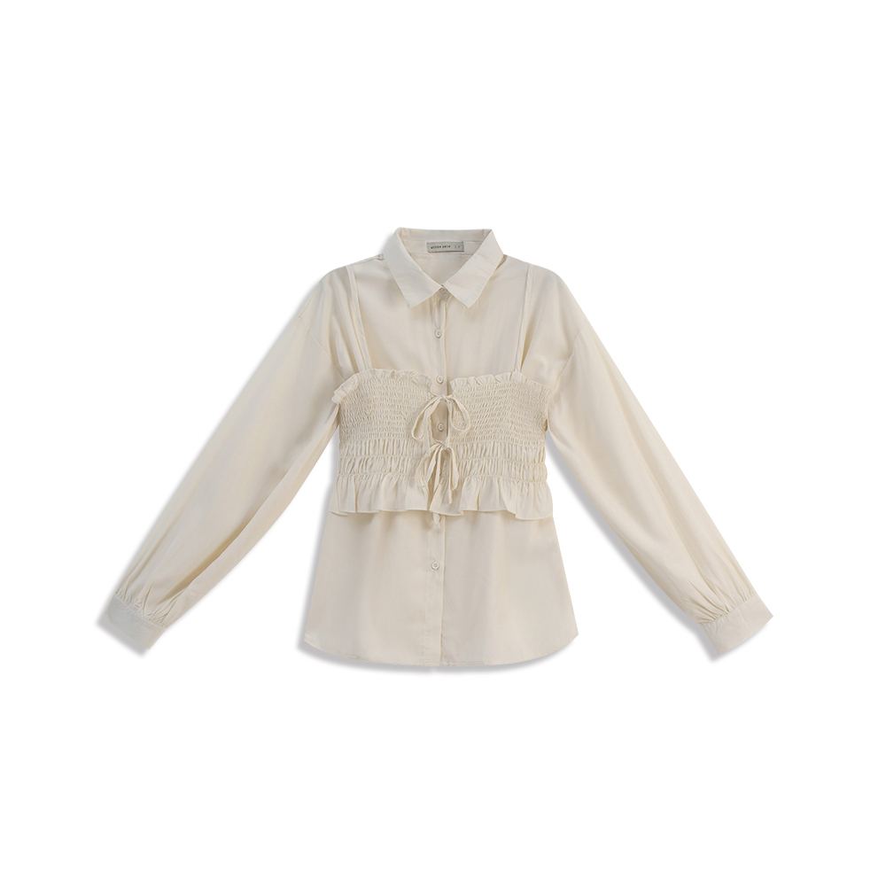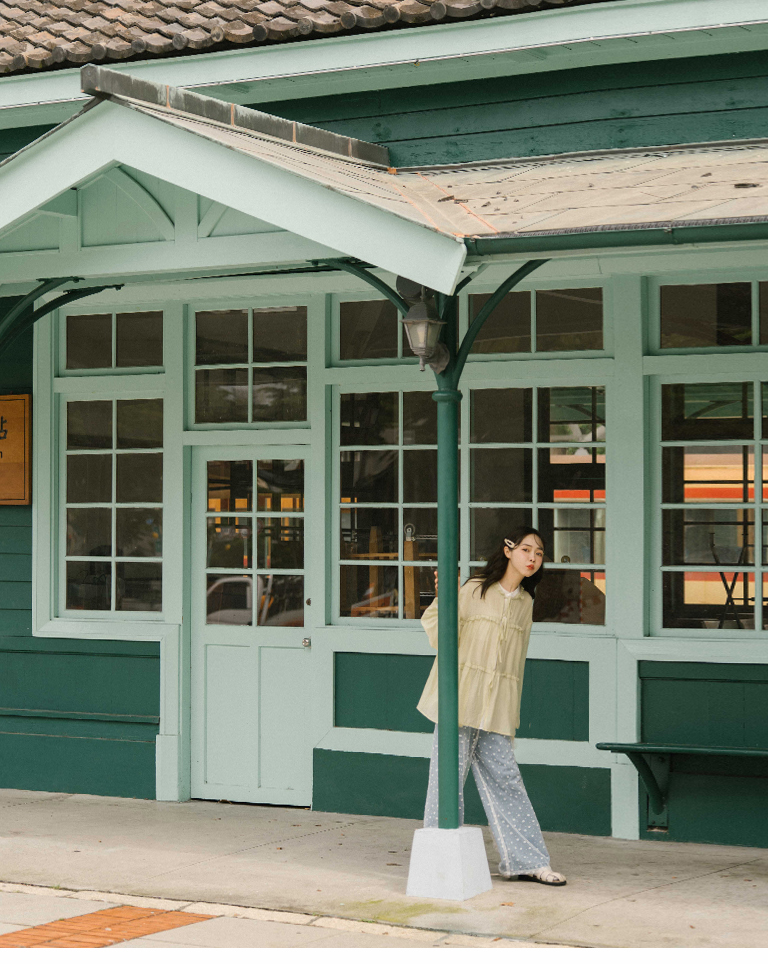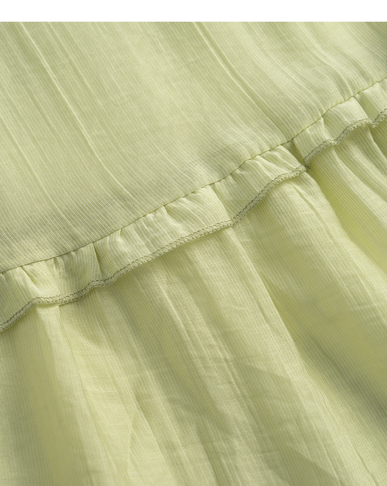 荷葉領澎袖綁帶透紗罩衫 兩色售