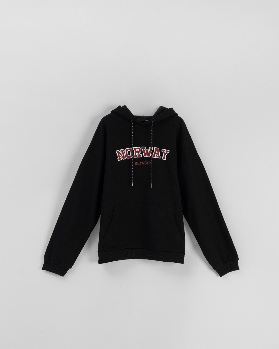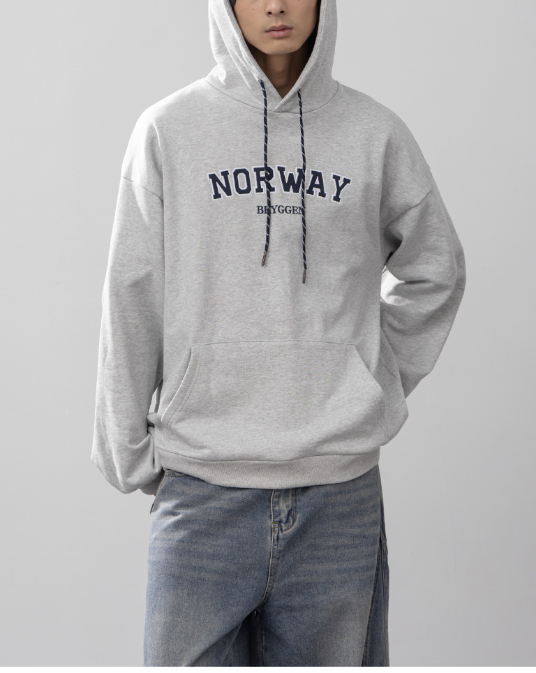 男裝 NORWAY刺繡休閒連帽衛衣-花灰 M/L/XL