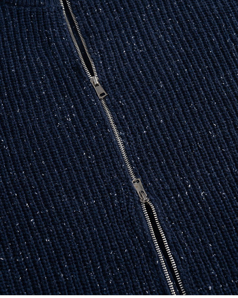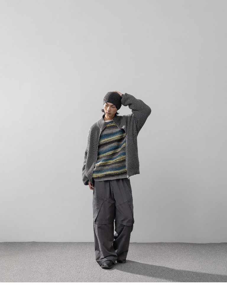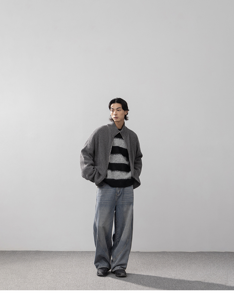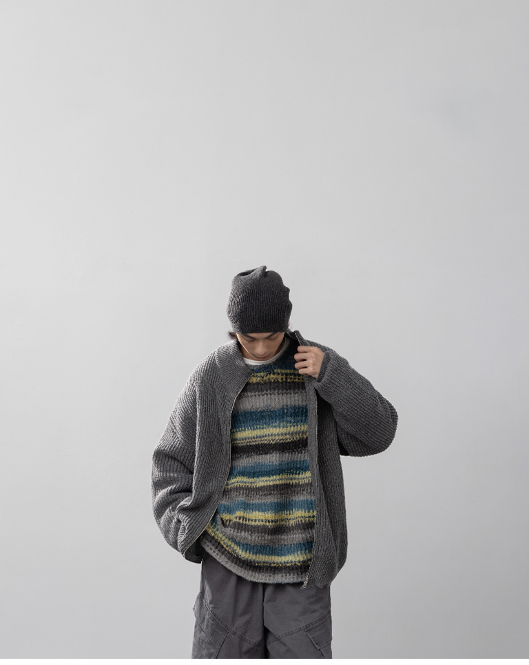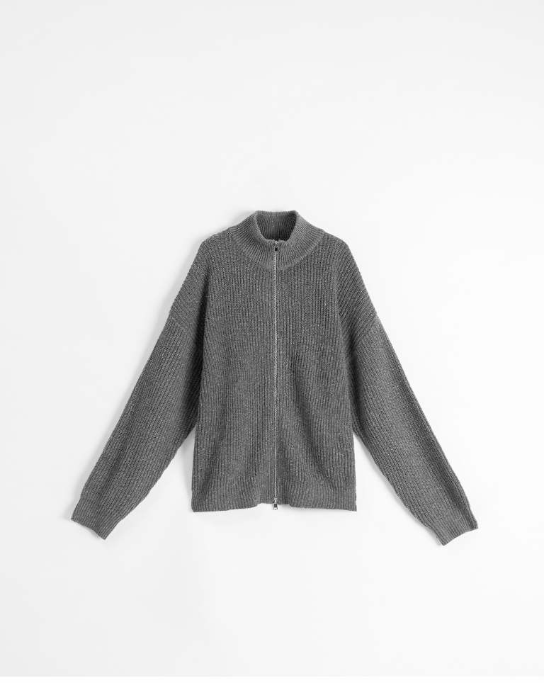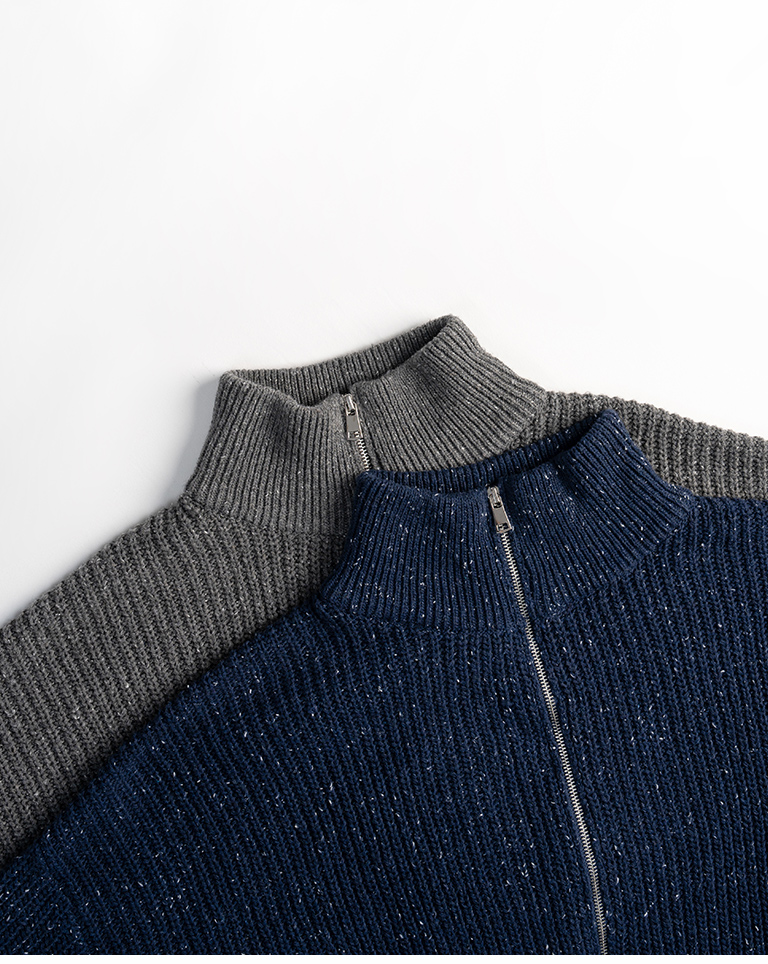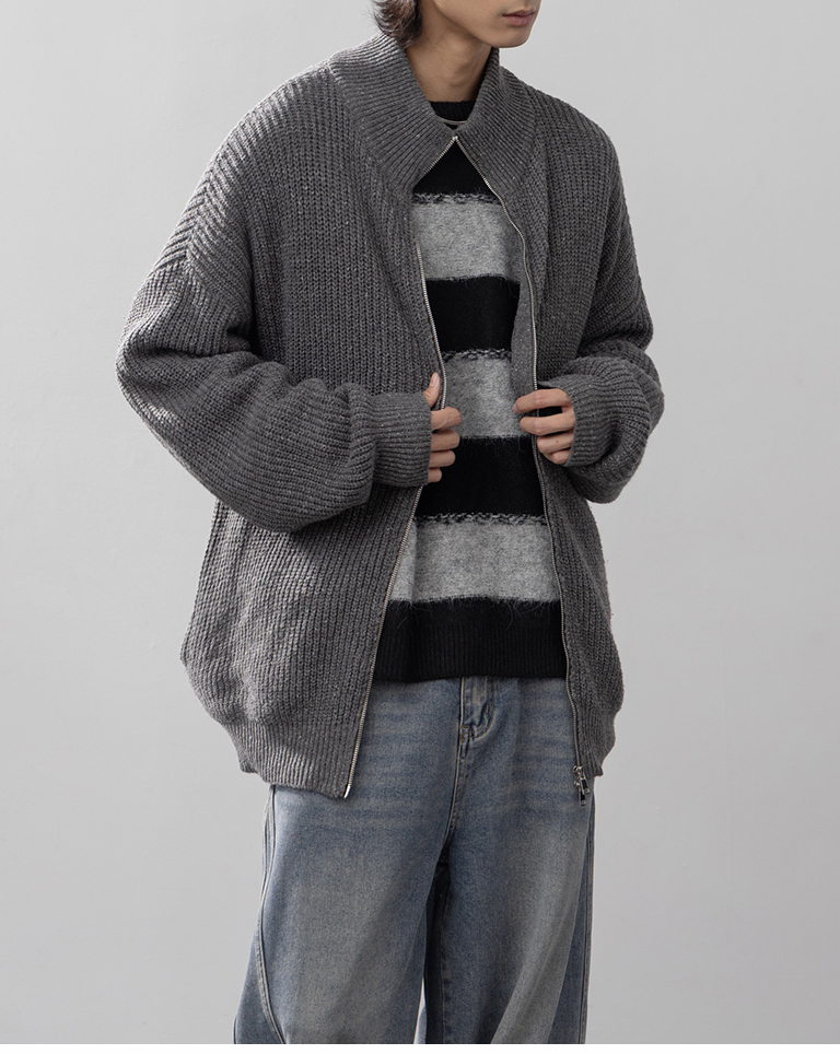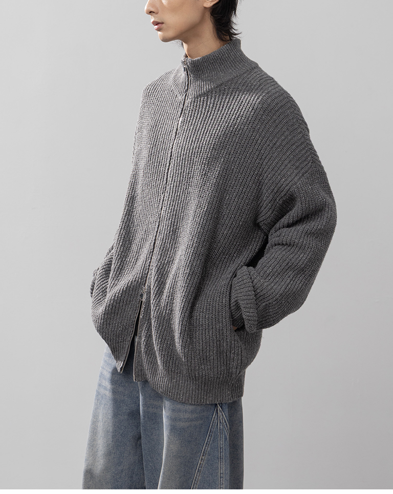 男裝 雙向拉鍊織紋設計休閒針織外-灰 M/L