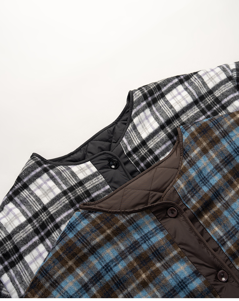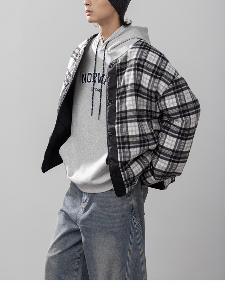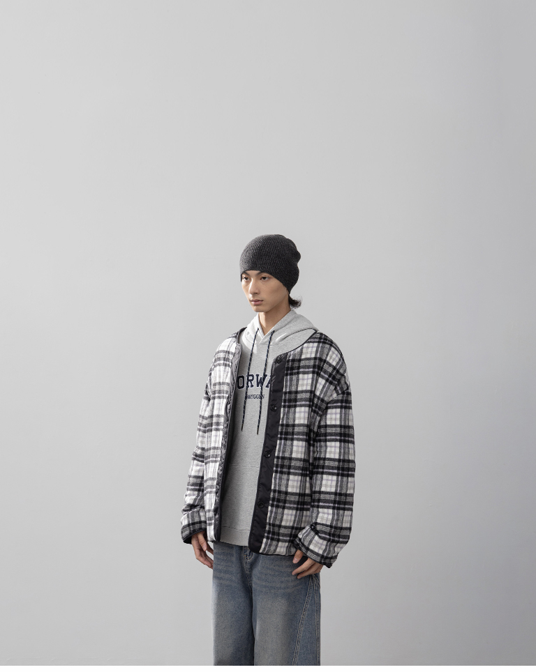 男裝 格紋衍縫兩穿厚鋪棉外套